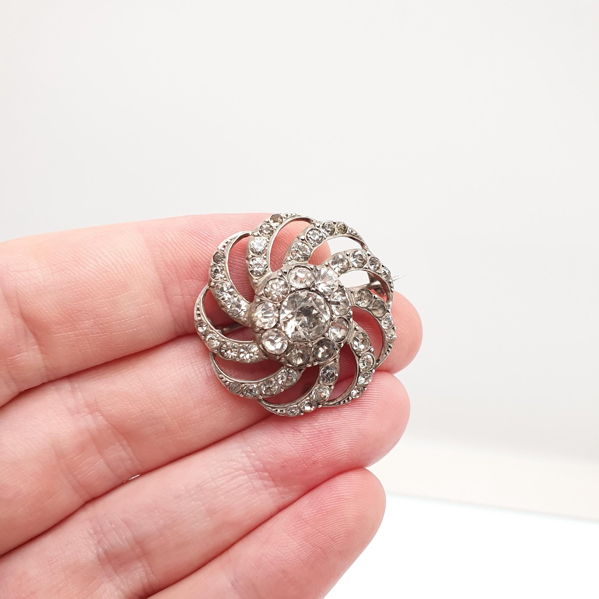 Antique Diamond Paste Solid Silver Brooch Victorian Spiral Swirl PARISIAN DIAMOND COMPANY Vintage Jewelry Jewellery