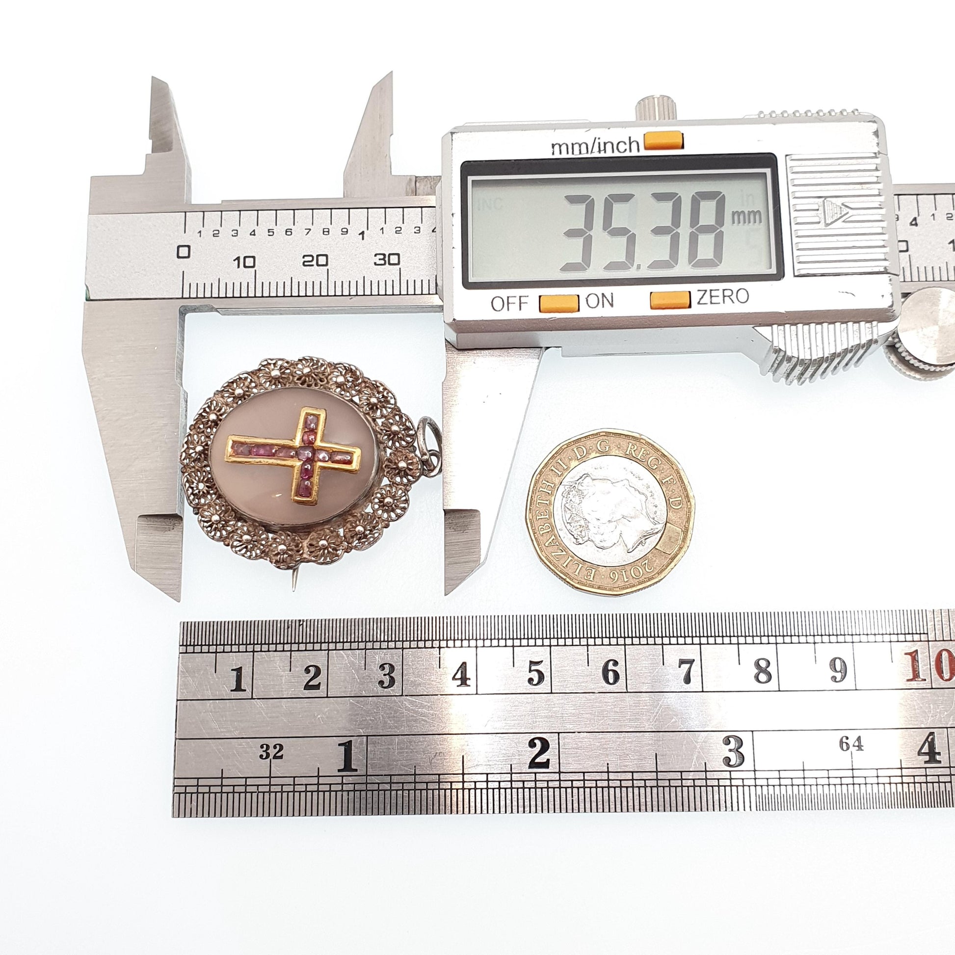 Antique Georgian 18ct Gold Ruby Crucifix Pendant Brooch Necklace Solid Silver Filigree White Chalcedony Gemstone Womens Jewelry Jewellery