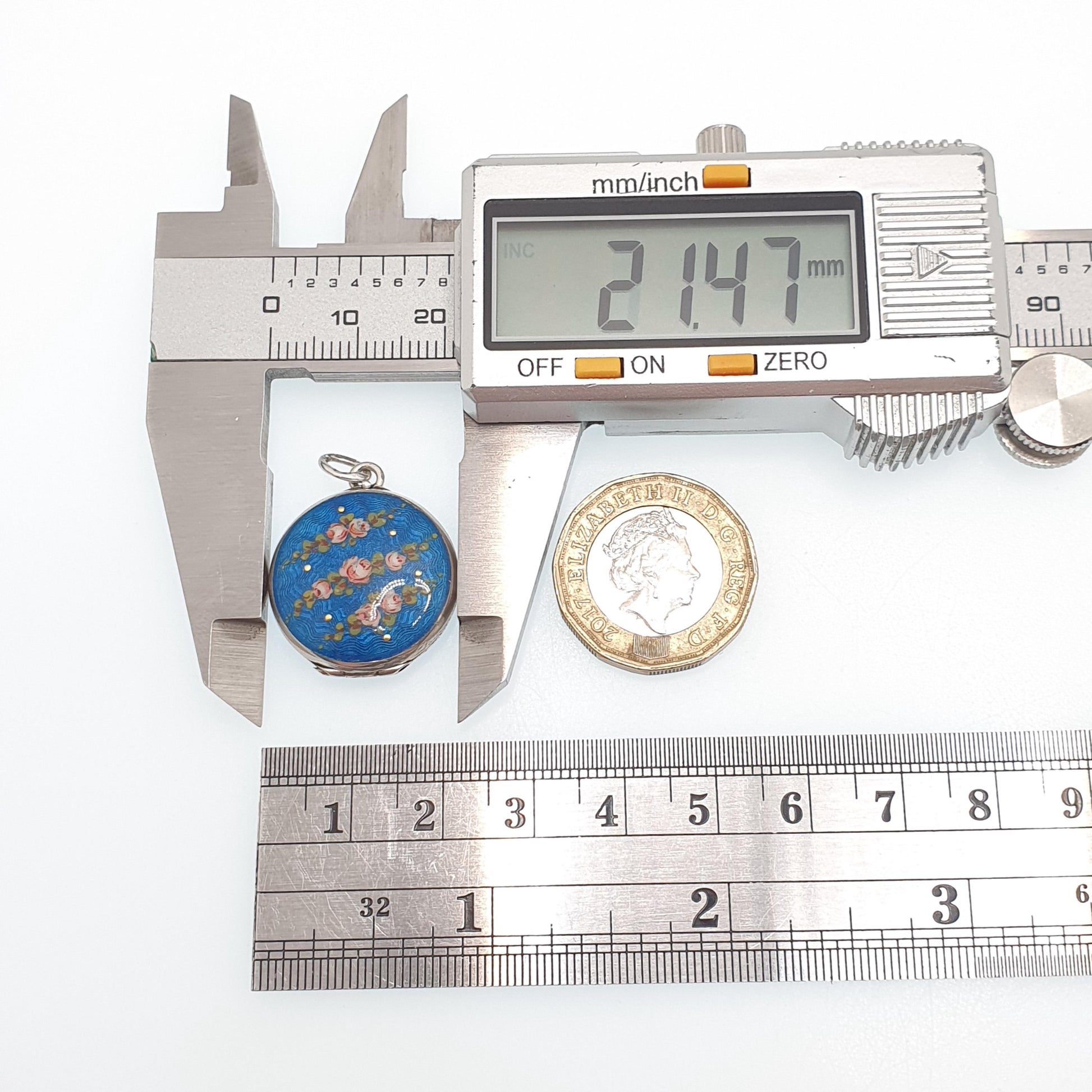 Antique Guilloche Enamel Solid Silver Locket Edwardian Rose Flower Blue Pendant Round Photo Picture Vintage Jewelry Jewelry