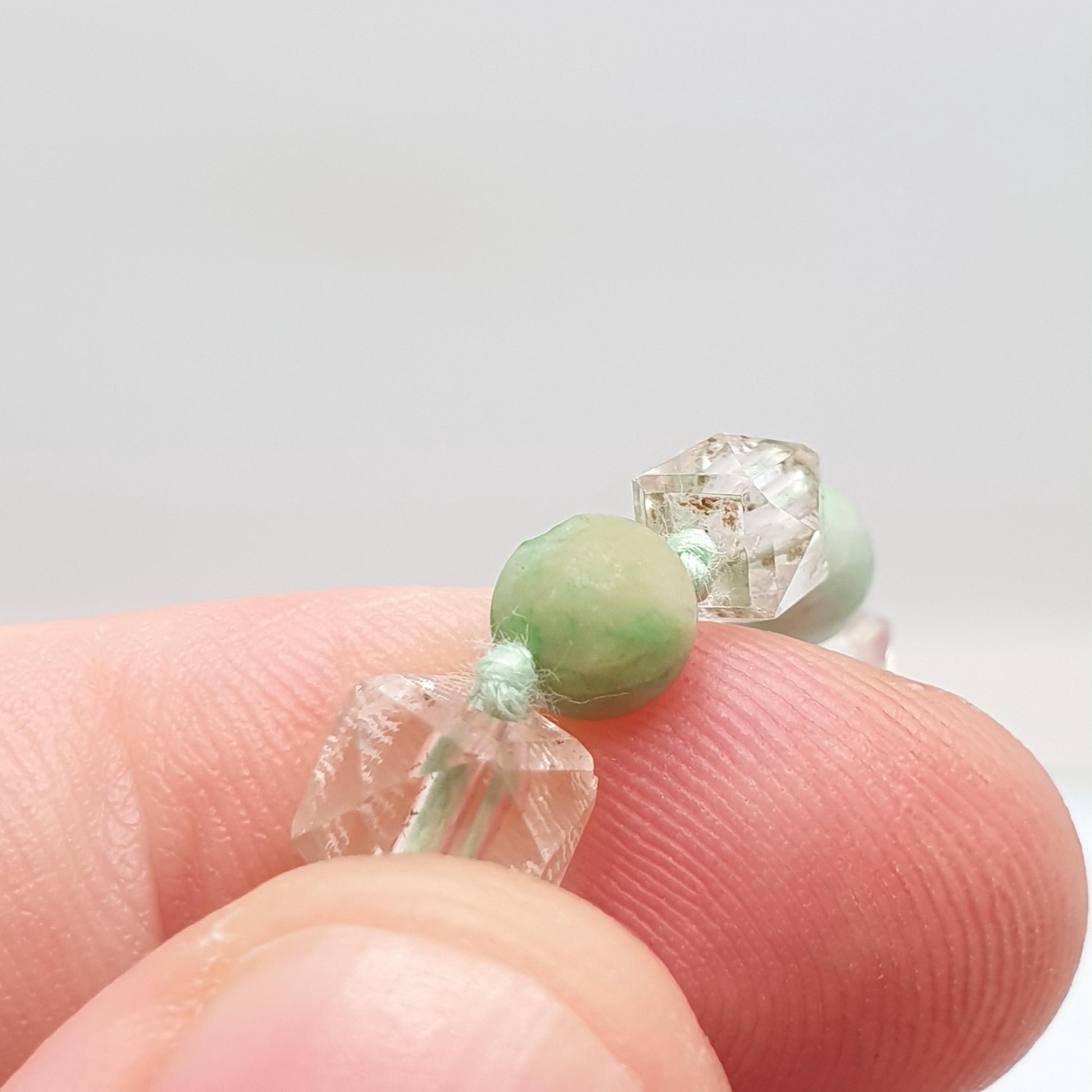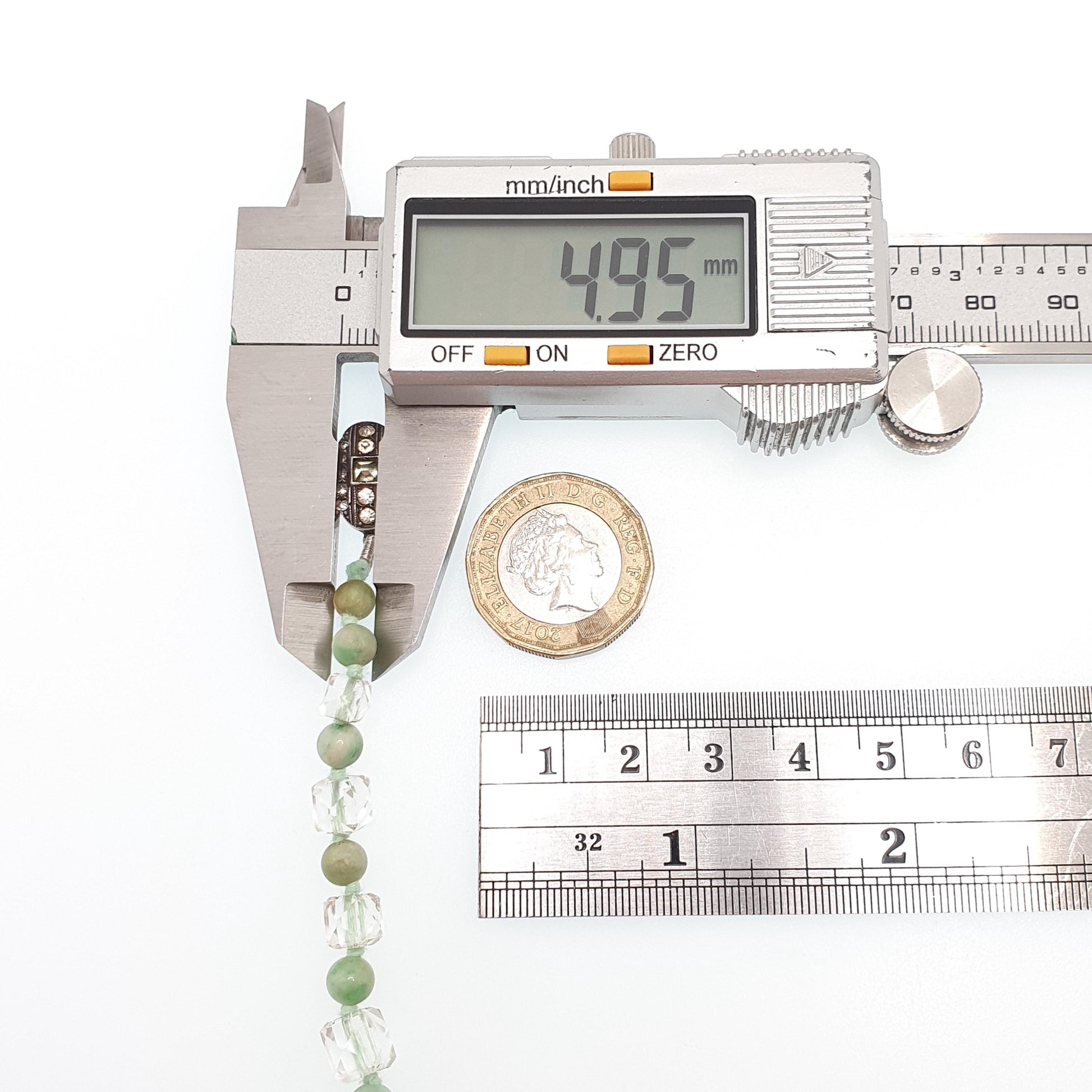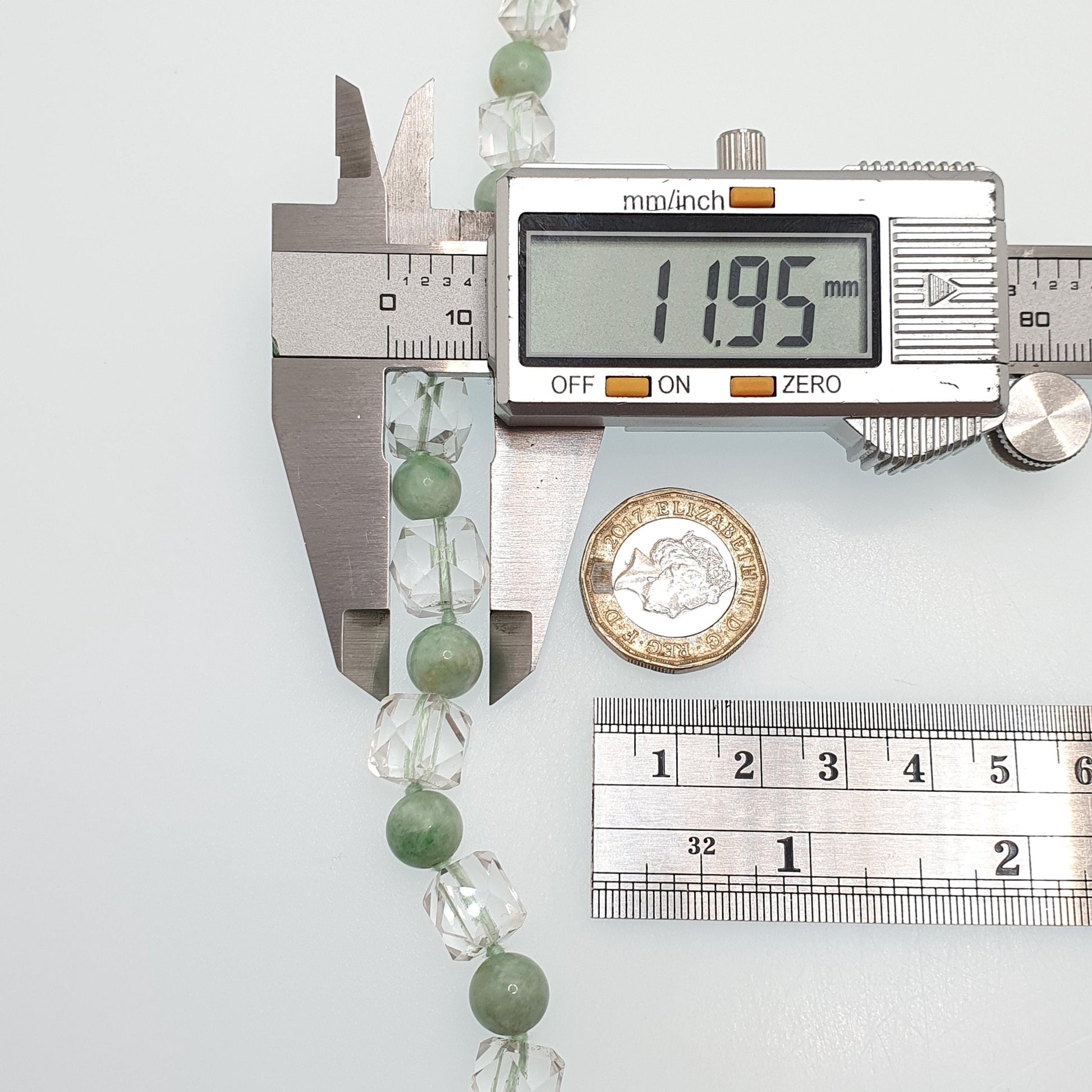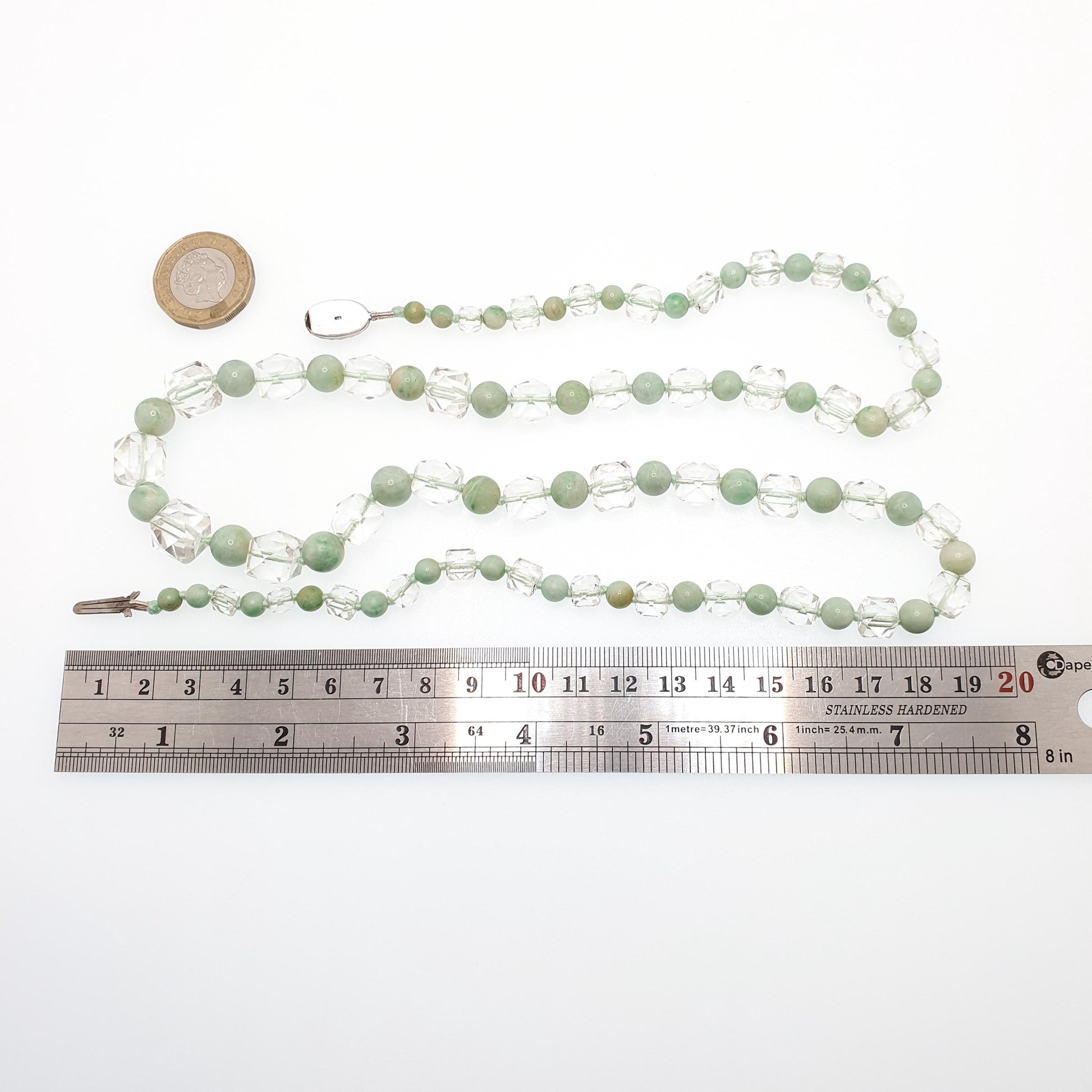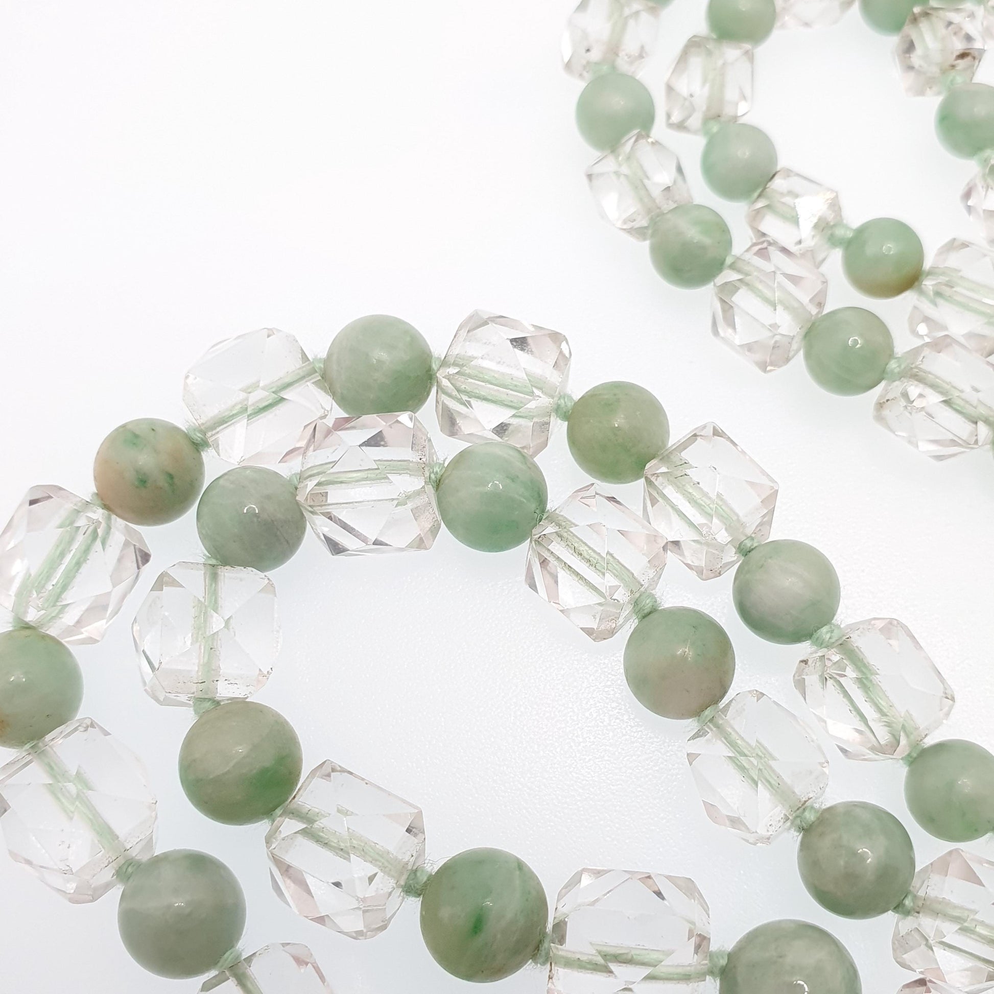 Antique Jade & Rock Crystal Bead Necklace Art Deco 1920s White Quartz 178cm 70" Solid Silver Paste Clasp Square Faceted Round Beads