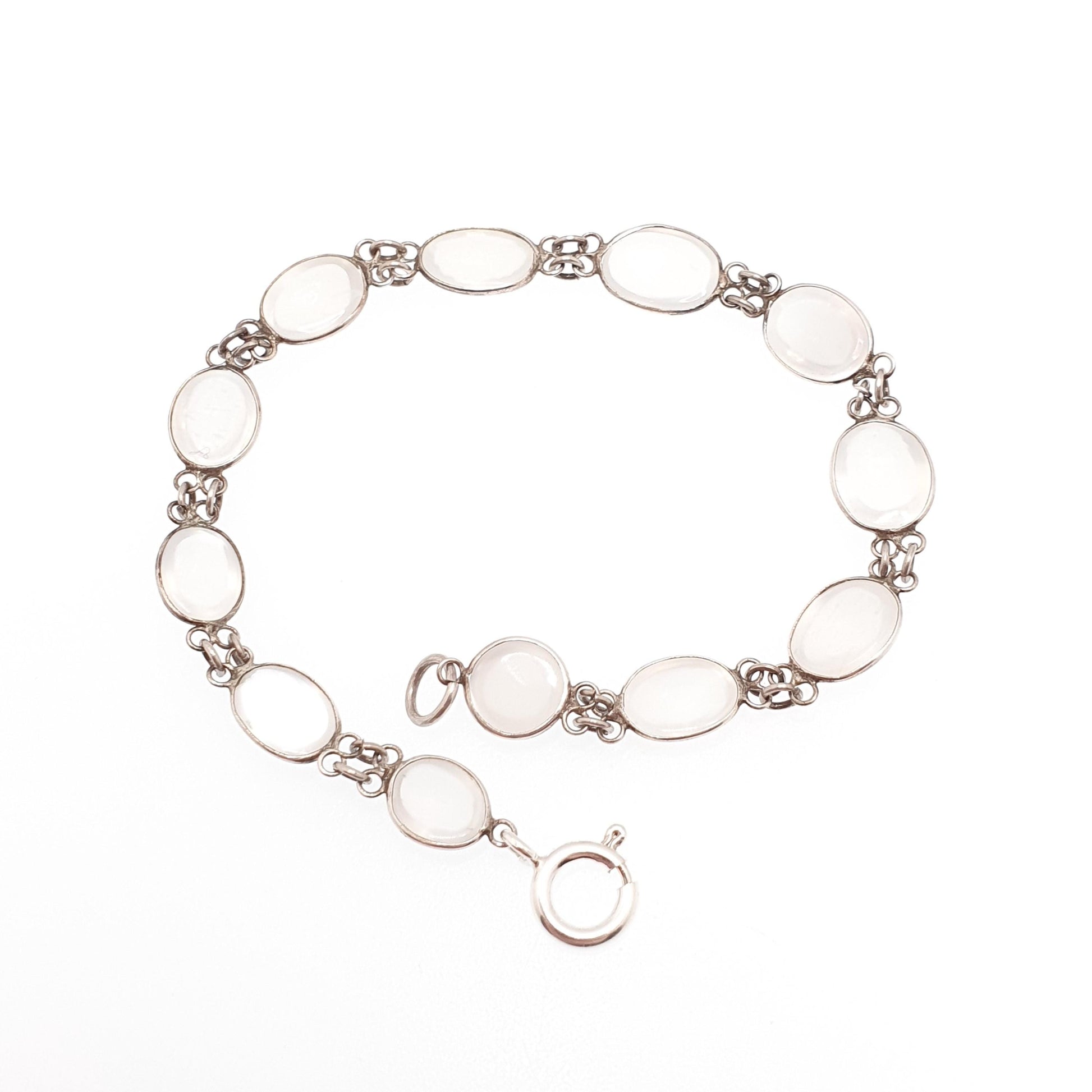 Antique Moonstone Solid Silver Bracelet Genuine Real Moonstones White Victorian Oval Cabochon Vintage Womens Jewelry Jewellery