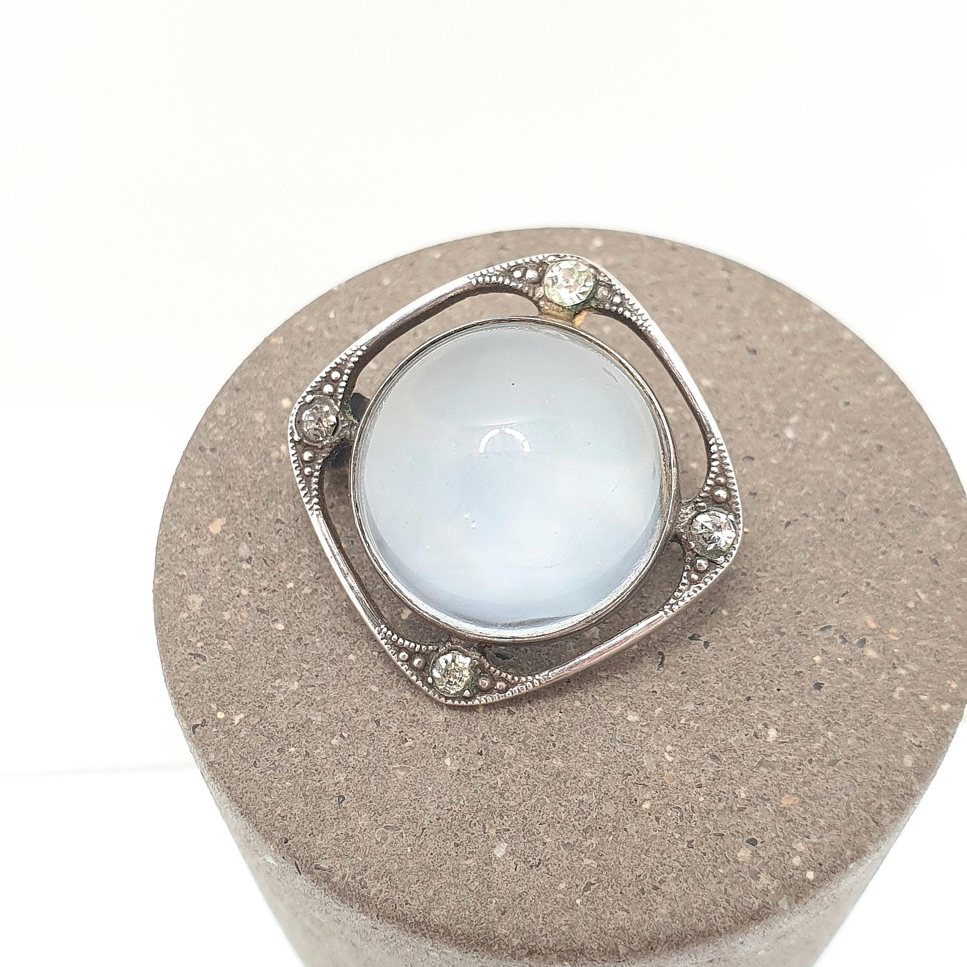 Antique Moonstone Sterling Silver Brooch Diamond Paste Cabochon Cut Edwardian Gemstone Vintage Adularescence Jewelry Jewellery