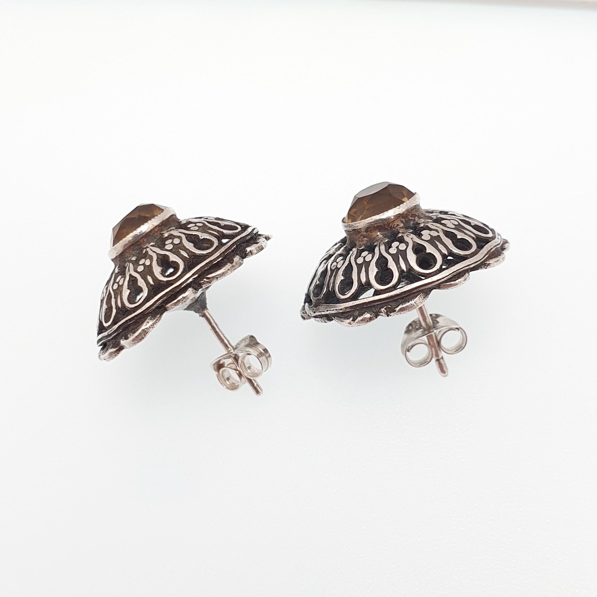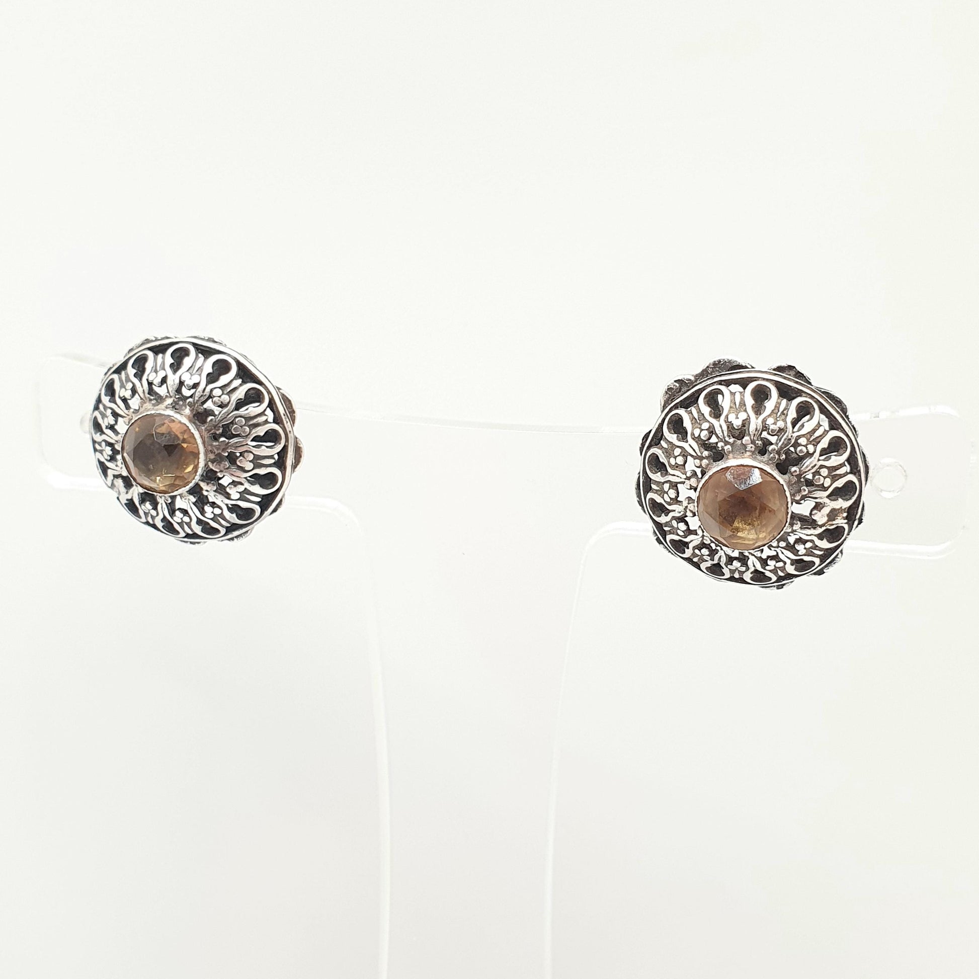 Antique Natural Citrine Solid Silver Earrings Austro Hungarian Large Stud Genuine Gemstone Vintage Jewellery Jewelry