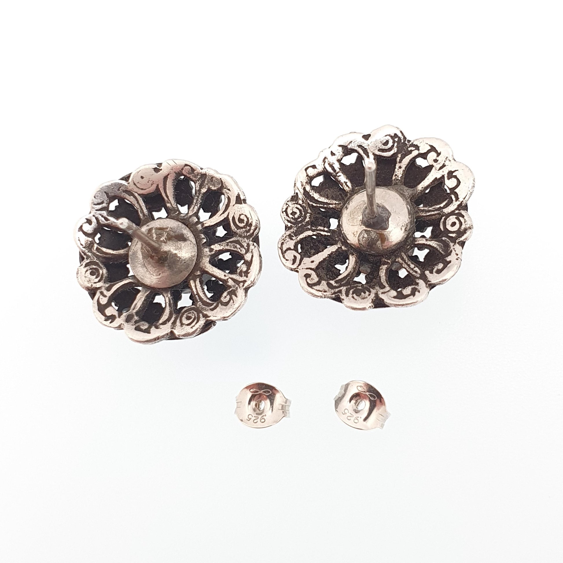 DESCRIPTION: A gorgeous pair of antique solid silver Austro Hungarian stud earrings, adorned with genuine natural citrine gemstones (100% tested). The earrings weigh a total of approx. 5.68g and the size dimensions are in the later photos. As to be expected with their age, they're not stamped/hallmarked, they test for high grade silver (800+). The rears have some old solder repairs to them. The backs are modern sterling silver replacements.