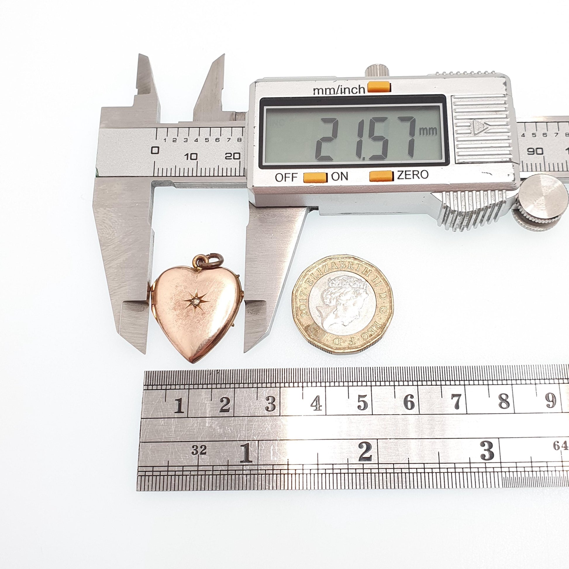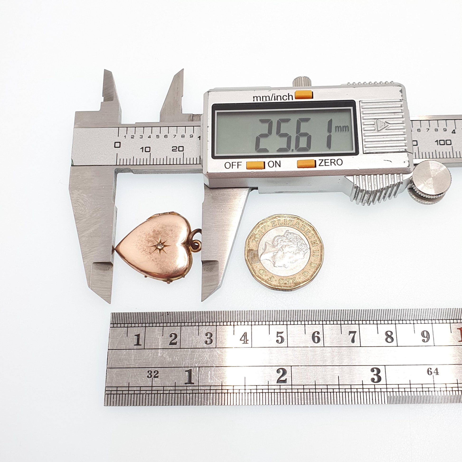 DESCRIPTION: A brilliant antique Victorian rolled rose gold heart locket, adorned with genuine diamond (100% tested). It opens/closes well and has the metal picture retaining shims for both sides. It weighs approx. 3.29g and the size dimensions are in the later photos. As to be expected with the items age, the rolled gold finish has worn in some areas and here are some dents on the face (see pictures/video).