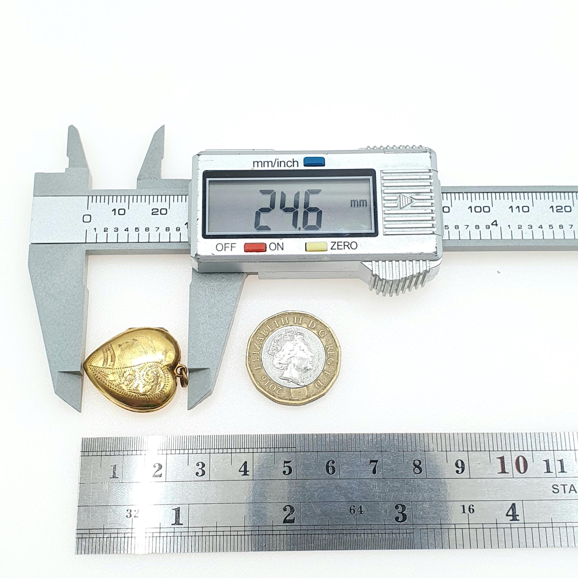 DESCRIPTION: A beautiful antique rolled gold locket, in a heart shape with engraved details. It opens/closes well and is stamped "ROLLED GOLD". It weighs 3.70g and the size dimensions in the latter photos. As to be expected with age and use, the rolled gold finish has worn with age and use, see pictures/video.
