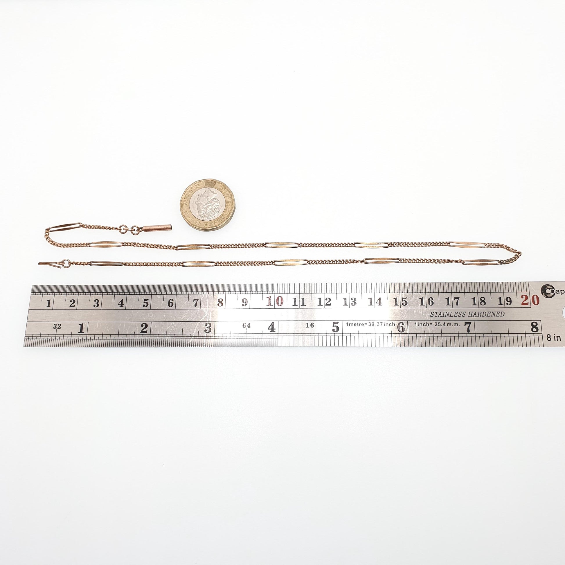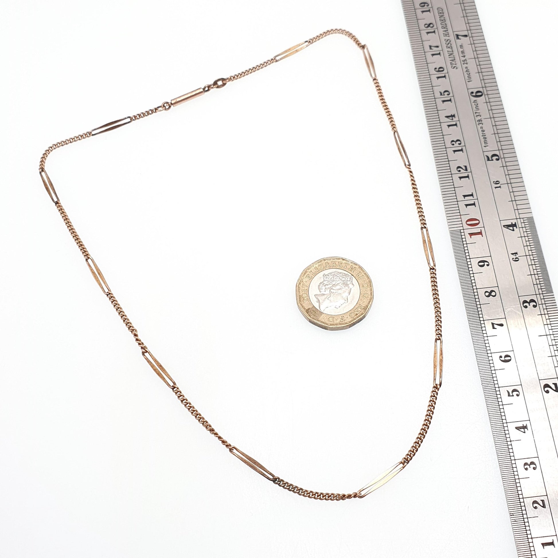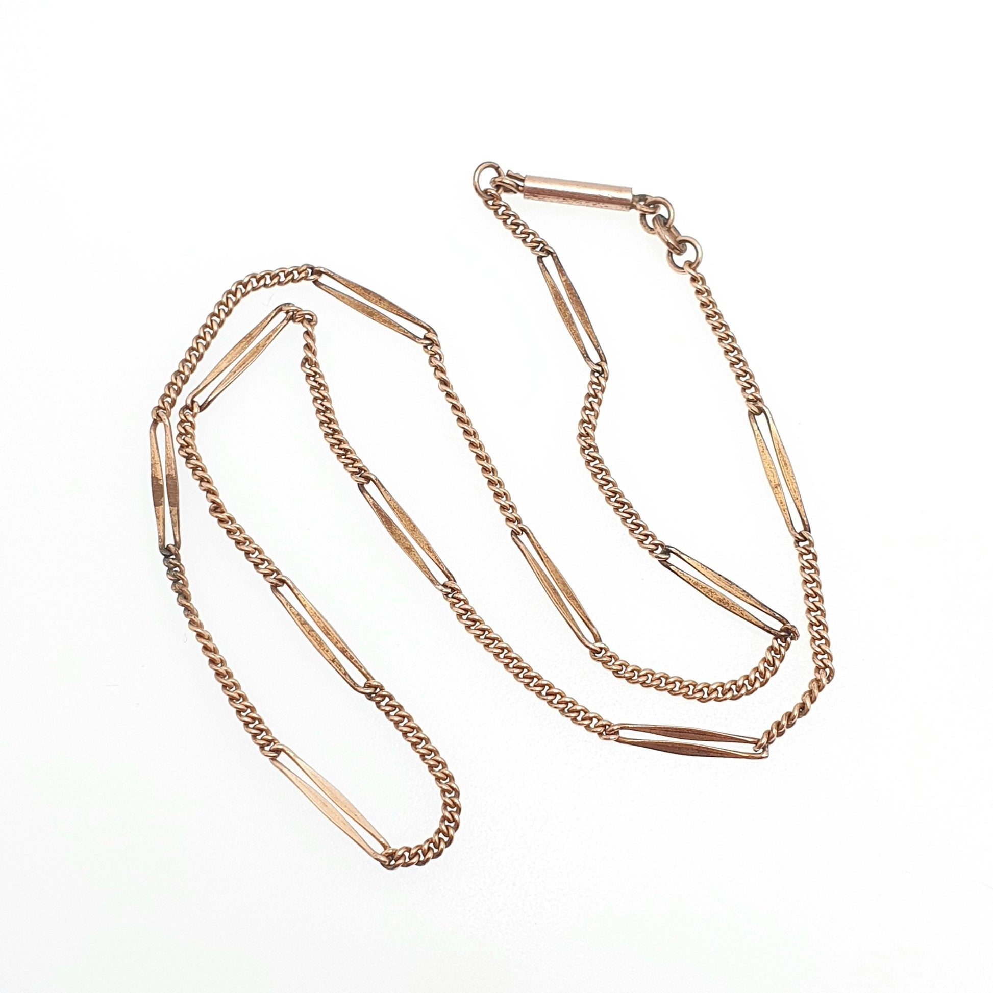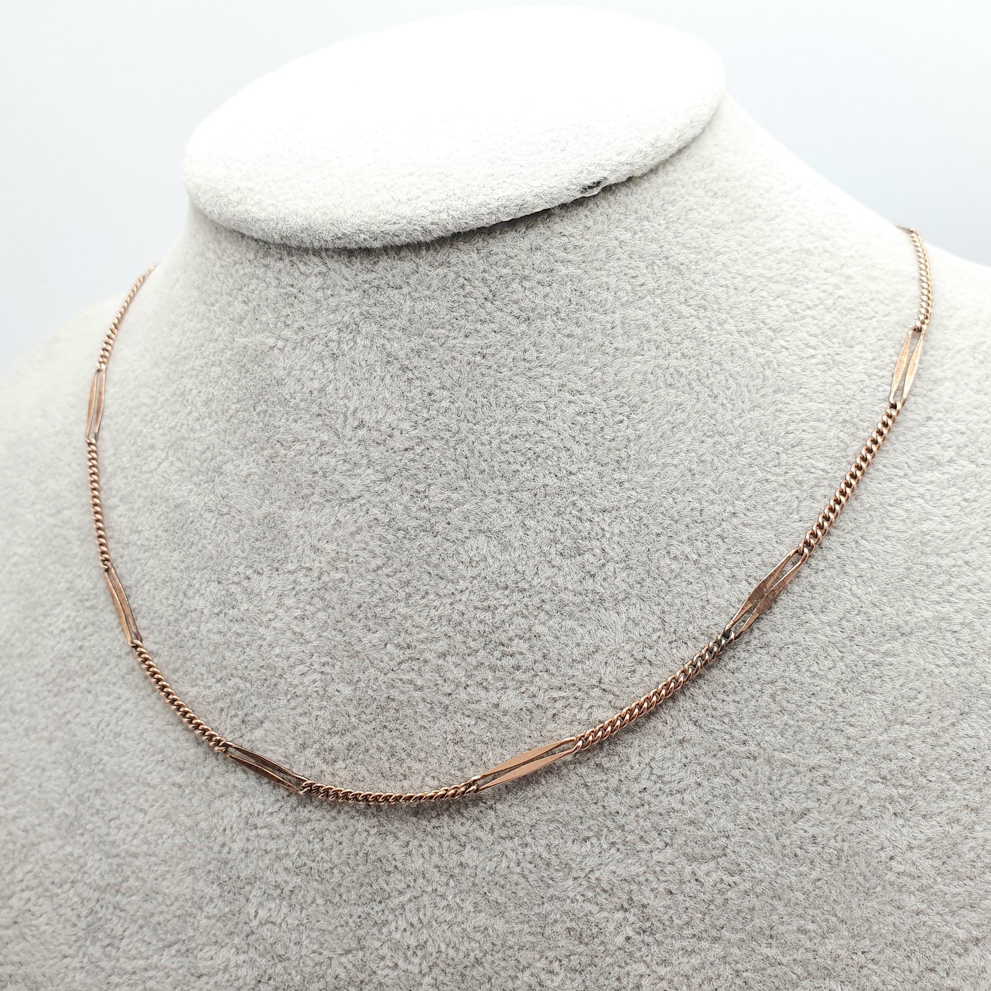 Antique Rolled Rose Gold Chain Necklace Bar & Curb Link 44cm 4.31g Filled Edwardian Vintage Jewelry Jewellery