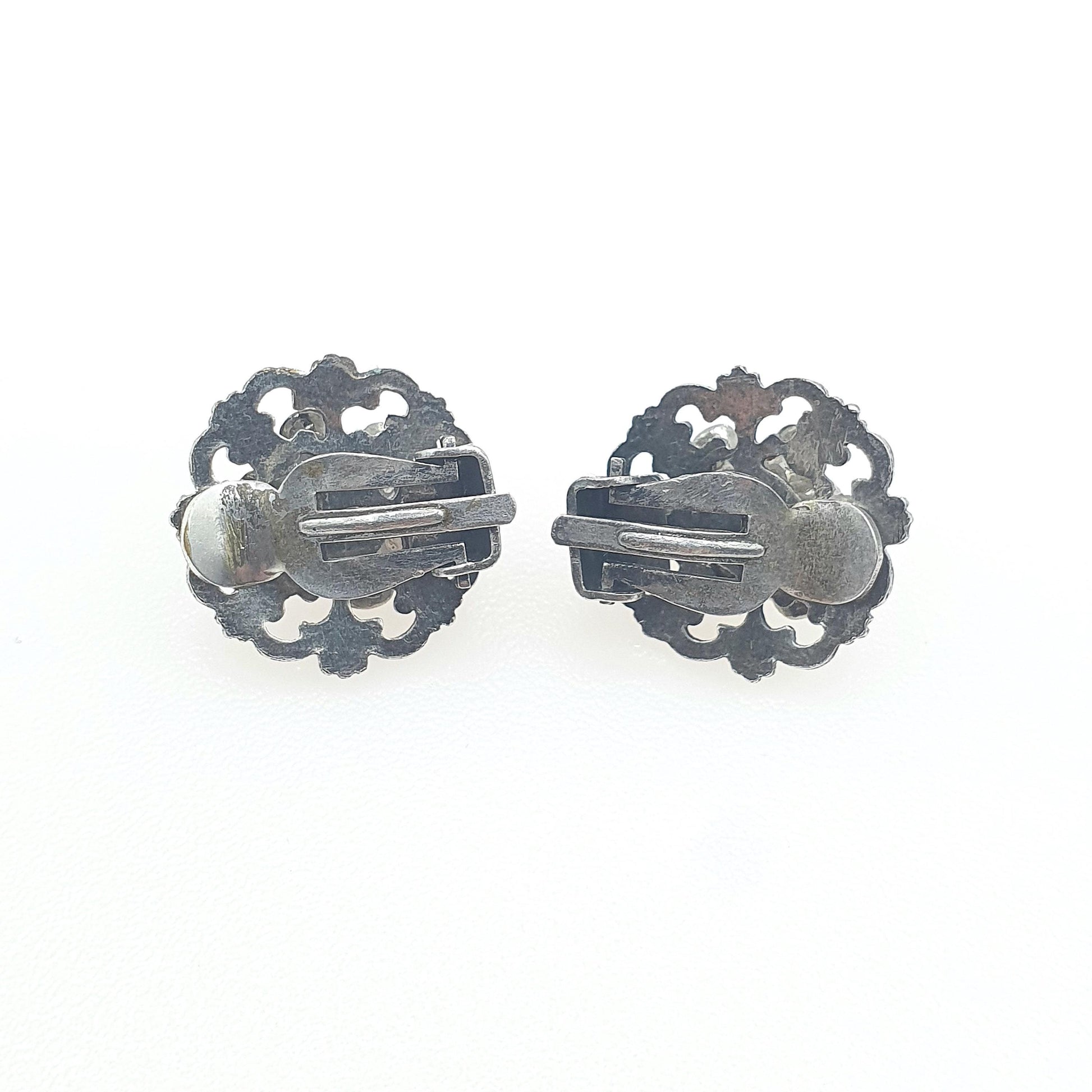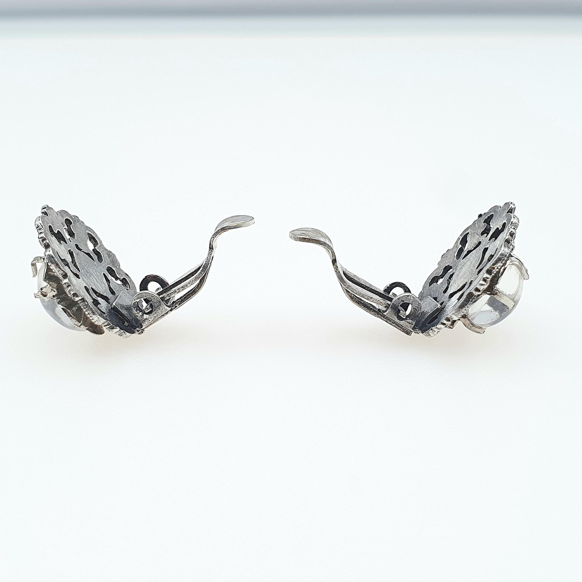 Antique Silver Plate Moonstone Clip On Earrings Czech Adularescence Gemstone Vintage Womens Jewellery Jewelry