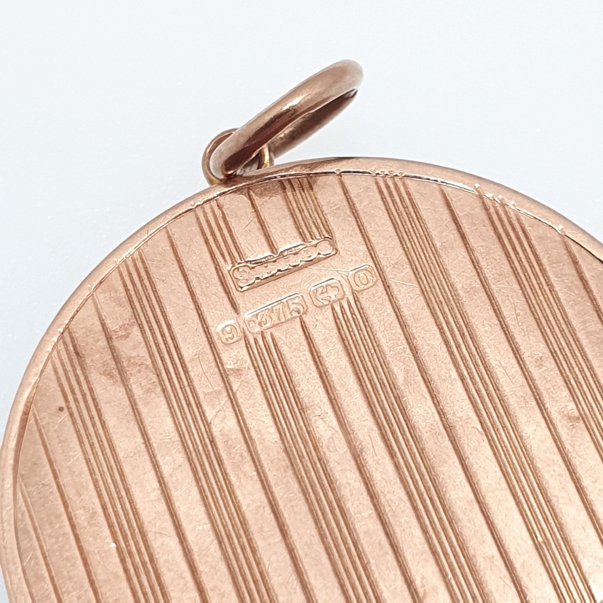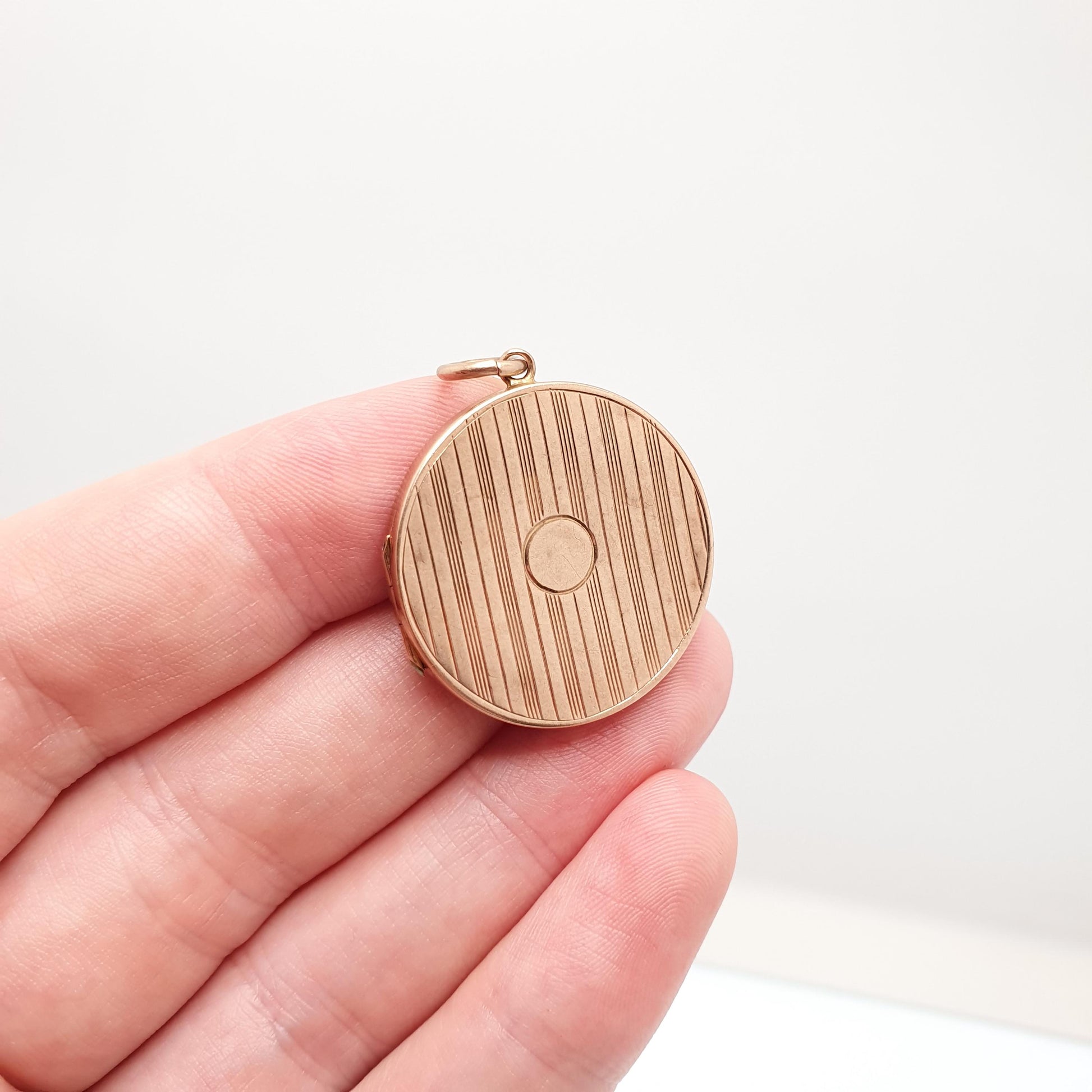 Antique Solid 9k 375 Rose Gold Locket Round 1913 Hallmark Vertical Pattern All 9ct 9kt Gold Necklace Photo Picture Pendant Jewelry Jewellery