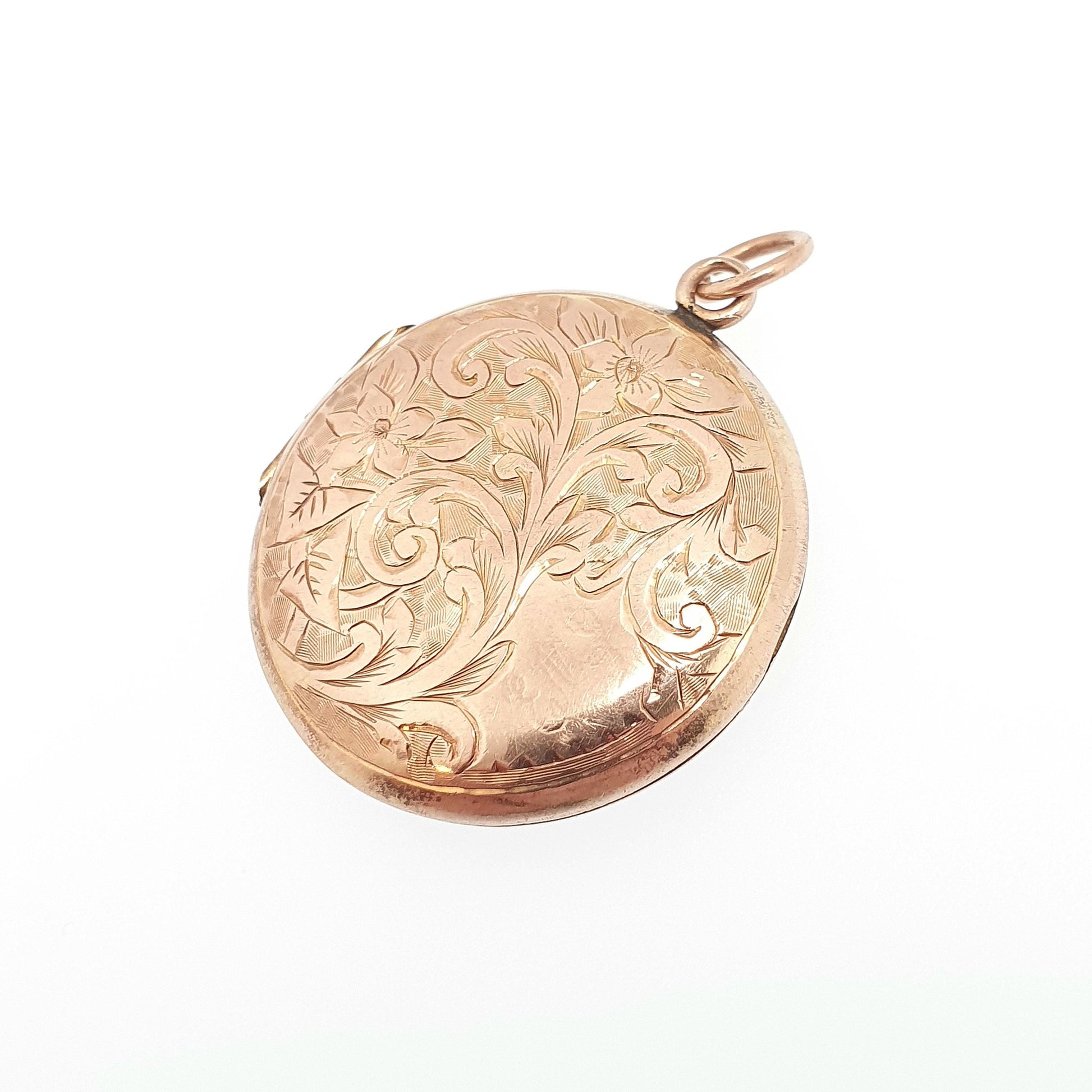 Antique Solid 9k 9ct Rose Gold Locket Round 1905 Hallmark Engraved All 9ct 9kt Gold Necklace Photo Picture Pendant Jewelry Jewellery