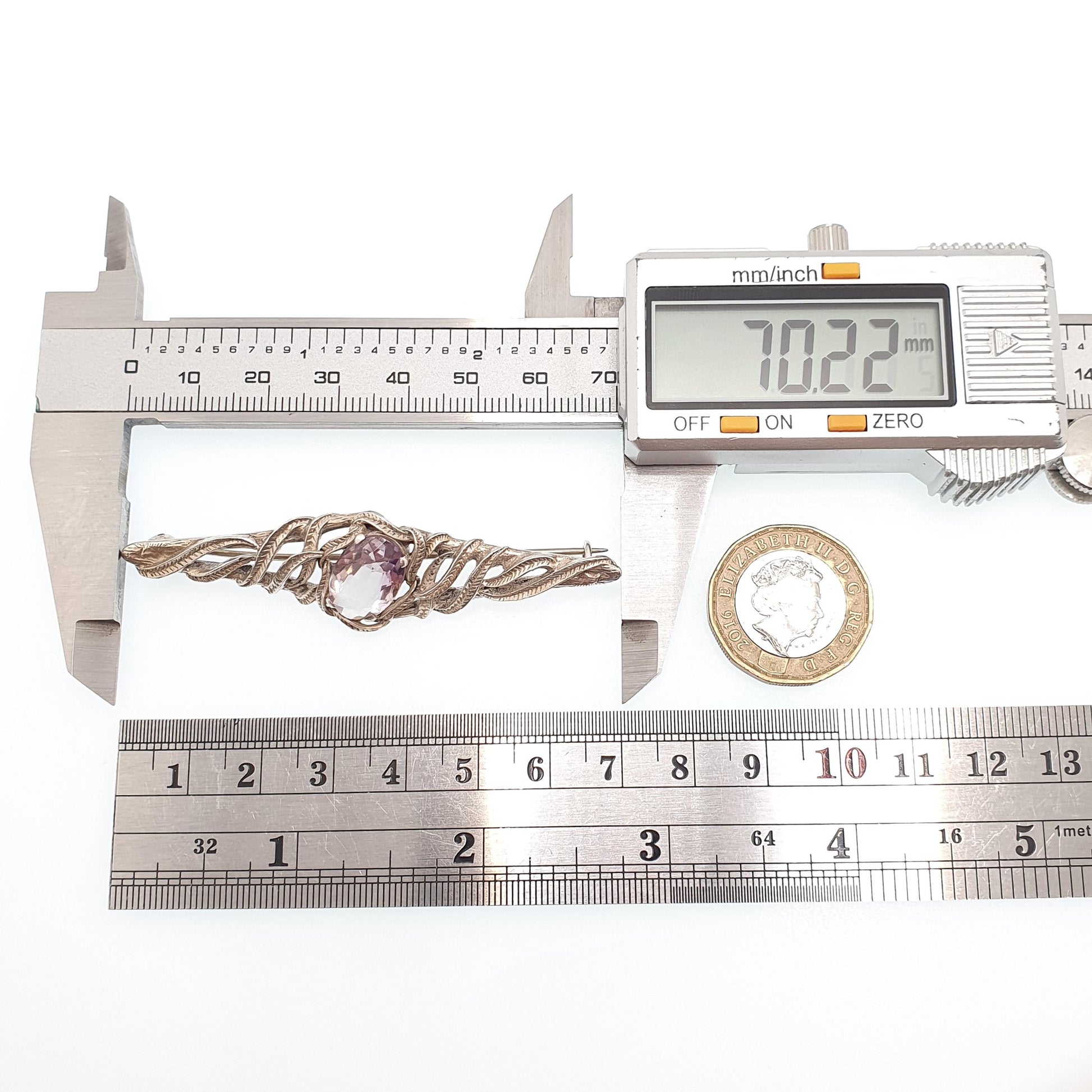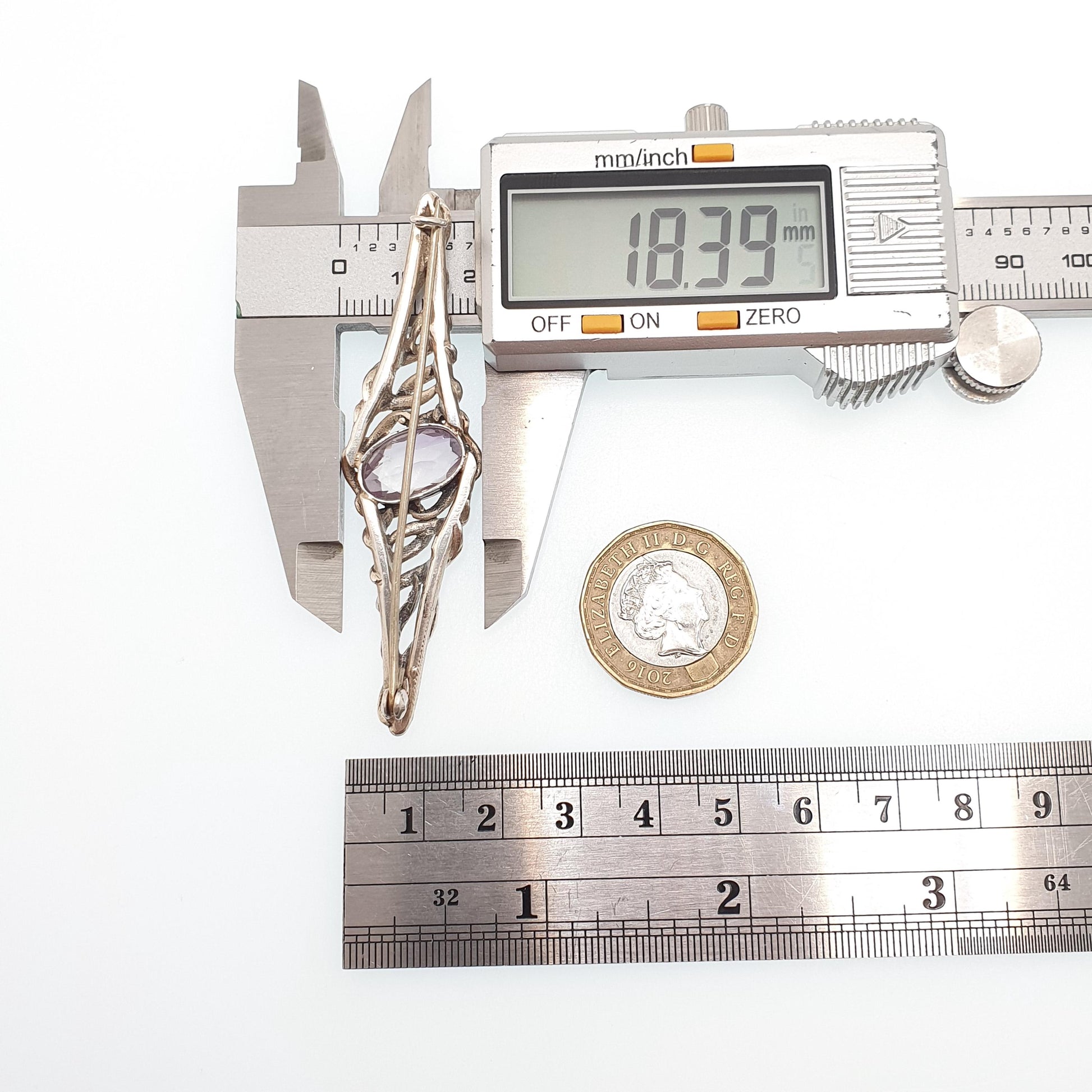 Antique Solid Silver Amethyst Brooch Genuine Real Gemstone Arts and Crafts Handmade Jewelry Jewellery