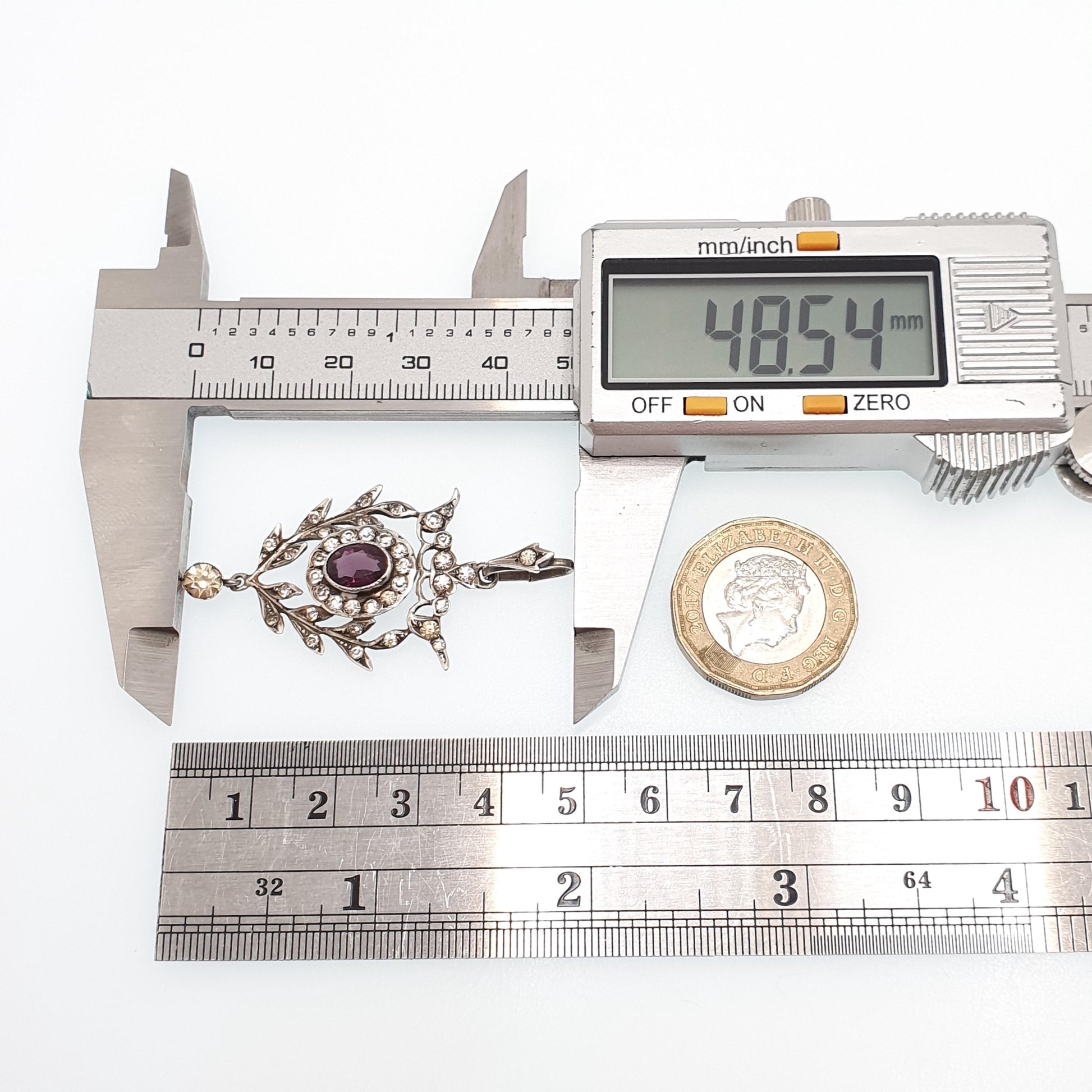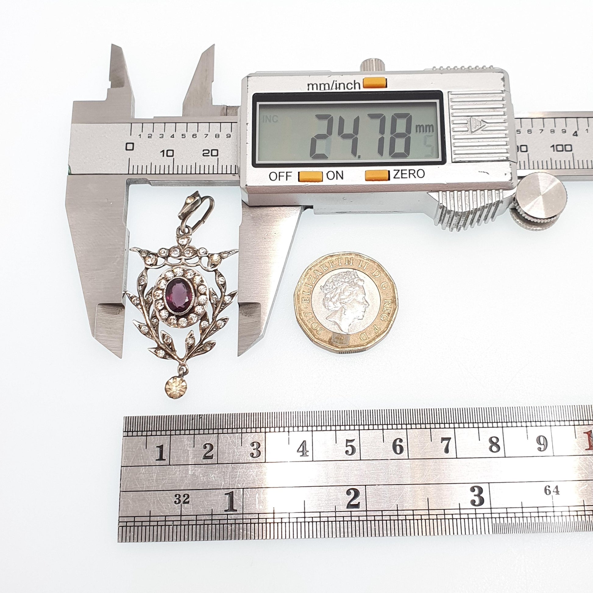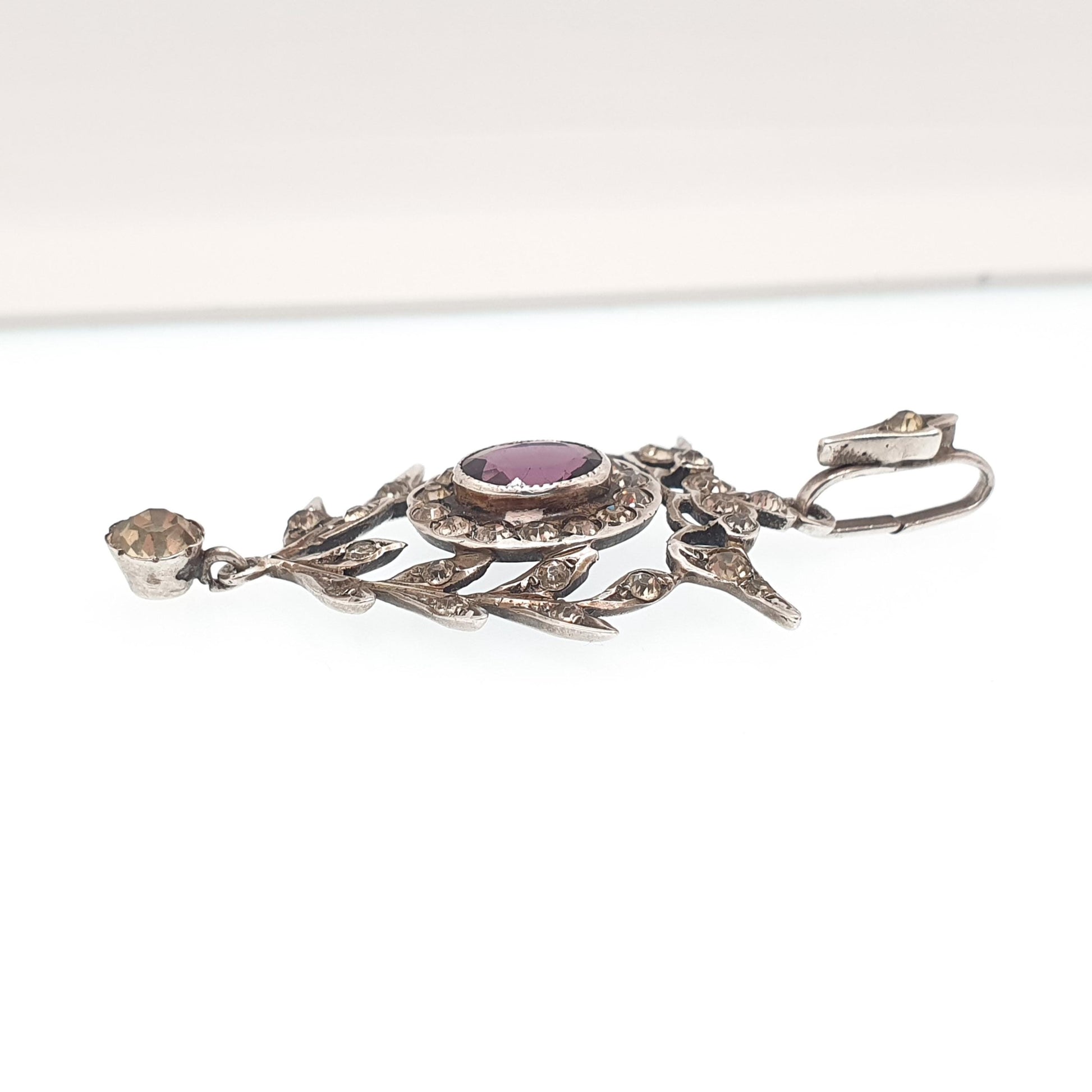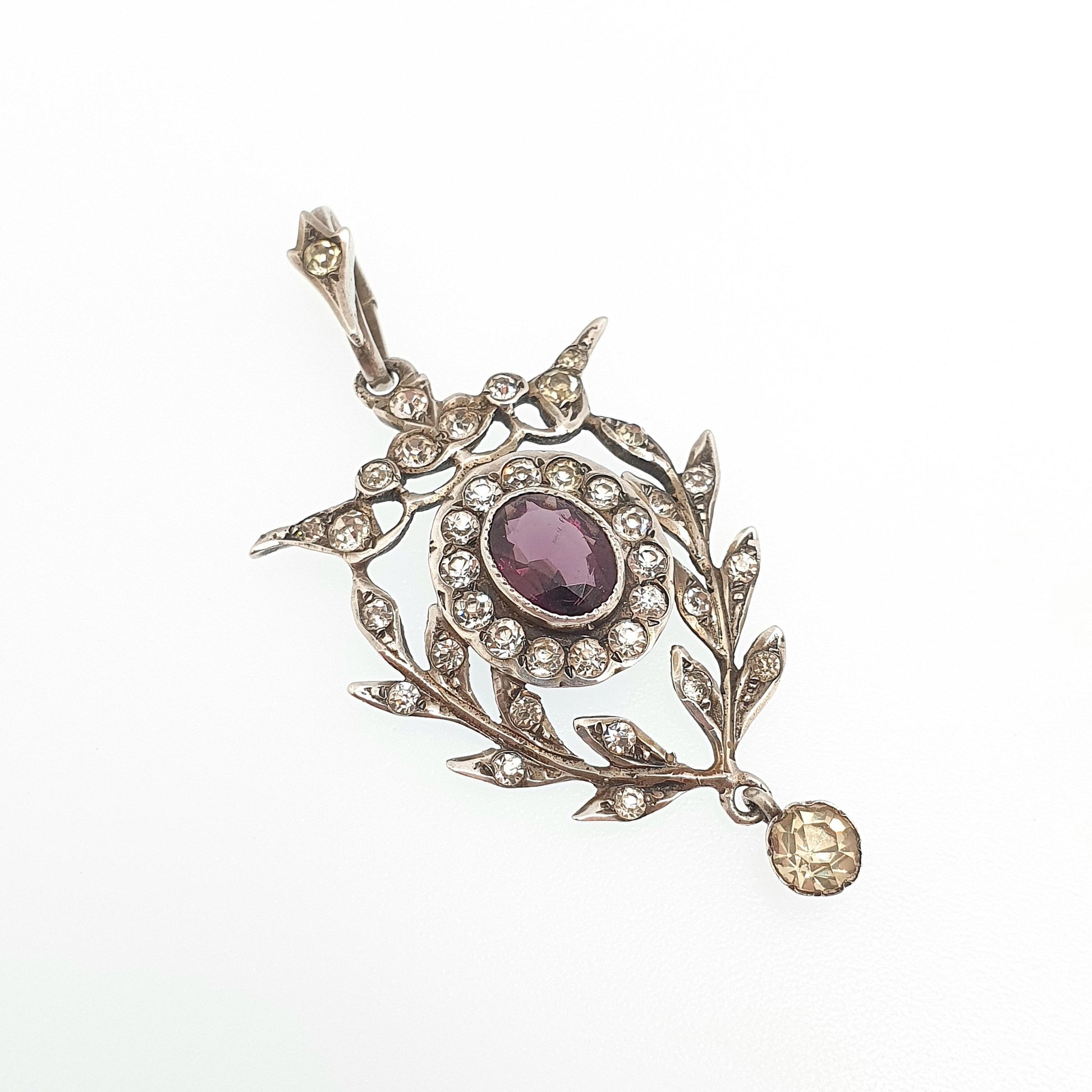 Antique Solid Silver Amethyst & Diamond Paste Pendant Necklace Art Nouveau Rare Vintage Womens Jewellery Jewelry