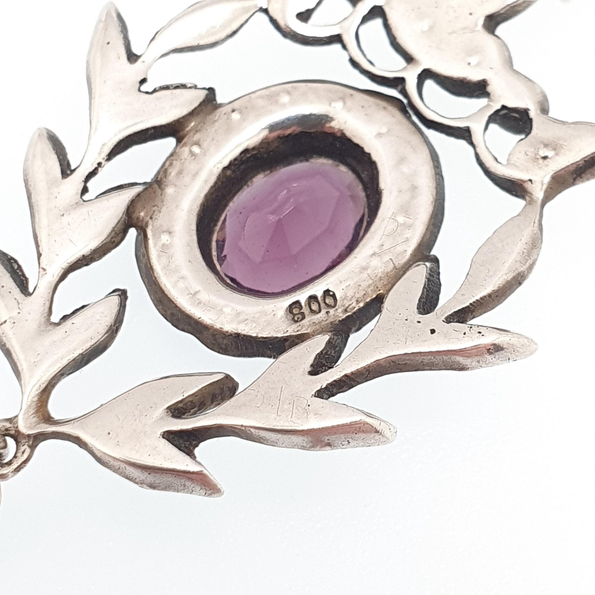 DESCRIPTION: A stunning antique solid silver art nouveau pendant, adorned with amethyst tone and diamond tone pastes. It weighs approx. 4.25g and the size dimensions are in the later photos. The item is stamped "800" for silver.