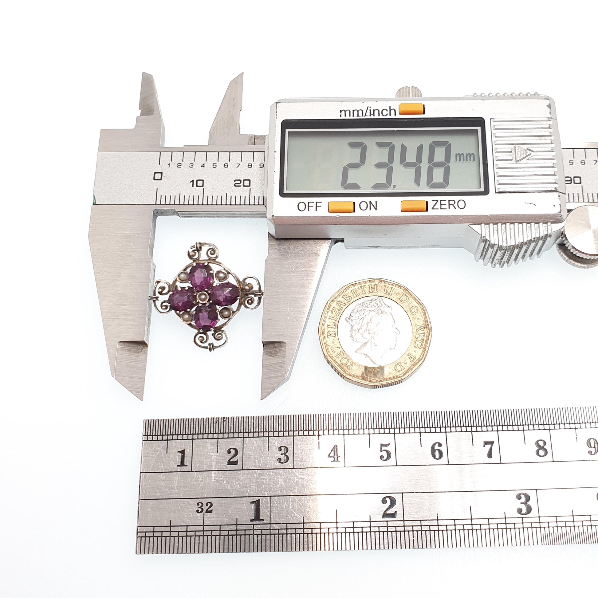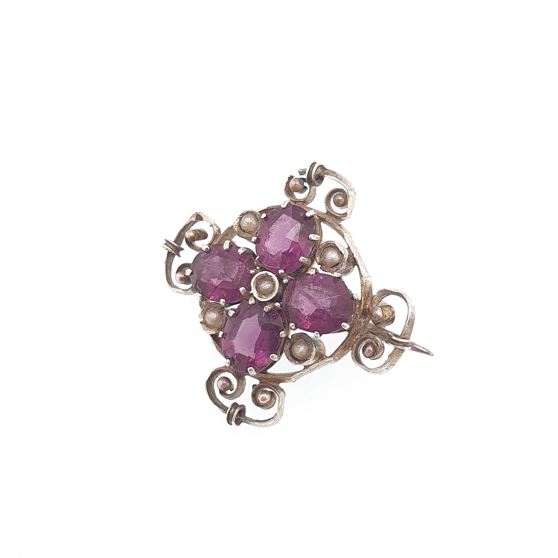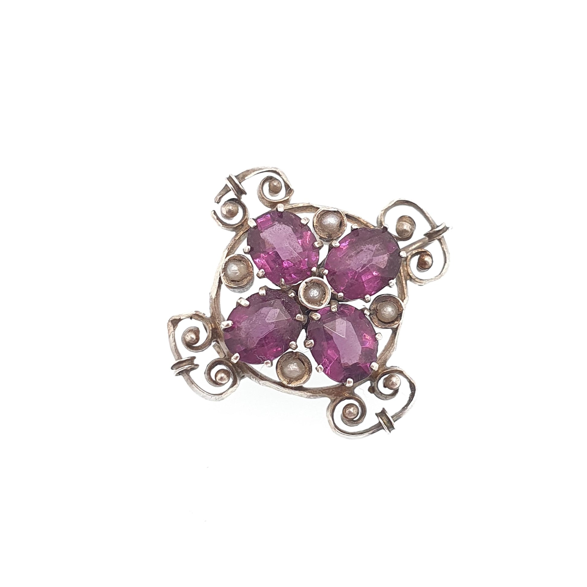 Antique Solid Silver Amethyst Paste Brooch Victorian Seed Pearl Cruciform 1800s Vintage Womens Jewelry Jewellery