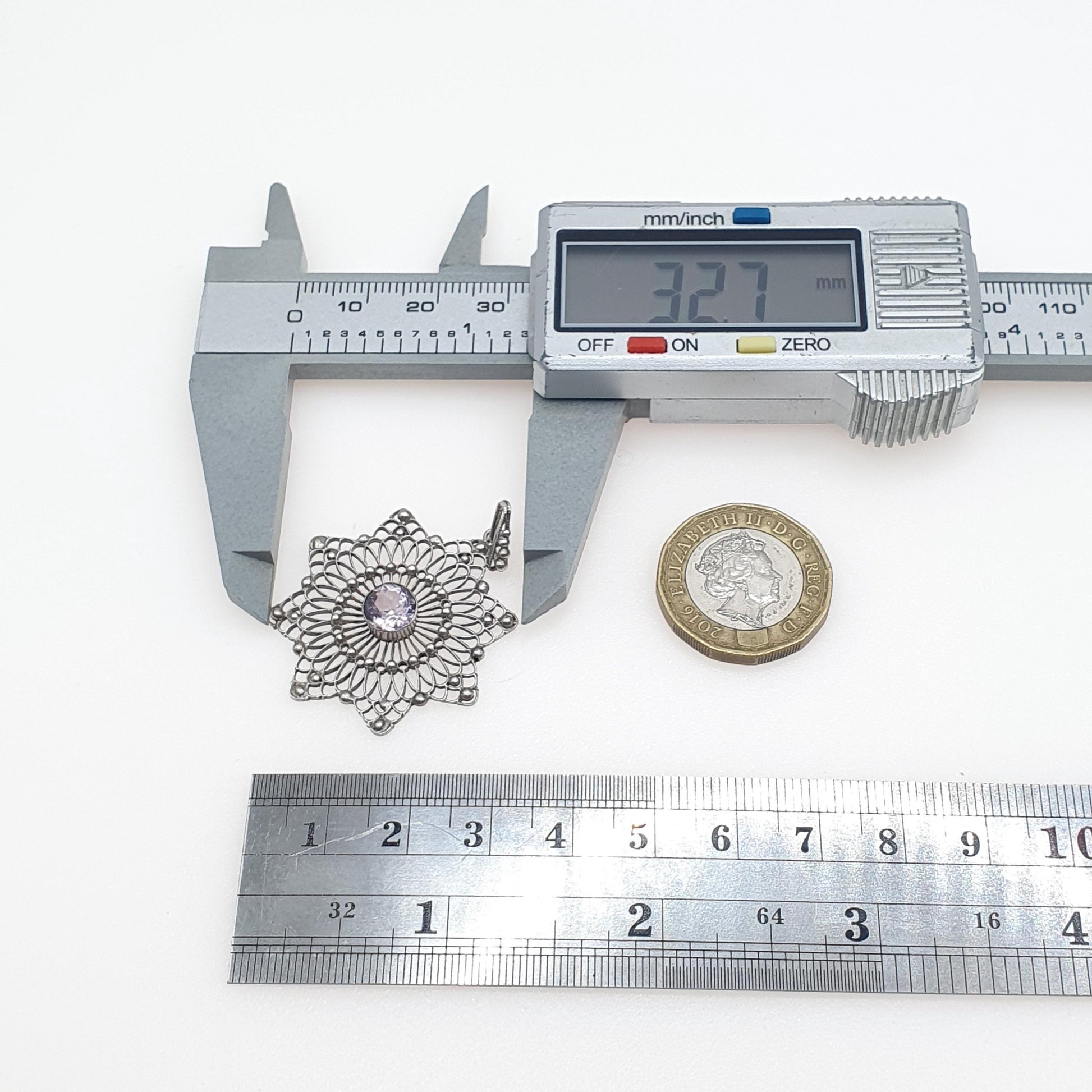 Antique Solid Silver Amethyst Star Filigree Pendant Celestial Handmade Purple Gemstone Delicate Vintage Womens Necklace Jewellery Jewelry