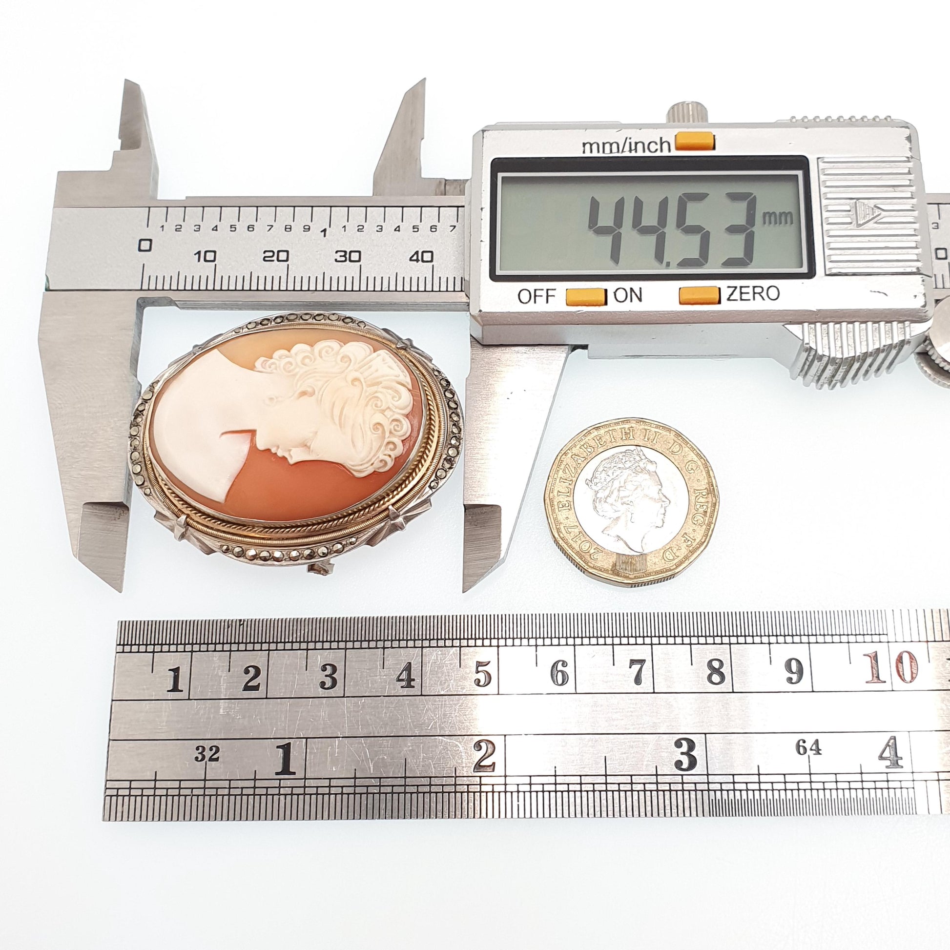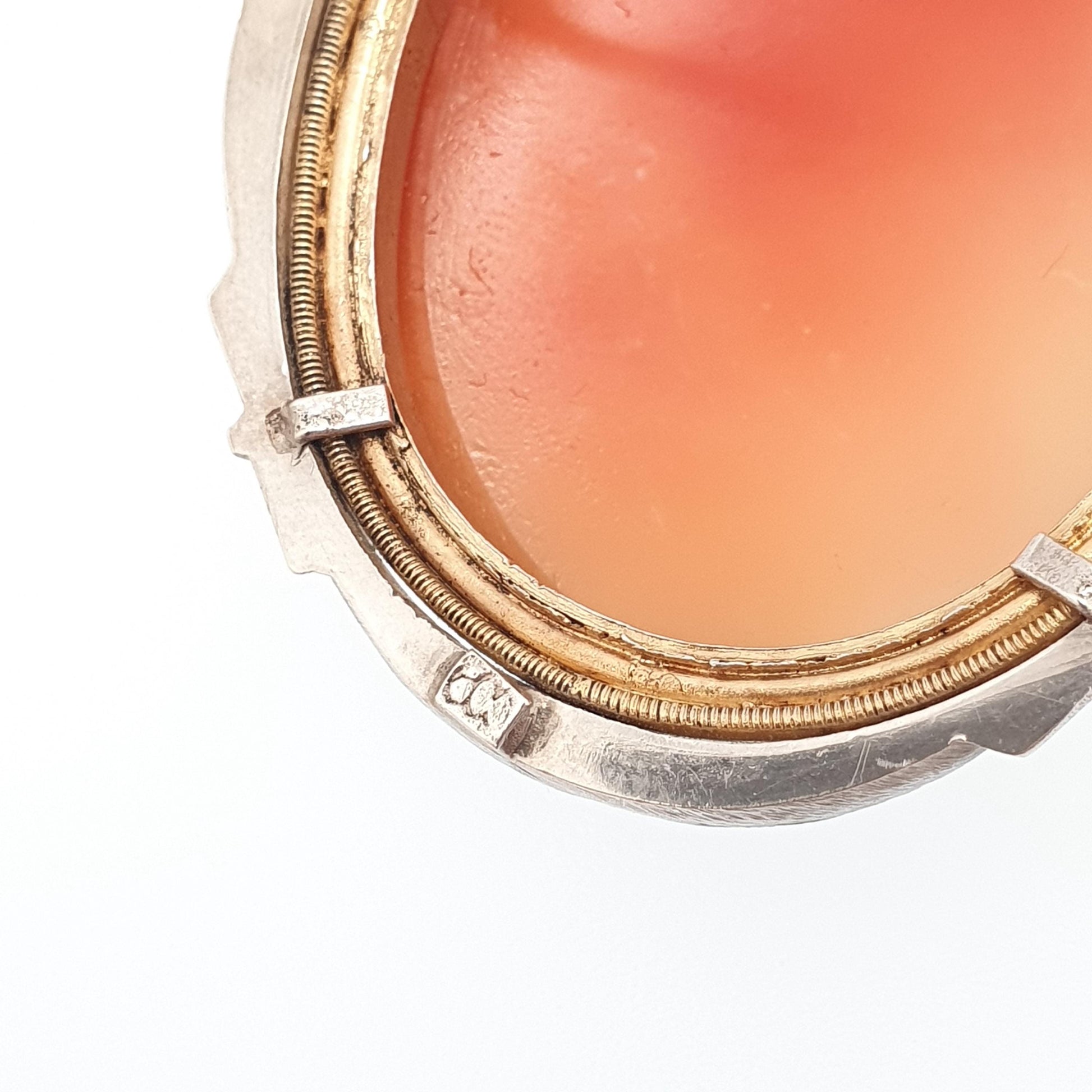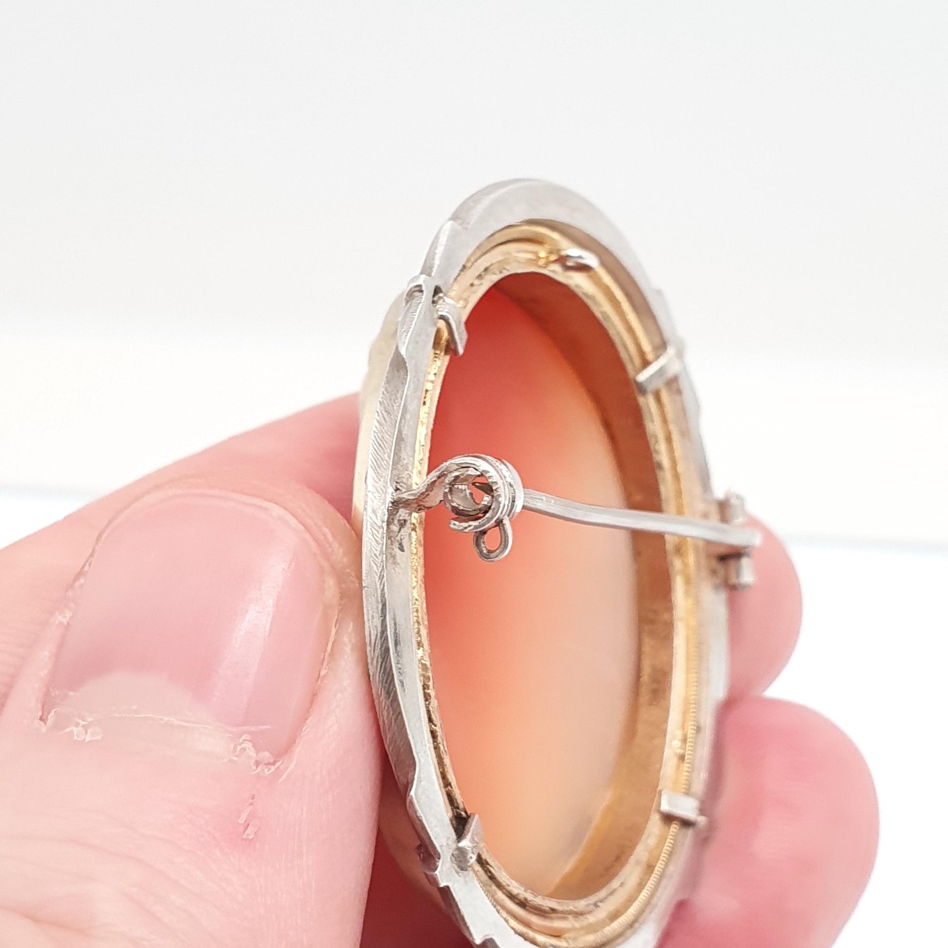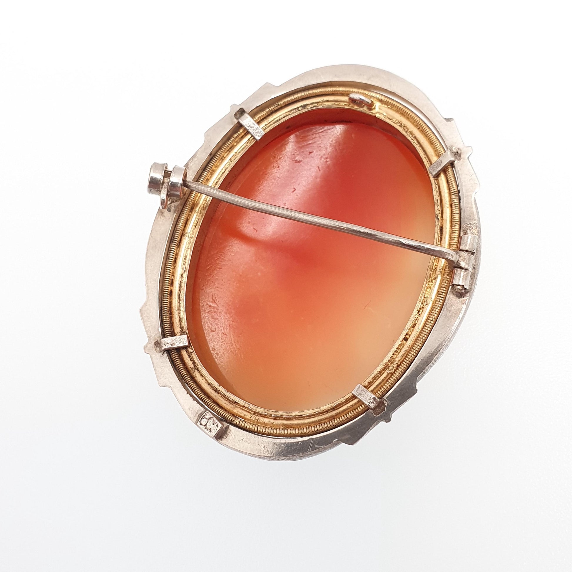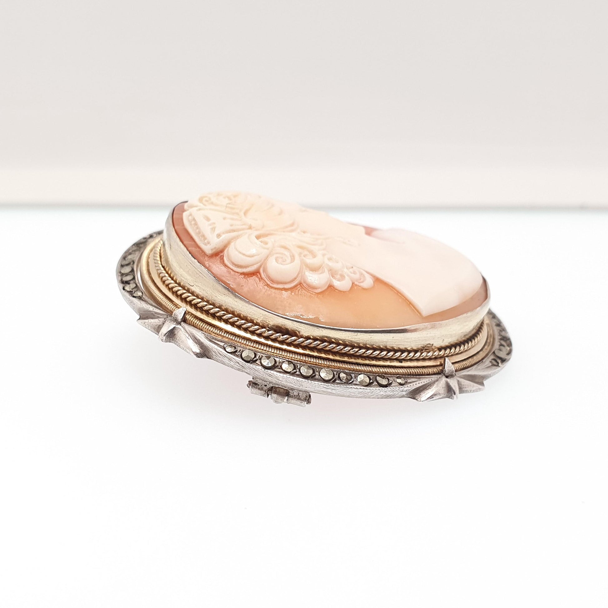 Antique Solid Silver Cameo Pendant Brooch Pin Large Big Genuine Shell Art Deco 1920s Marcasite Border Oval Italian Womens Jewelry Jewellery