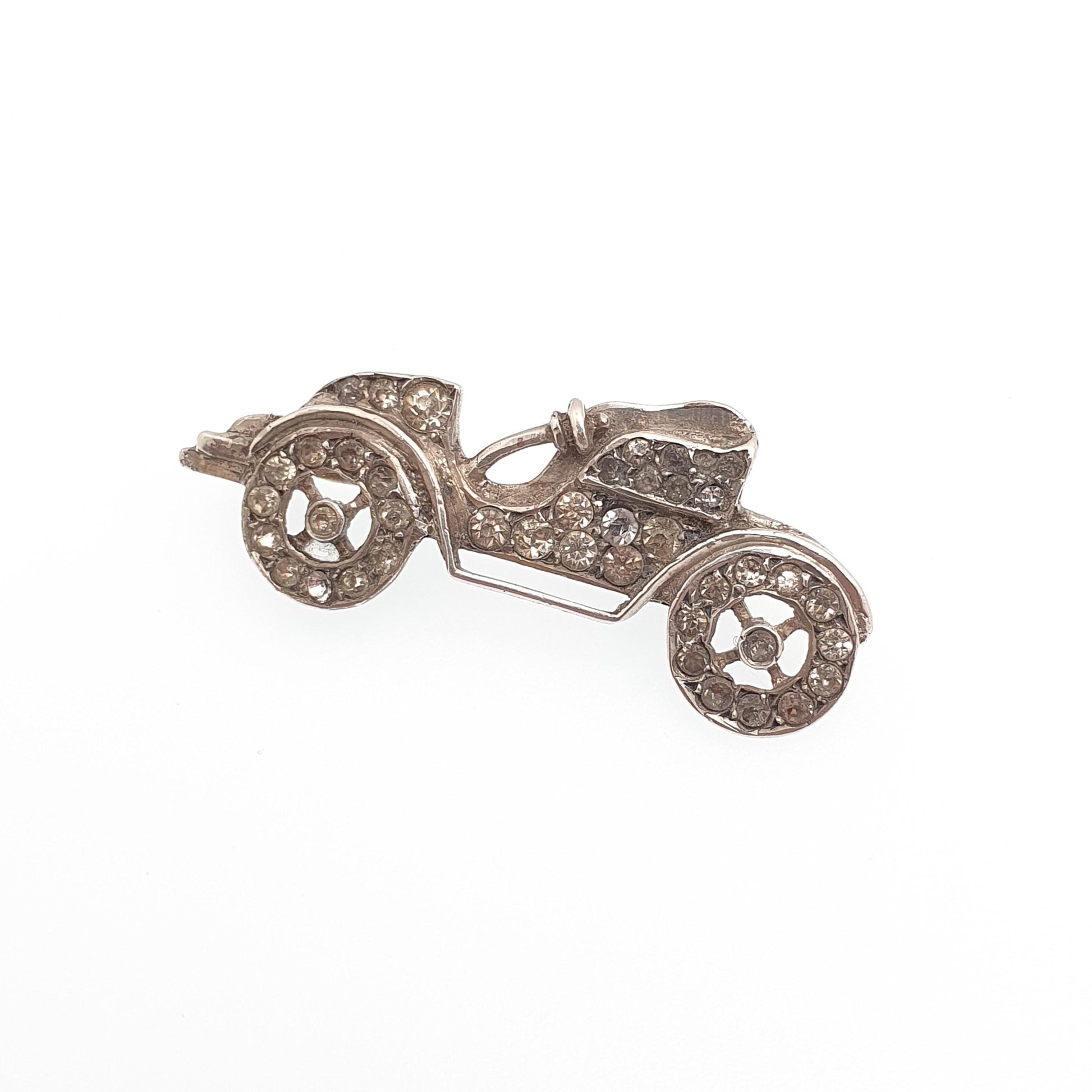 Antique Solid Silver Car Brooch Diamond Paste Automobile Collectible Sweetheart Vintage Womens Jewelry Jewellery