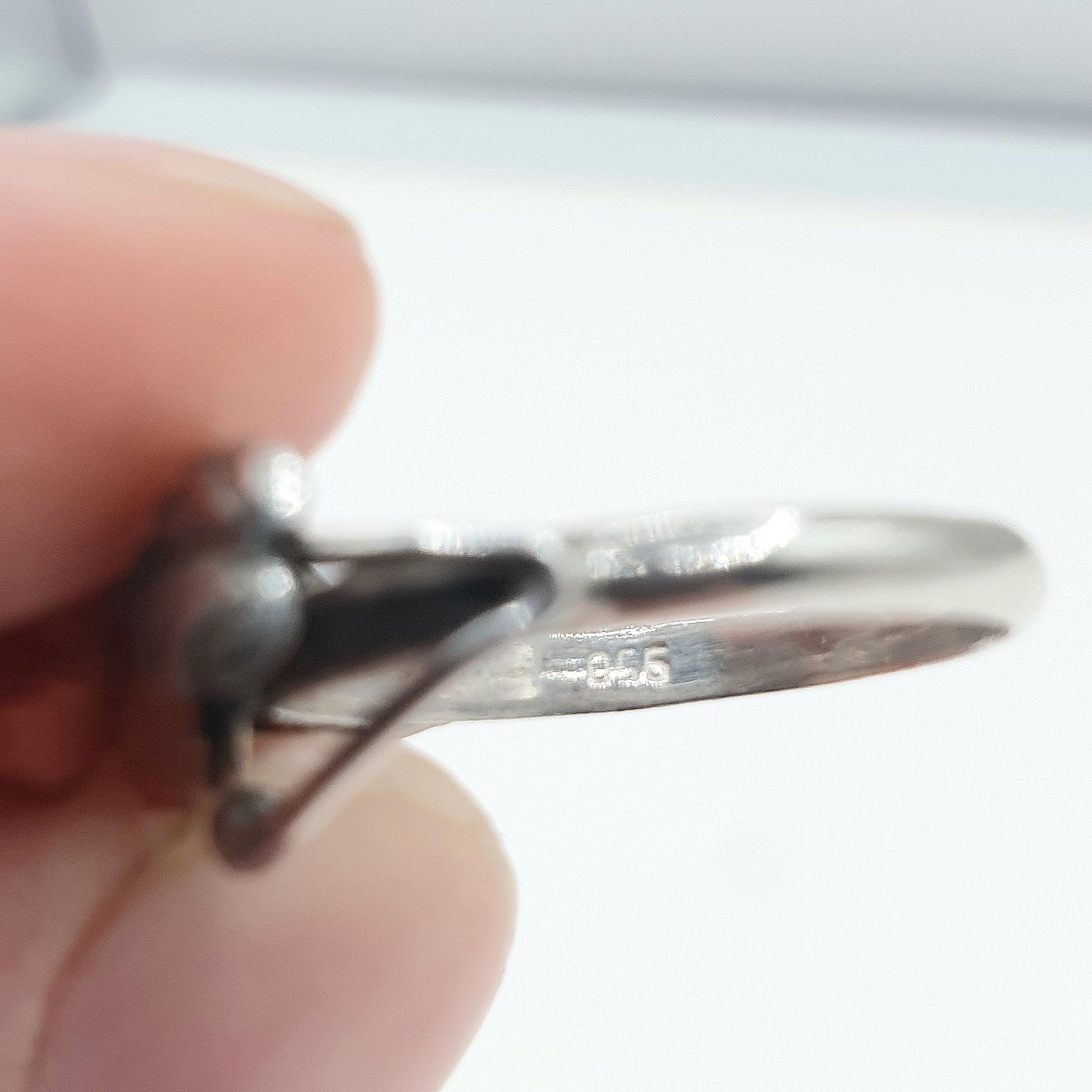 DESCRIPTION: A stunning antique art deco solid silver hand caved coral ring. The ring stamped "950" for solid silver, sizes at approx. UK N.5 US 7 and weighs 2.38g.