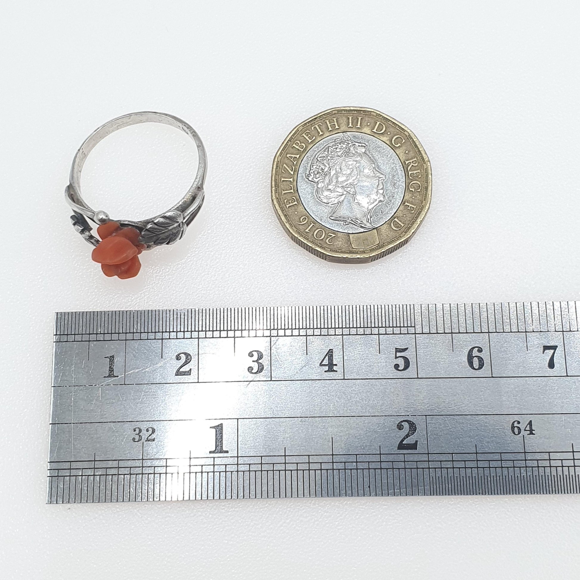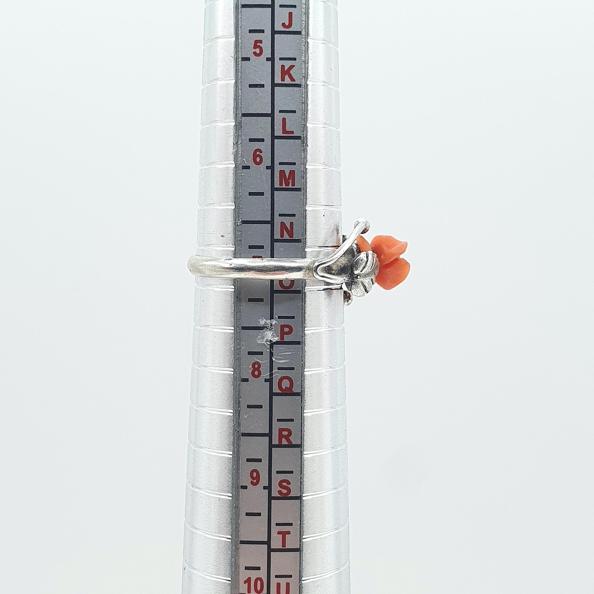 Antique Solid Silver Carved Coral Flower Ring Hand Carved Gemstone Orange Womens Ladies Jewelry Jewellery