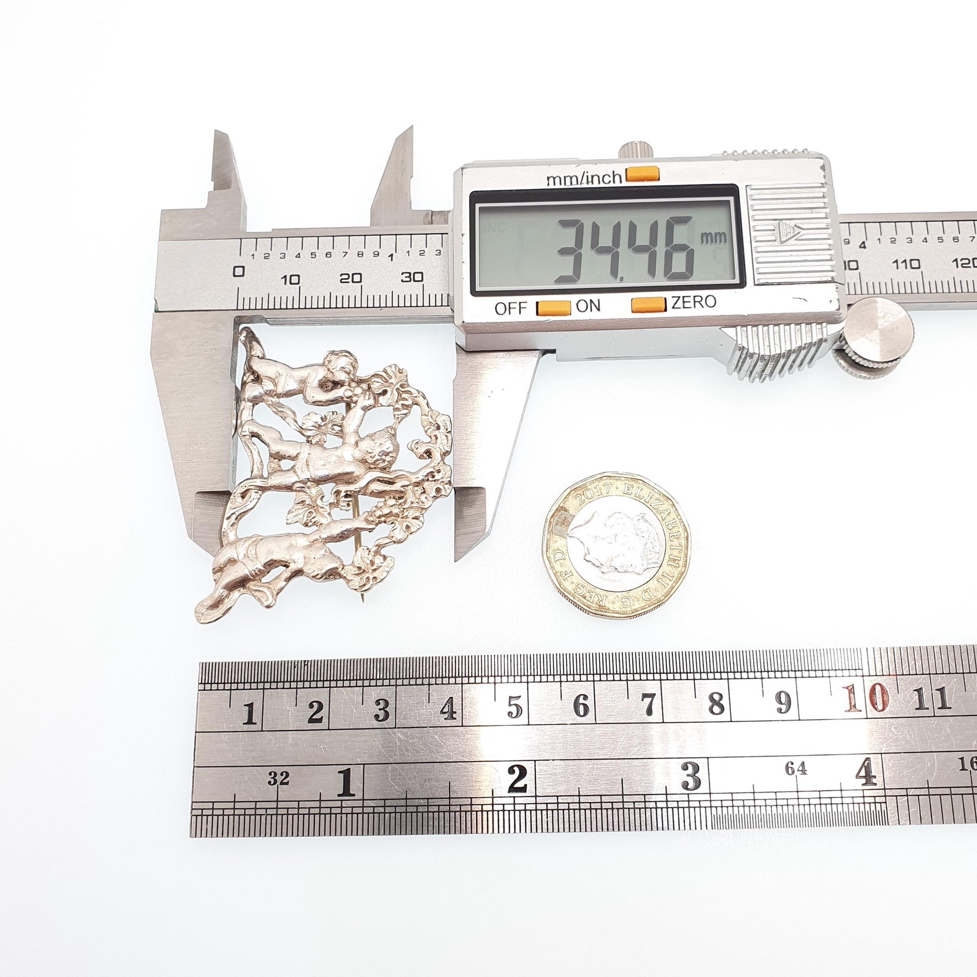 DESCRIPTION: A beautiful antique Victorian solid silver Cherub brooch, in an art nouveau style. It weighs approx. 10.95g and the size dimensions are in the later photos. As to be expected with its age, it isn't stamped/hallmarked, it tests for high grade silver (800+).