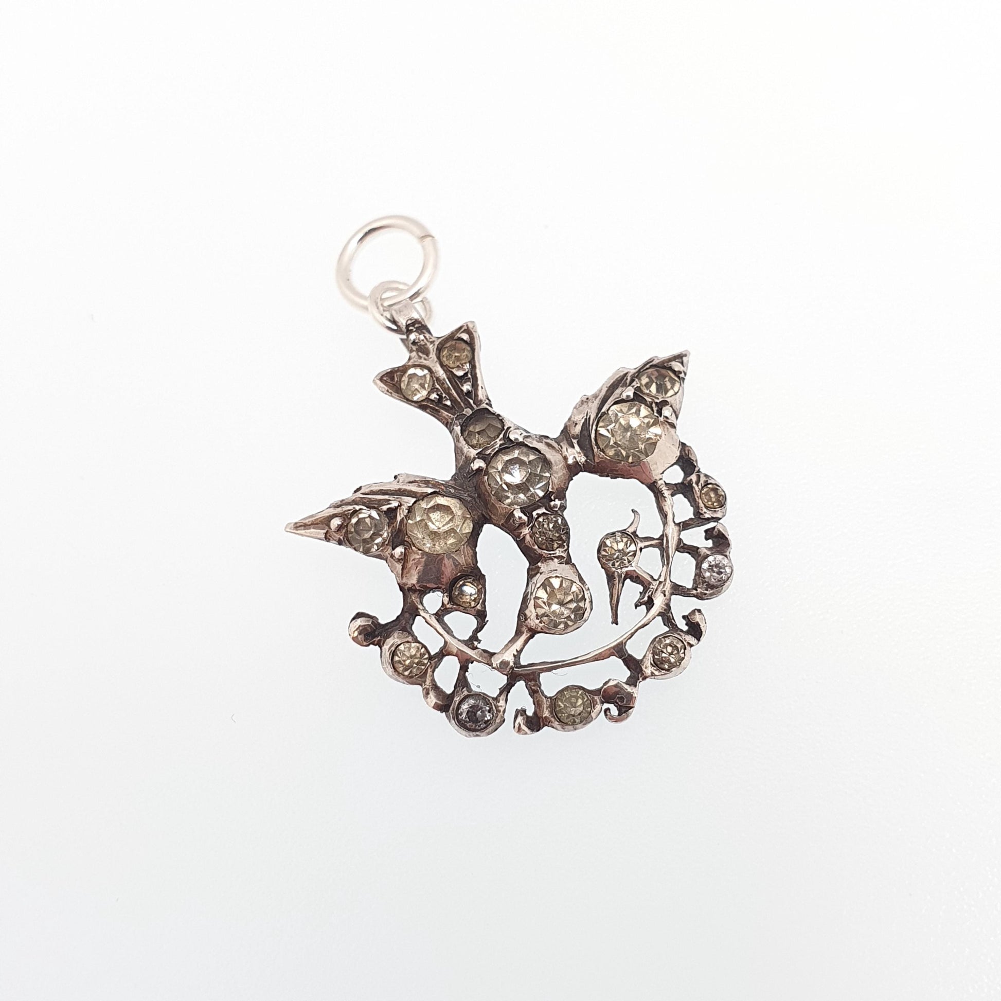 Antique Solid Silver Diamond Paste Bird Pendant Georgian Necklace Brooch Pin Songbird Sweetheart Swallow Vintage Womens Jewellery Jewelry