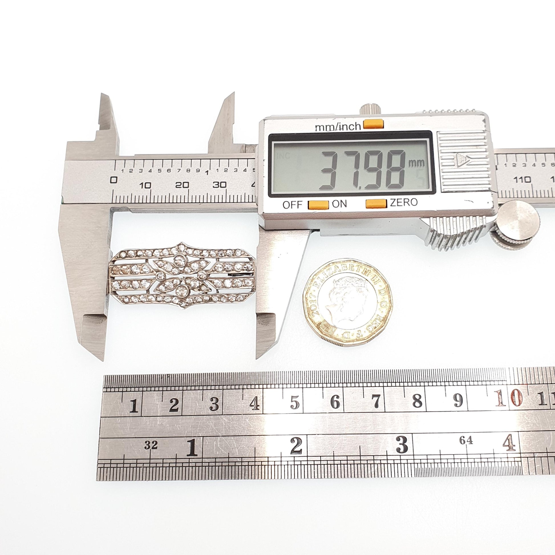 Antique Solid Silver Diamond Paste Brooch Genuine Art Deco 1920s Sparkly Flapper Girl Vintage Womens Jewelry Jewellery