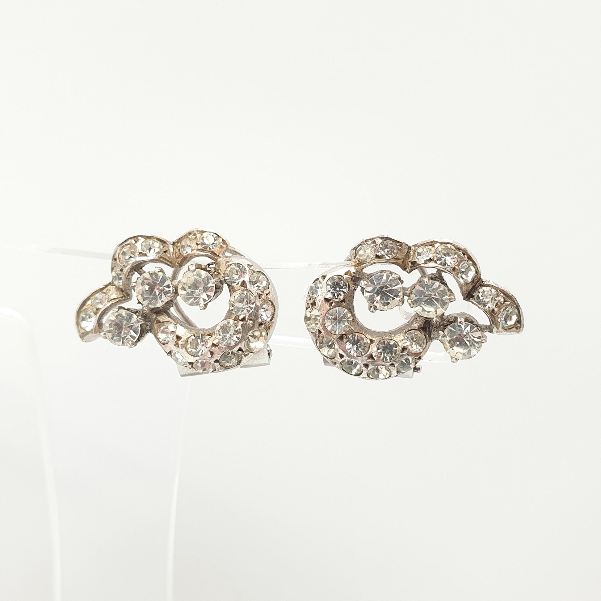 Antique Solid Silver Diamond Paste Earrings Art Deco Clip On French 1920s Vintage Sparkly Flapper Jewelry Jewellery