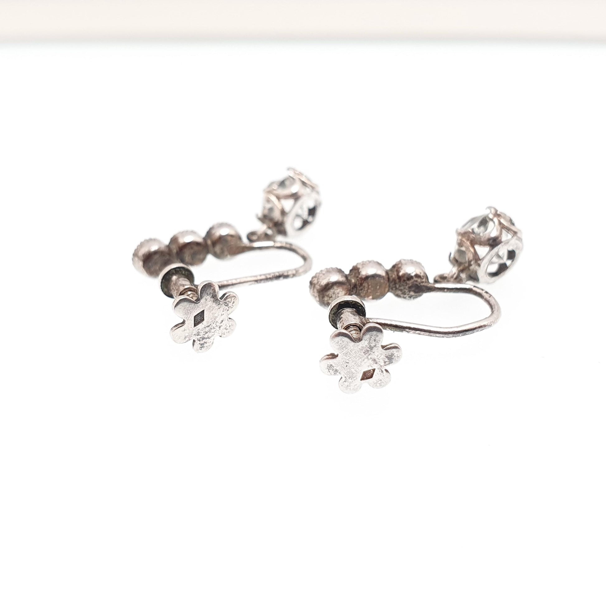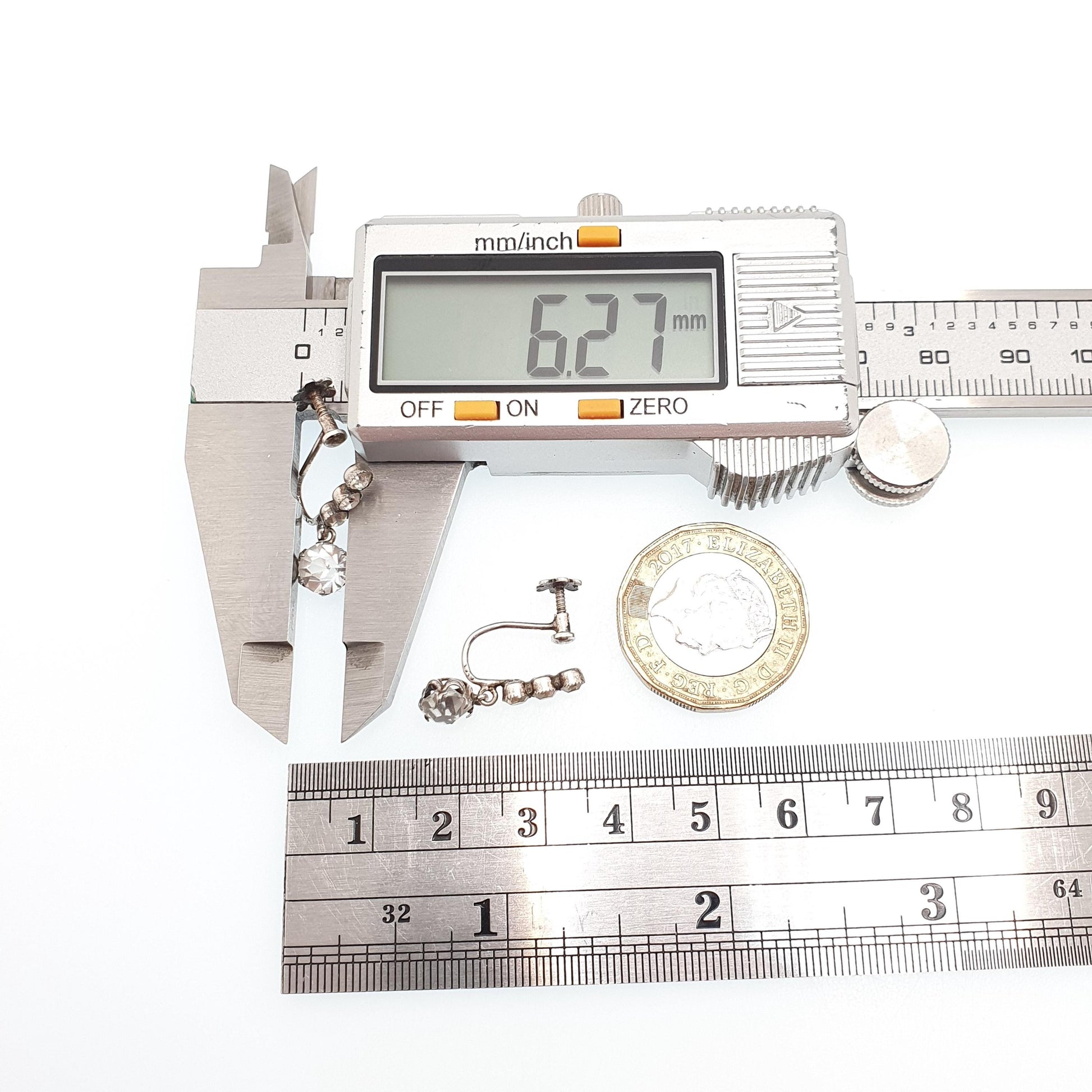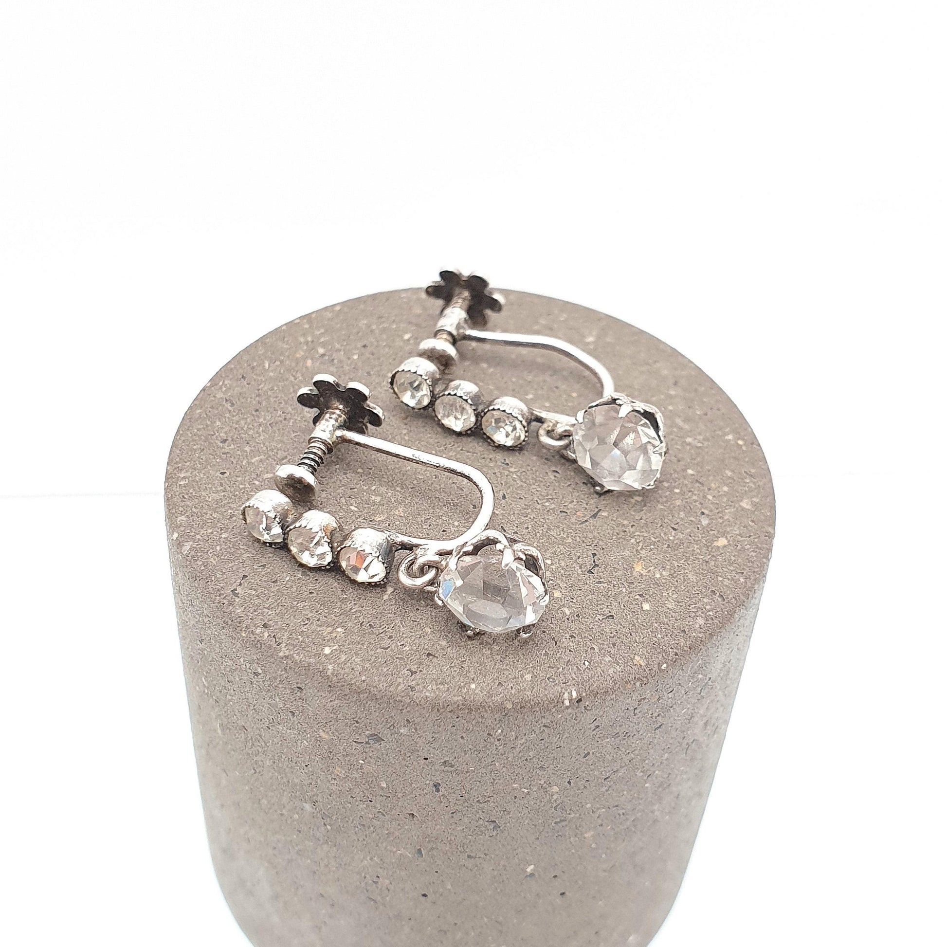 Antique Solid Silver Diamond Paste Earrings Art Deco Hanging Drop Round Cut Screw Back Sparkly White Vintage Jewelry Jewellery