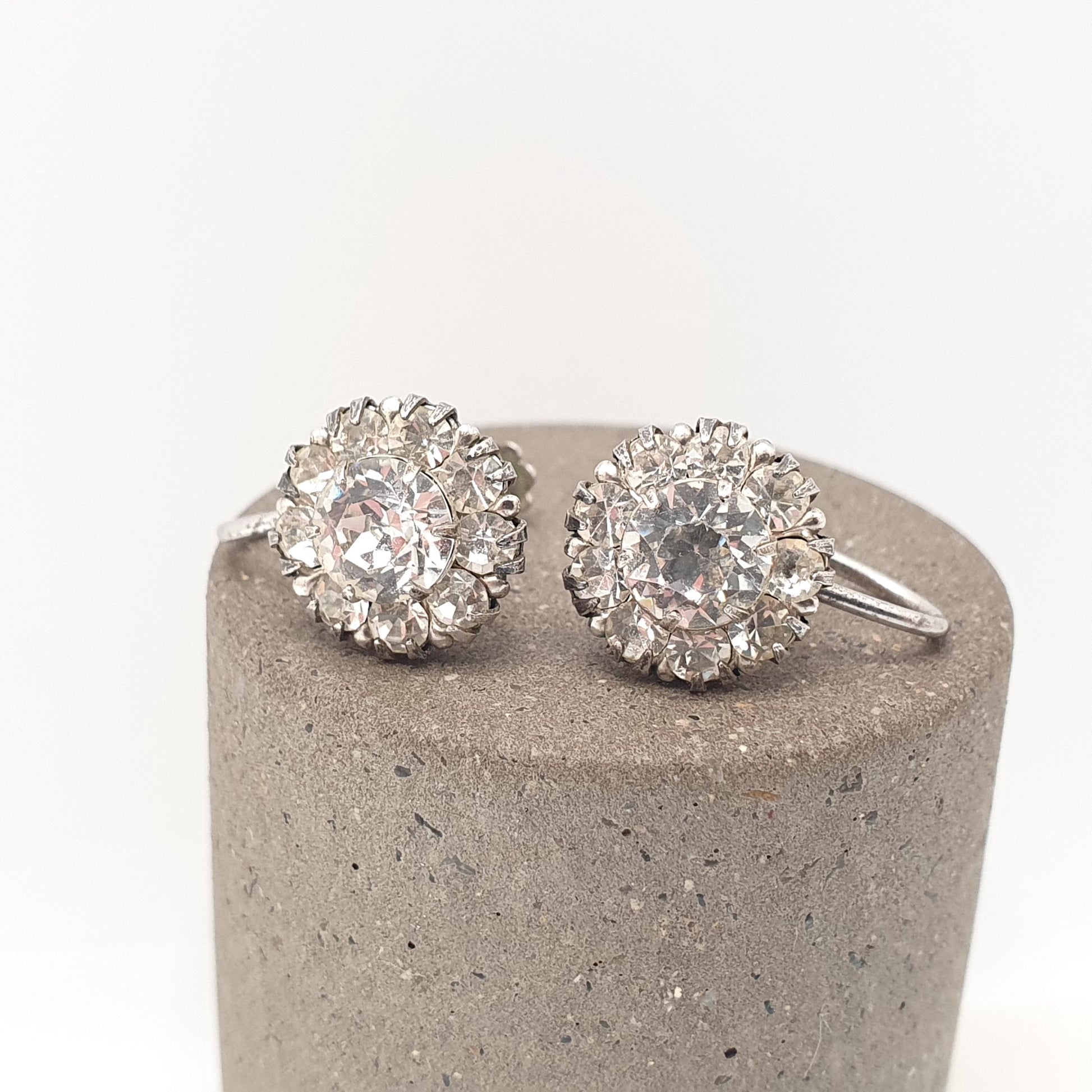 Antique Solid Silver Diamond Paste Earrings Cluster Screw Back Sparkly Foiled Glass Fine Edwardian Vintage Womens Jewelry Jewellery