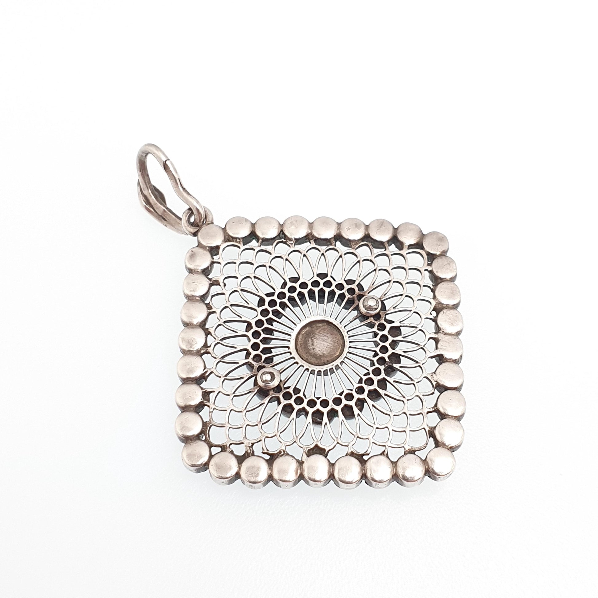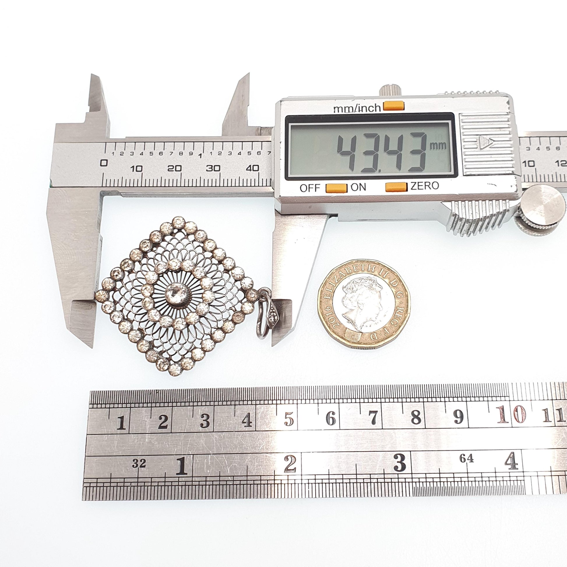 Antique Solid Silver Diamond Paste Pendant Dreamcatcher Web Spiral Necklace Large Square Art Deco Sparkly Vintage Womens Jewellery Jewelry