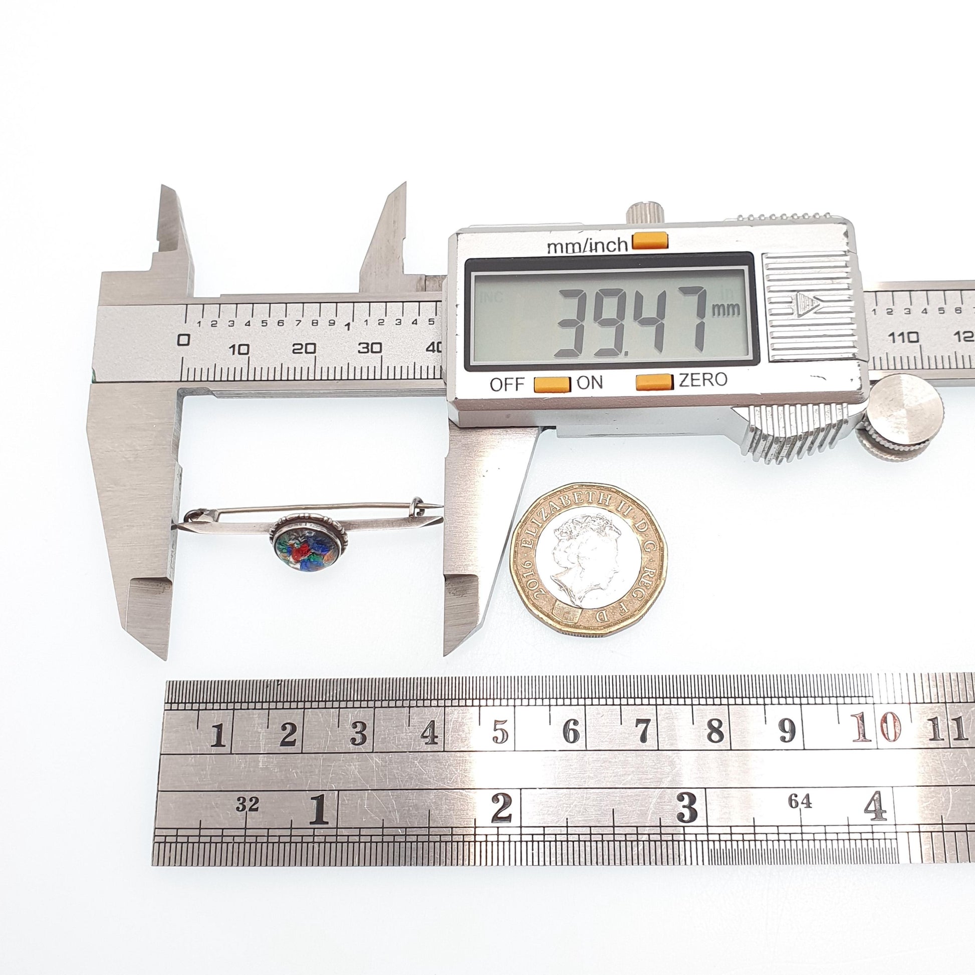 Antique Solid Silver Foiled Opal Glass Brooch Multi Coloured Bar Pin Tutti Fruitti Ladies Round Circle Womens Vintage Jewelry Jewellery