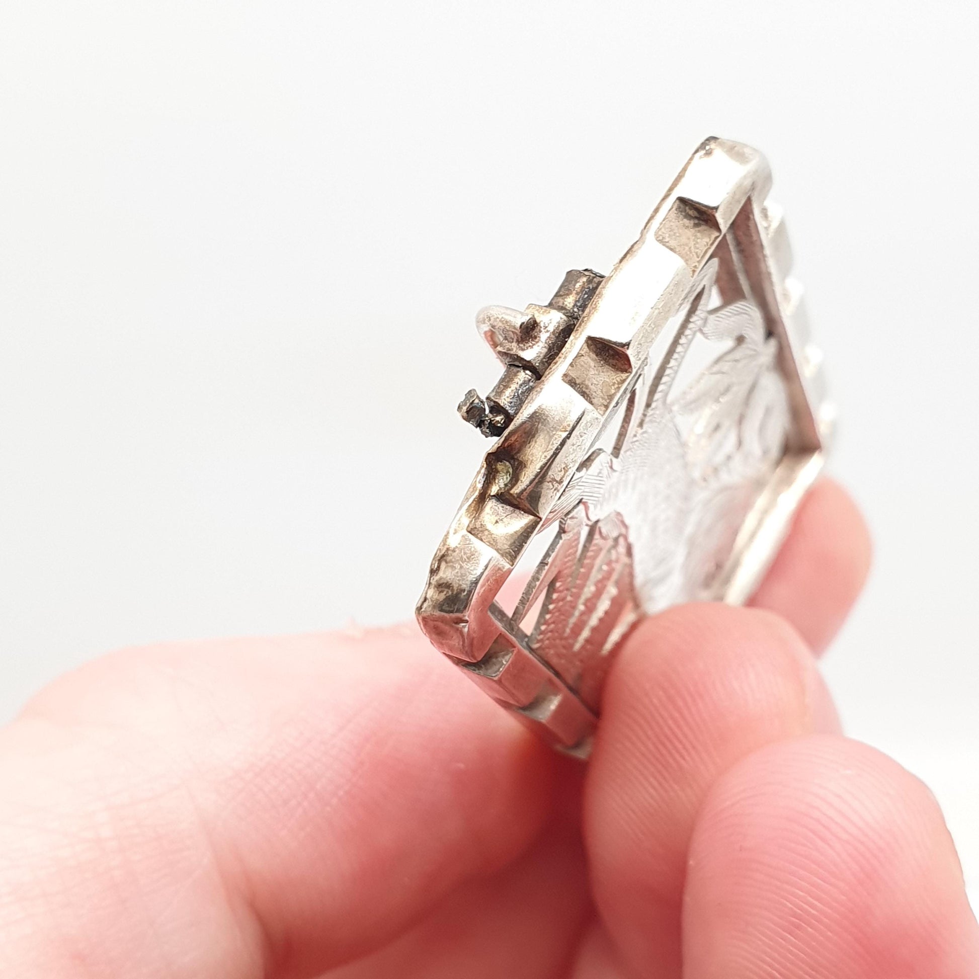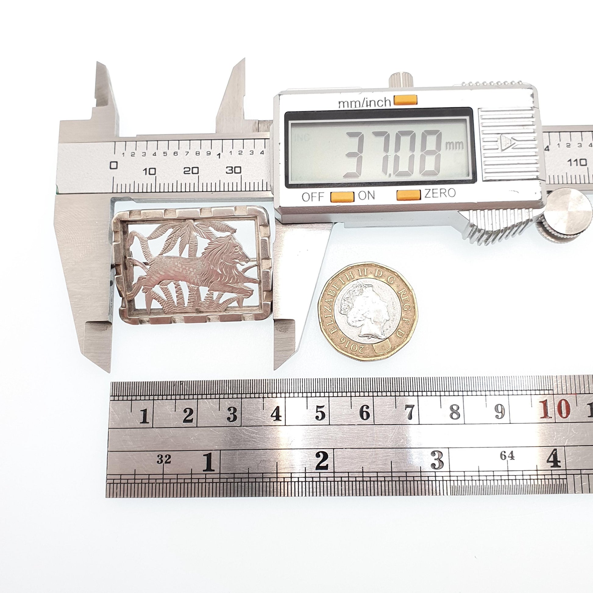 DESCRIPTION: A unusual antique Victorian solid silver lion brooch. The item has been hand etched which is a nice touch. As to be expected with its age it isn't stamped/hallmarked, it tests for high grade silver (800+). It weighs approx. 5.40g and the size dimensions are in the later photos. The item has a dent in its side and rear, near the hinge (see pictures).