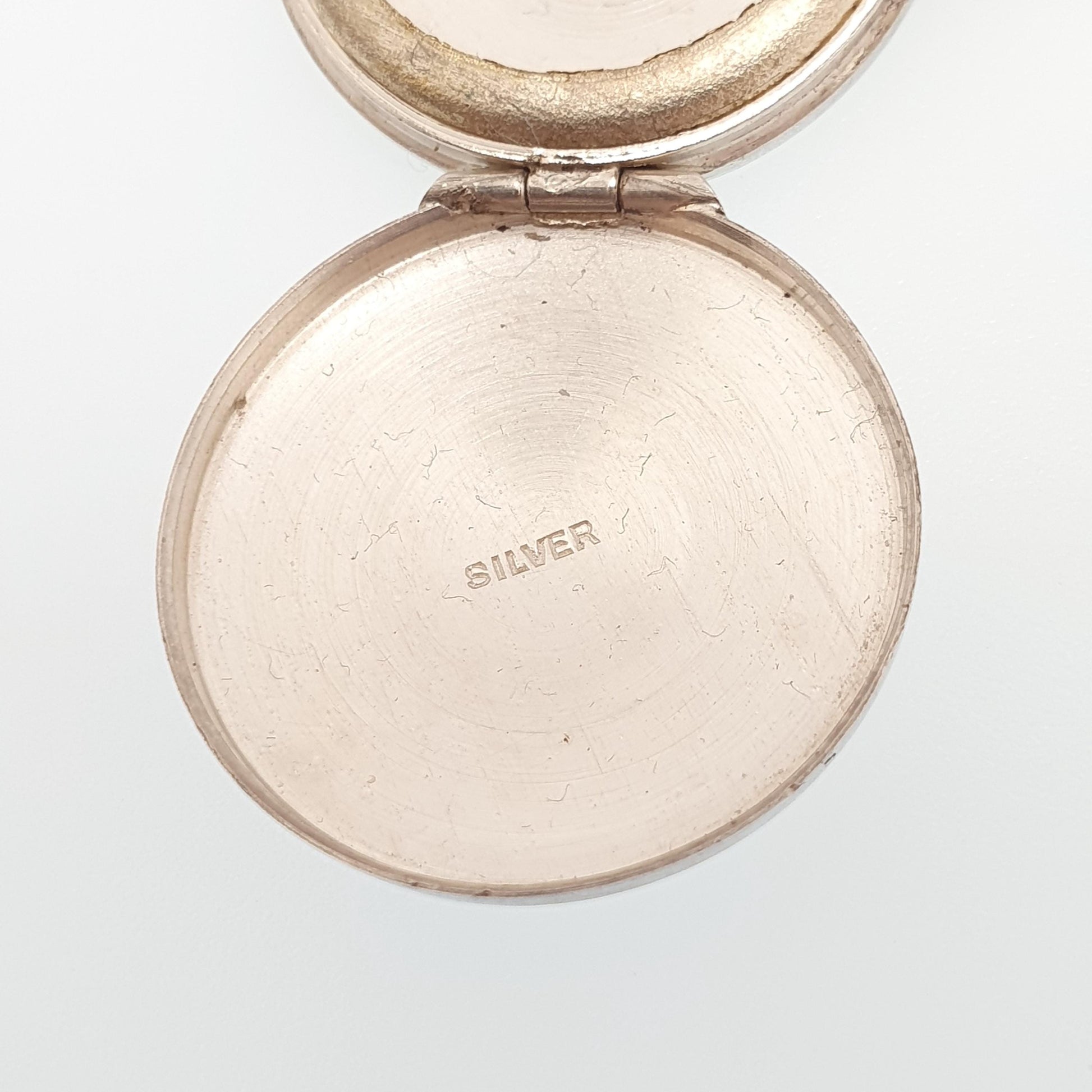 Antique Solid Silver Locket Art Deco Geometric Pattern Round Circle Necklace Pendant Rare Fine 1920s Picture Photo Jewelry Vintage Jewellery
