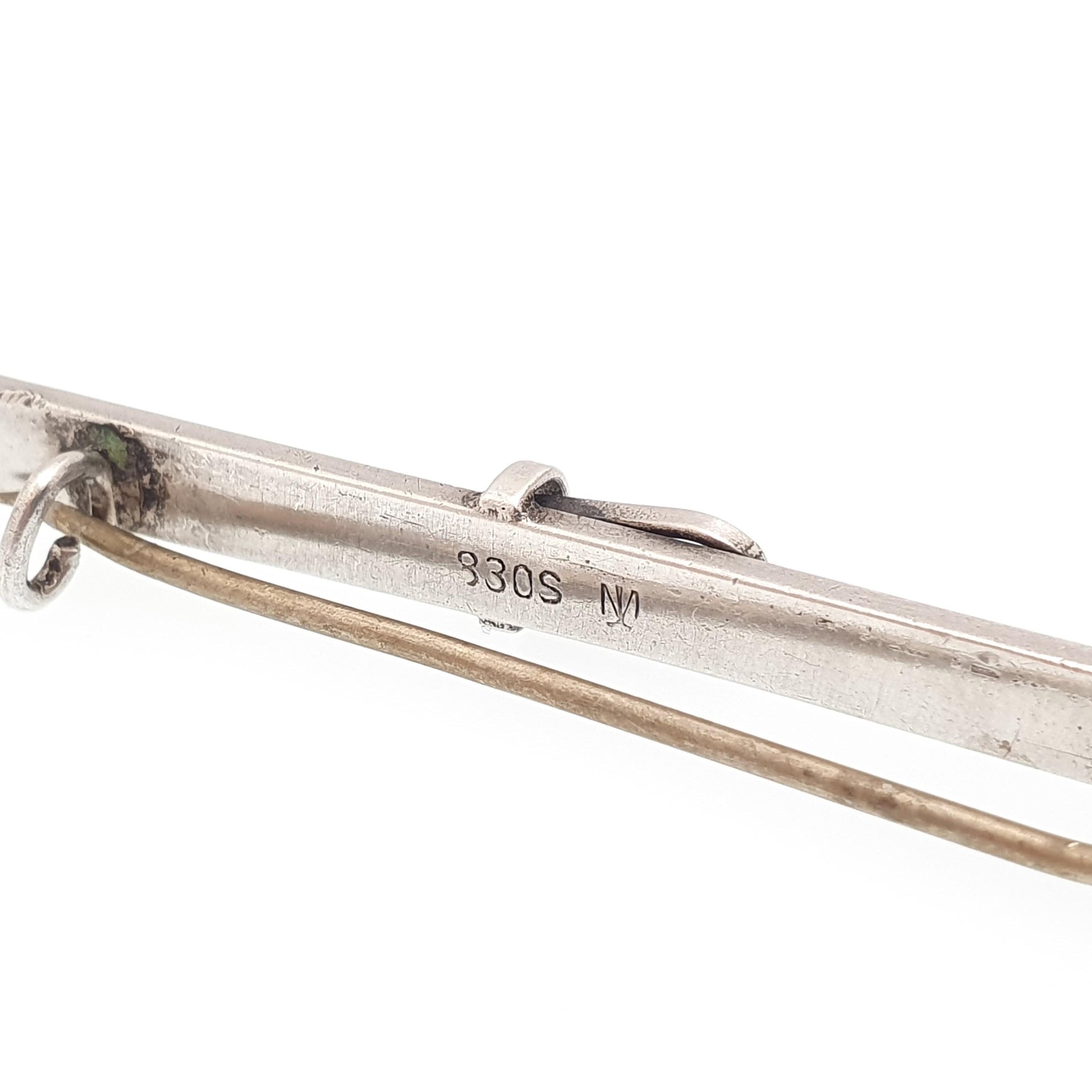DESCRIPTION: A rare antique solid silver Marius Hammer ski brooch, with the Norwegian village "Finse" engraved on the front. The brooch is stamped "830S" for silver and bears Marius Hammer's maker mark. The item weighs approx. 3.40g and the size dimensions are in the later photos.