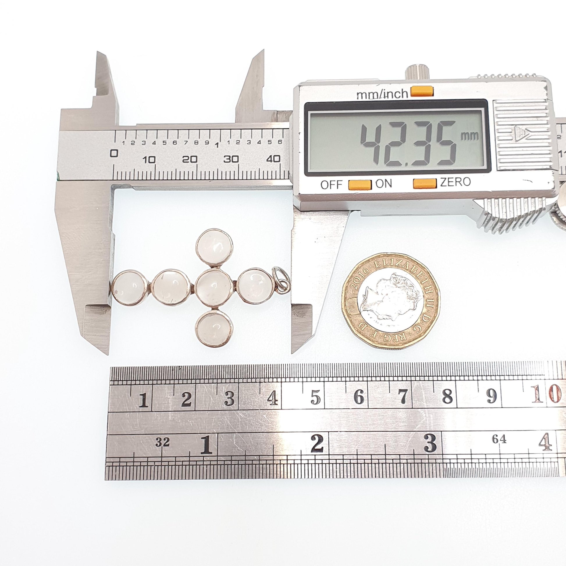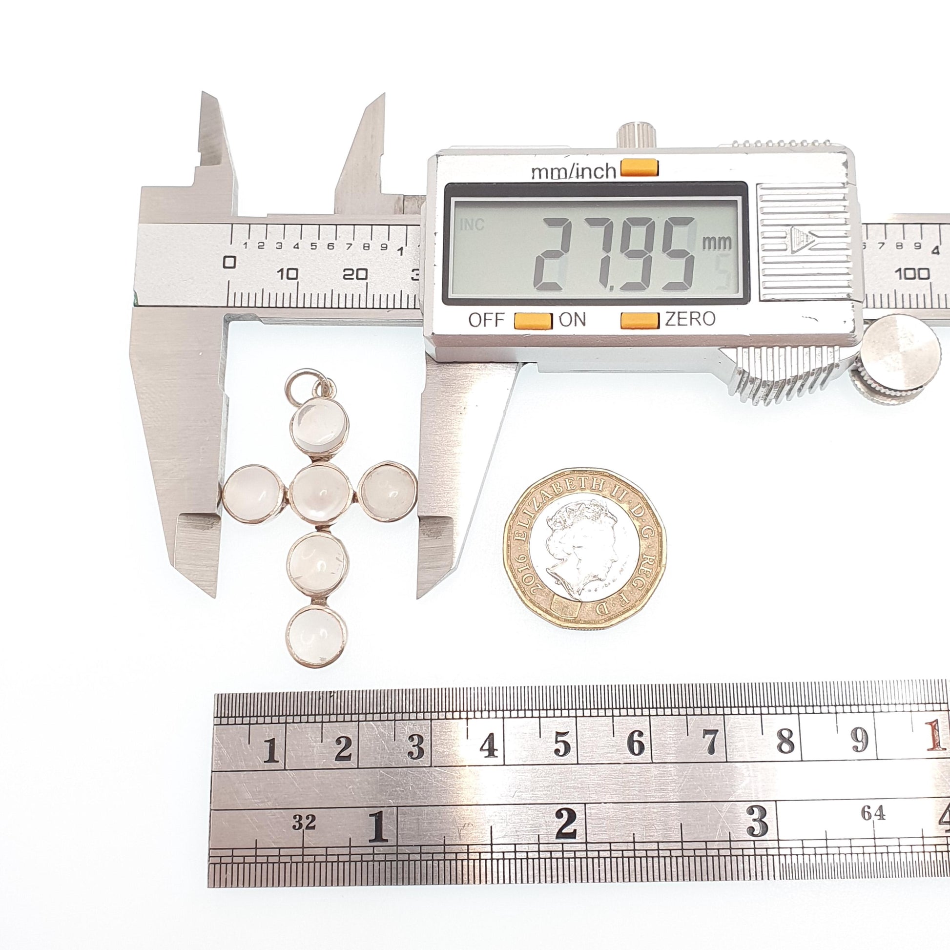 DESCRIPTION: A beautiful antique Victorian solid silver moonstone cross pendant necklace. It weighs approx. 5.43g and the size dimensions are in the later photos. As to be expected with its age, it isn't stamped/hallmarked, it tests for high grade silver (800+).