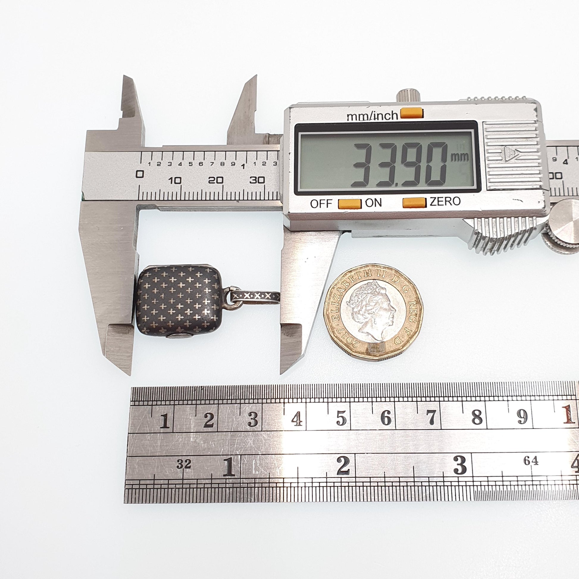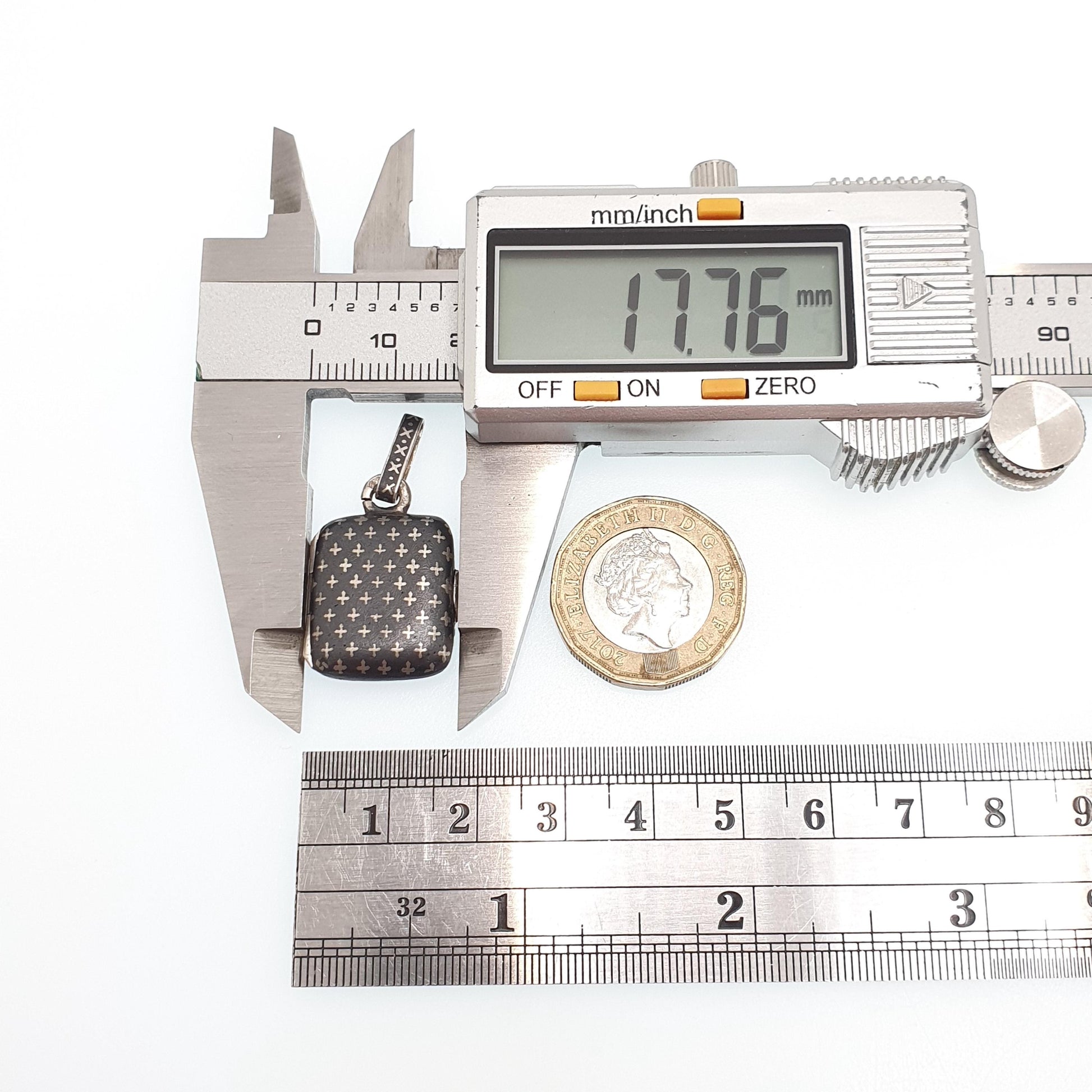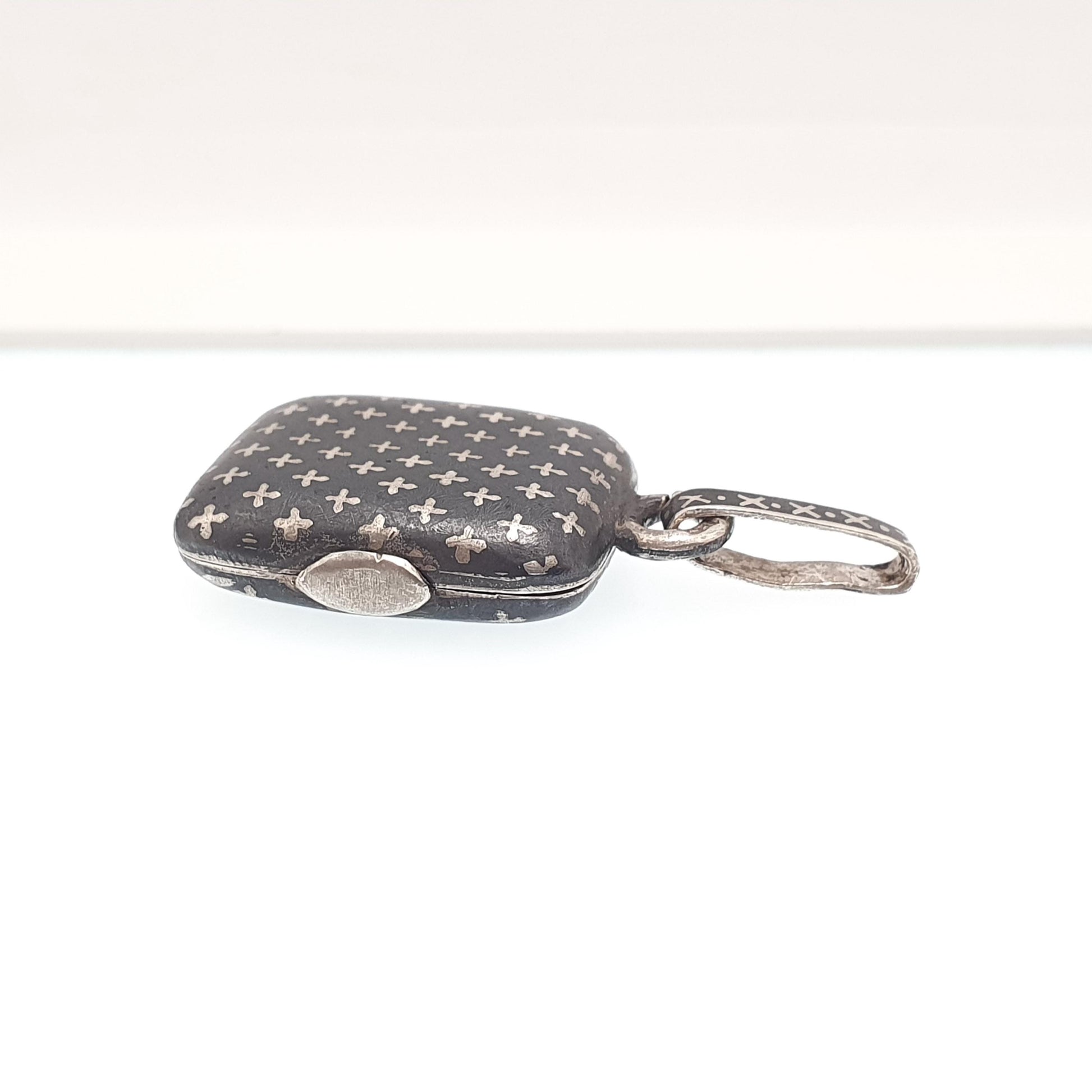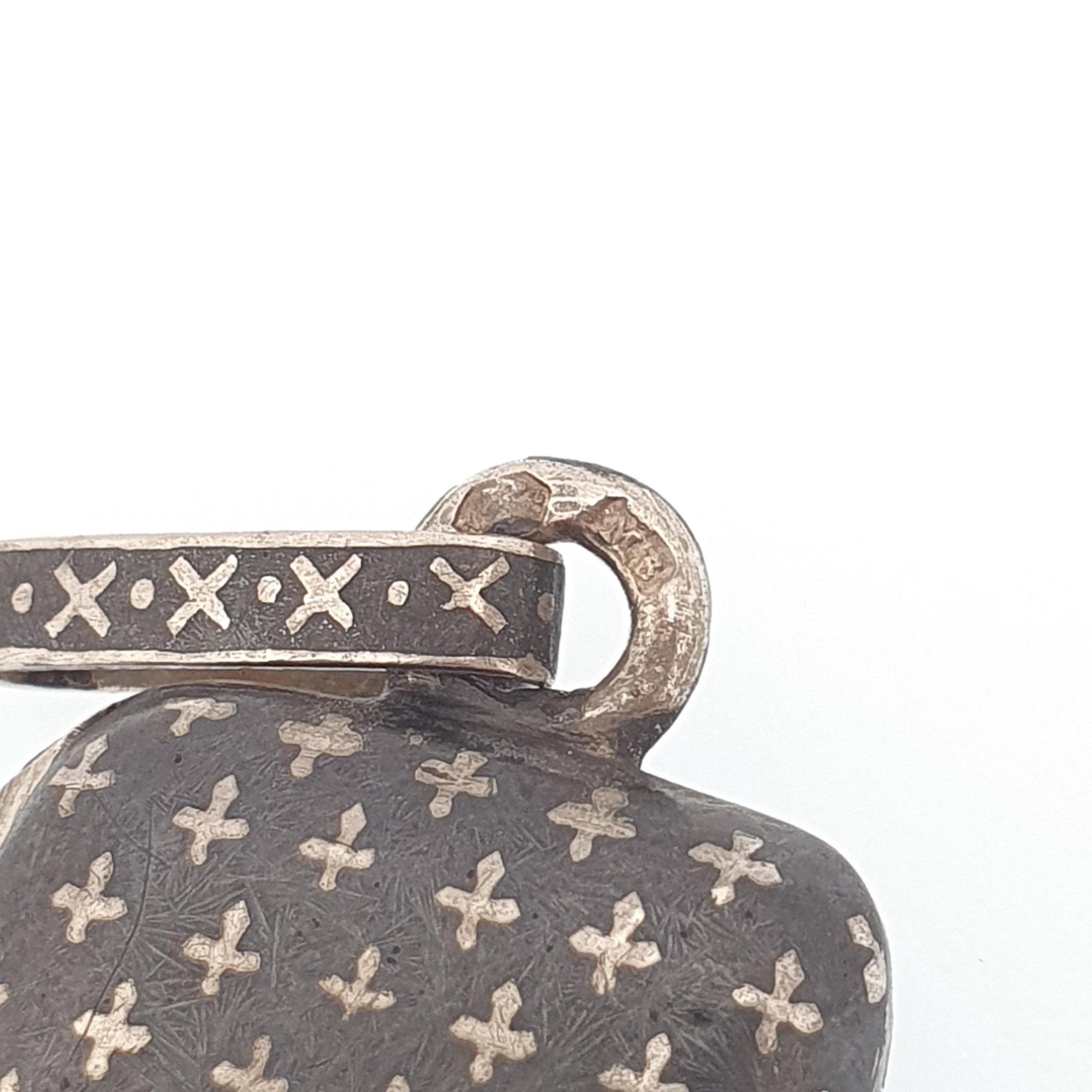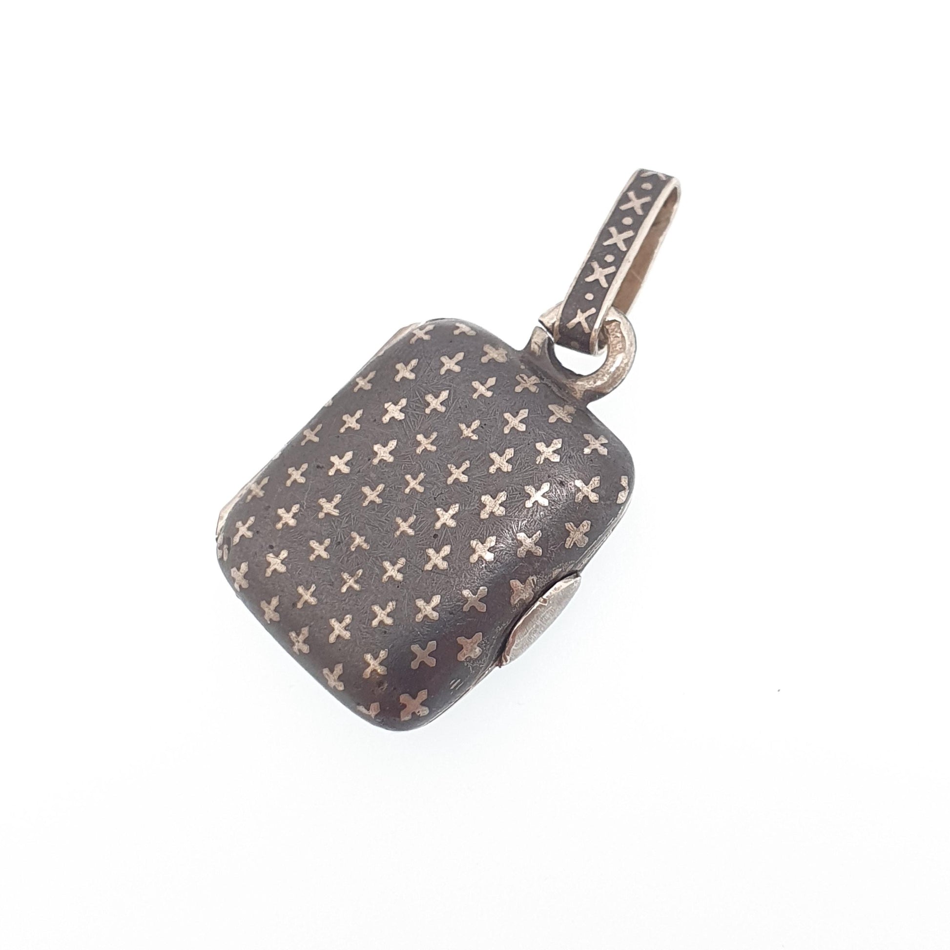 Antique Solid Silver Niello Locket Victorian Rectangular Austro Hungarian Necklace Pendant Cross Pattern Vintage Jewelry Jewellery