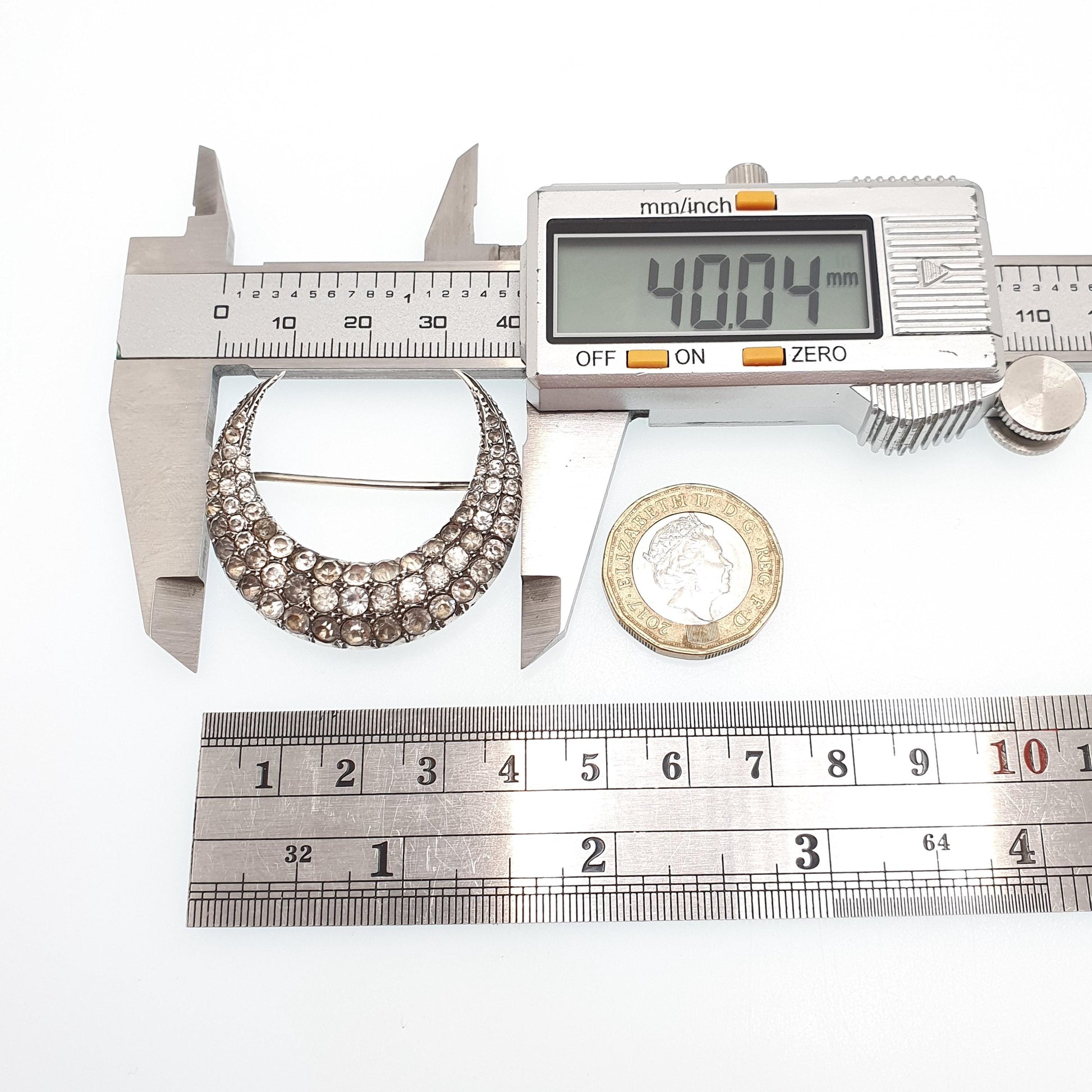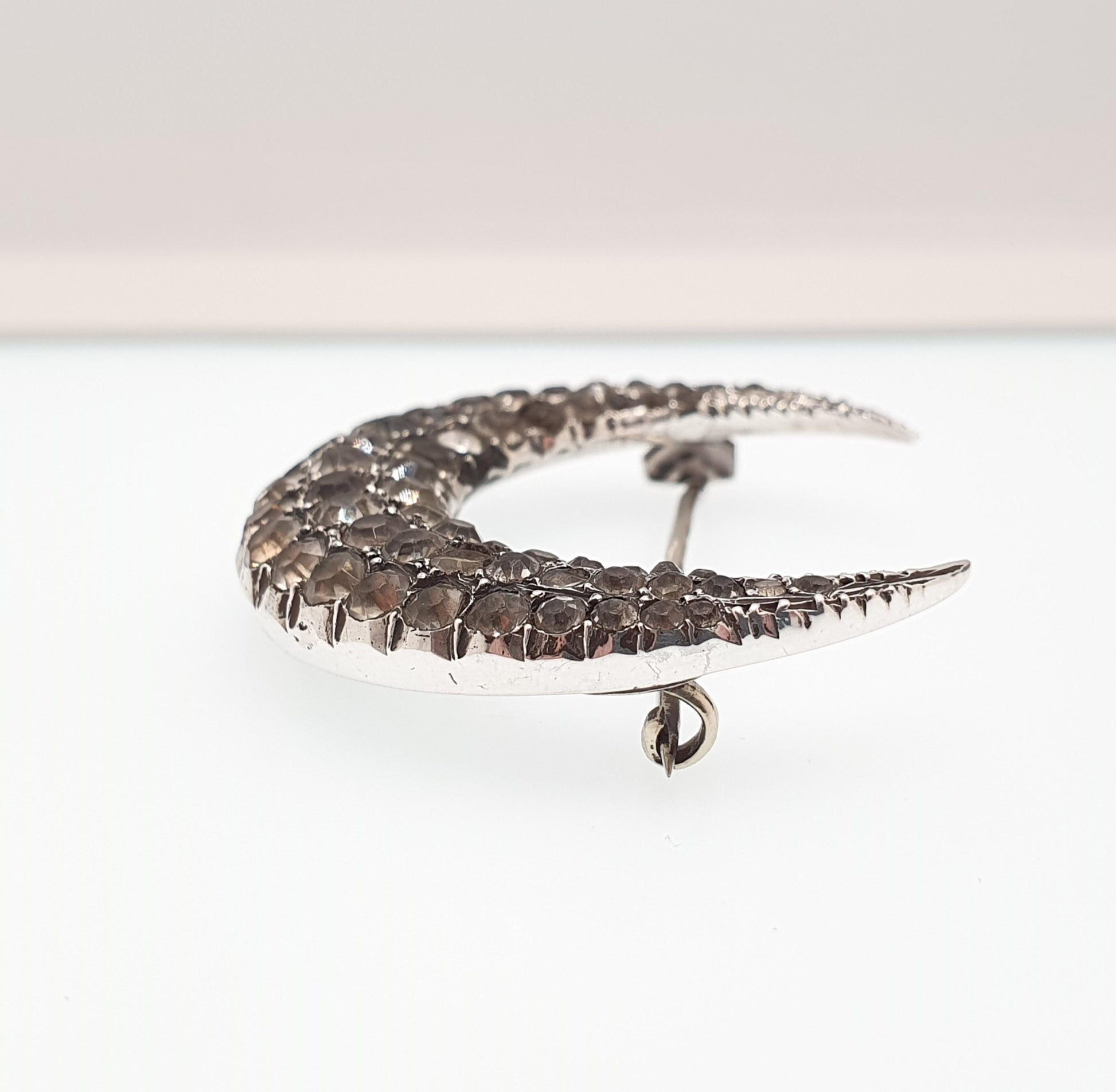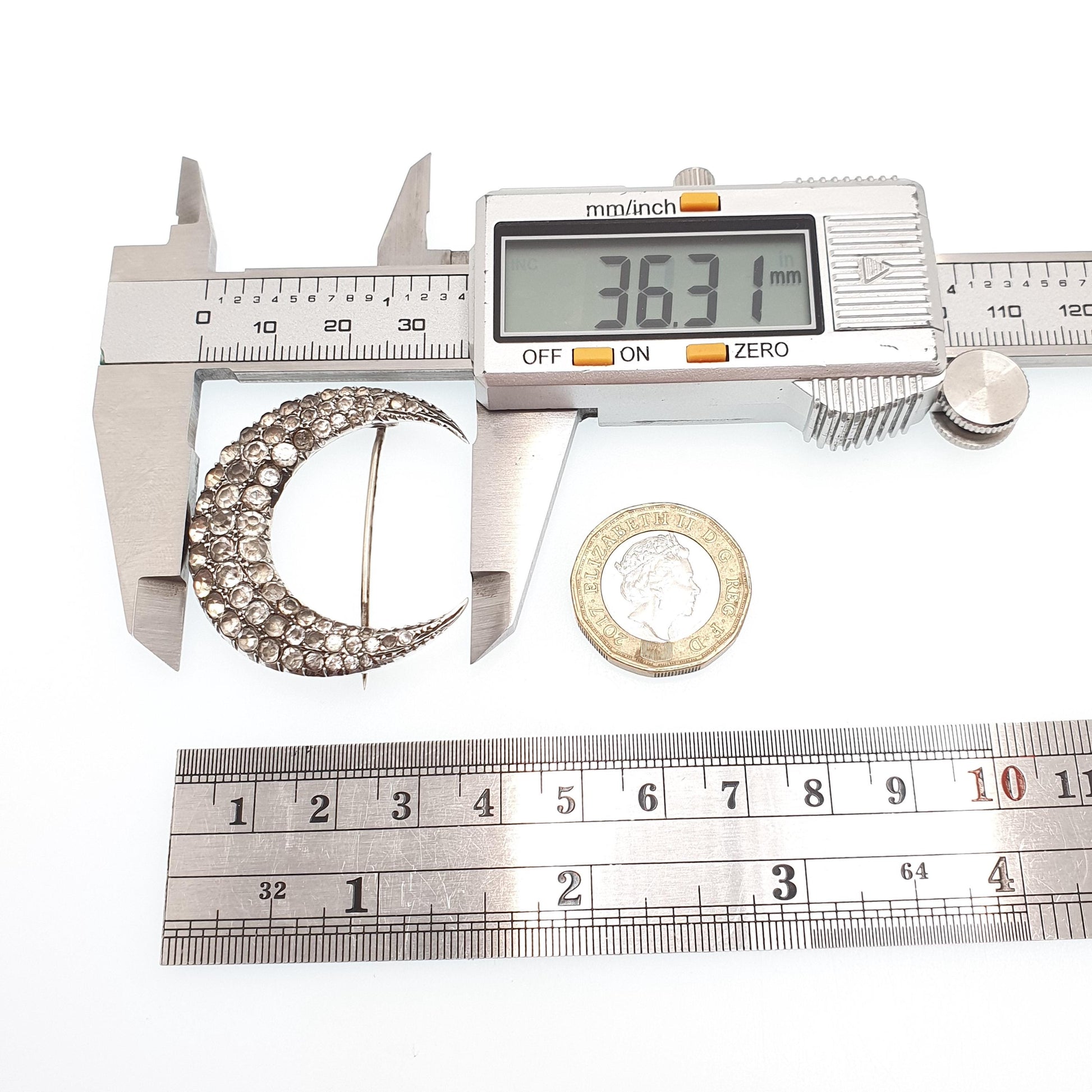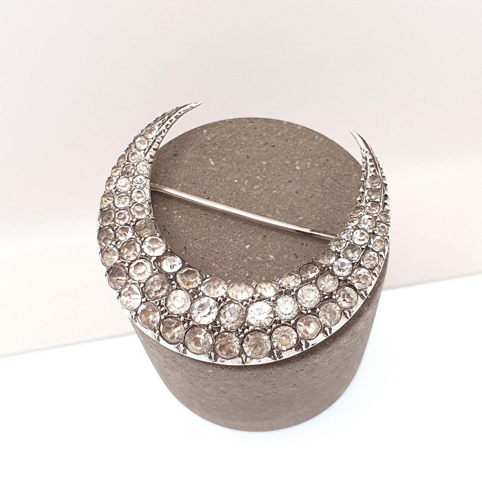 Antique Solid Silver Paste Crescent Moon Brooch Large Big Victorian Night Sparkly Celestial Jewelry Jewellery Vintage