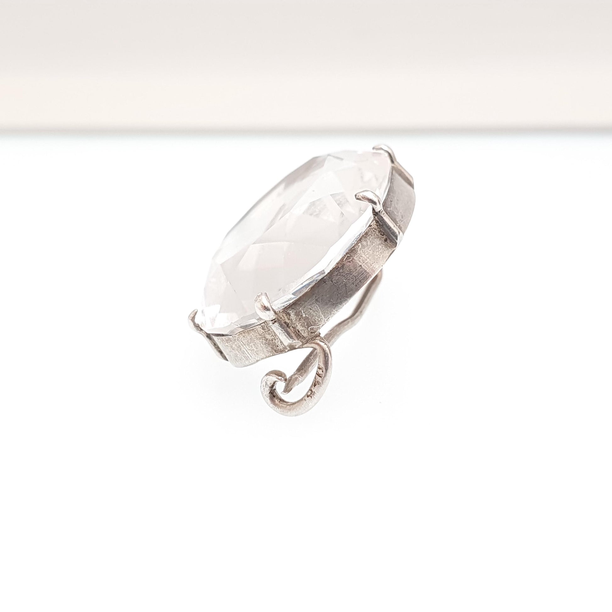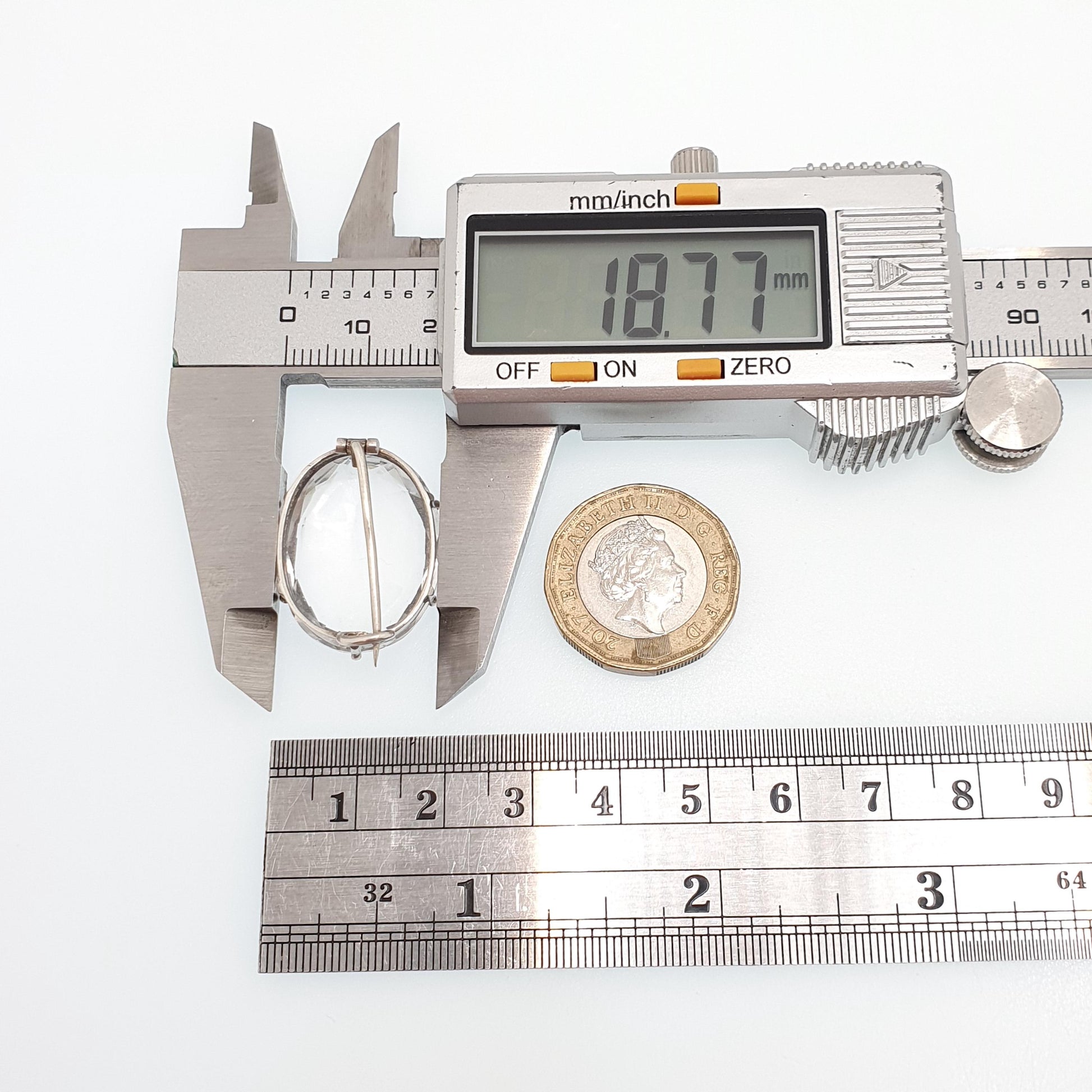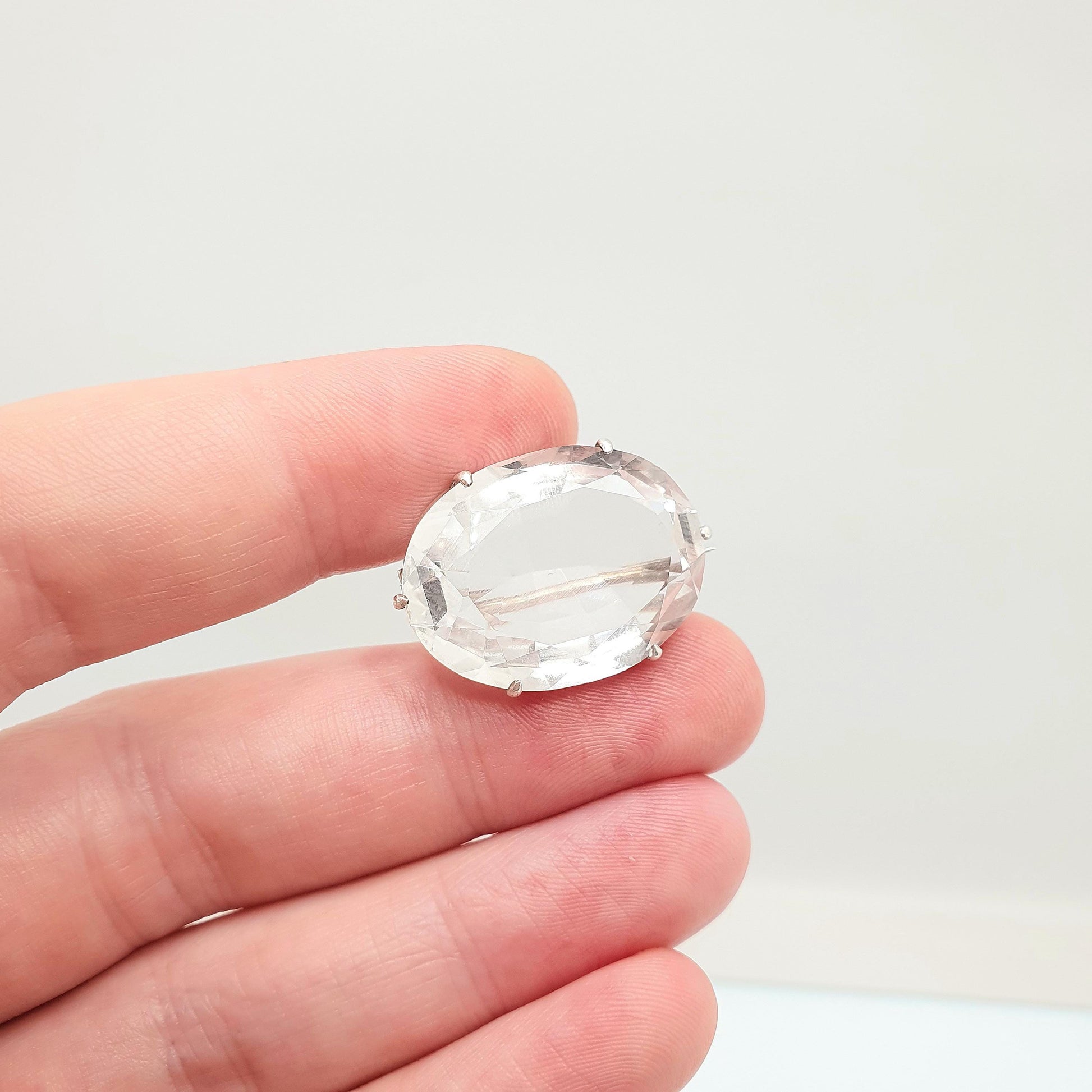Antique Solid Silver Rock Crystal Brooch Art Deco White Quartz Large Oval Cut Gemstone Clear Vintage Big Womens Jewelry Jewellery