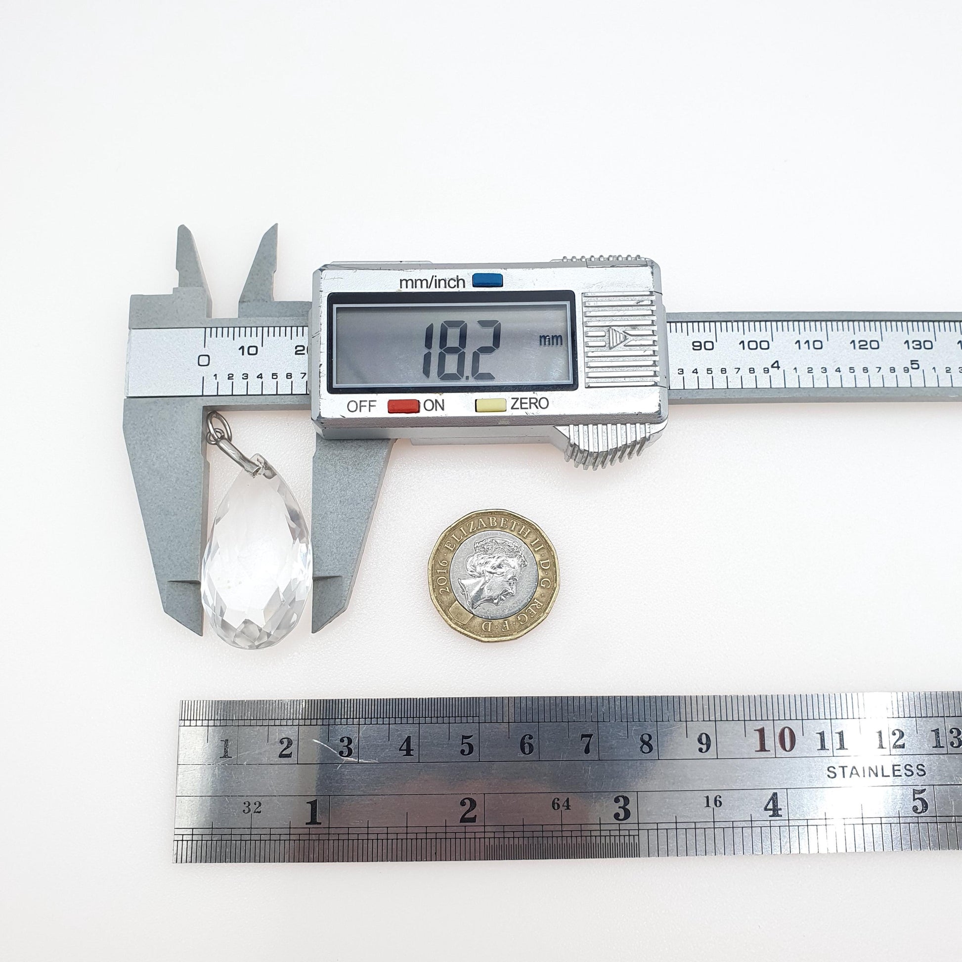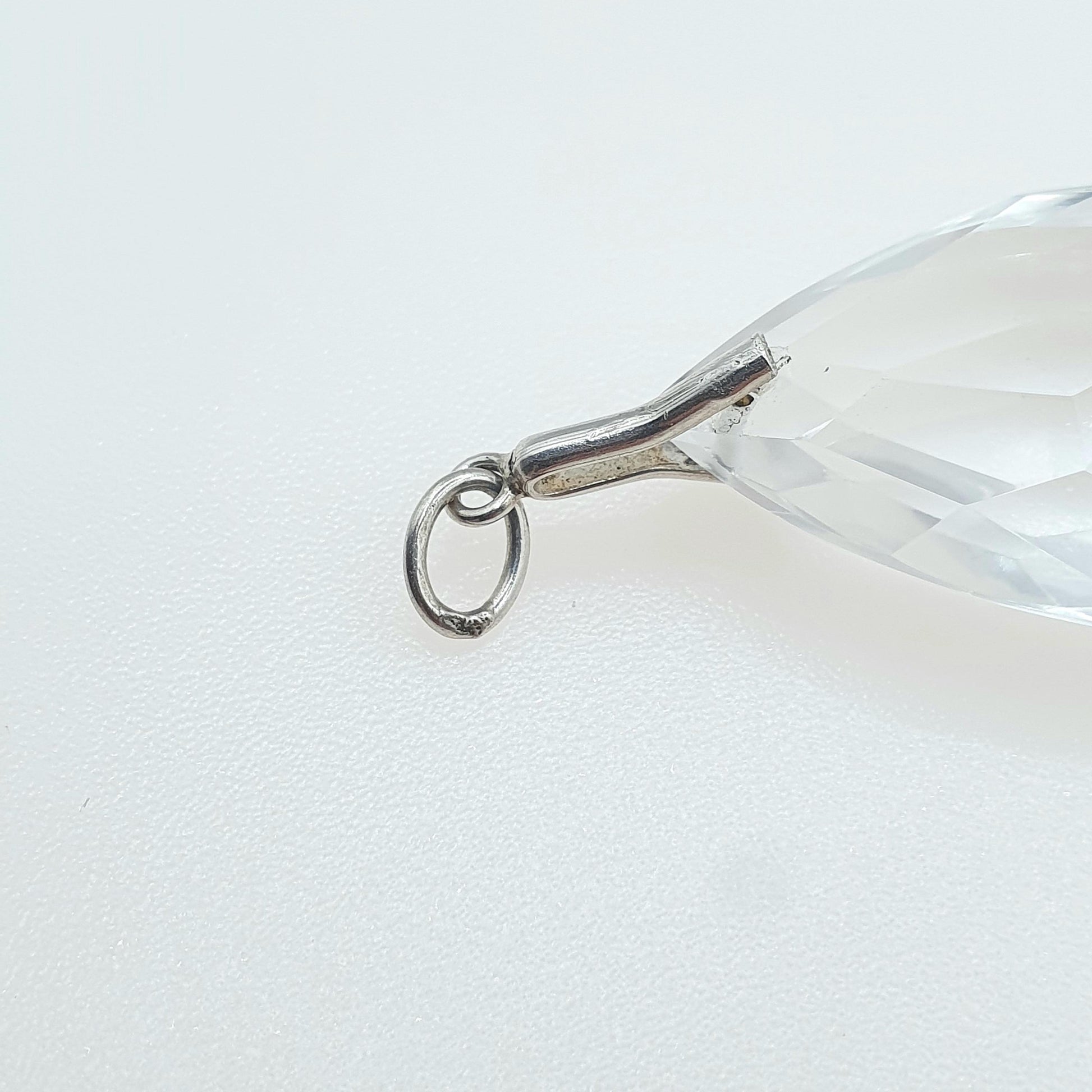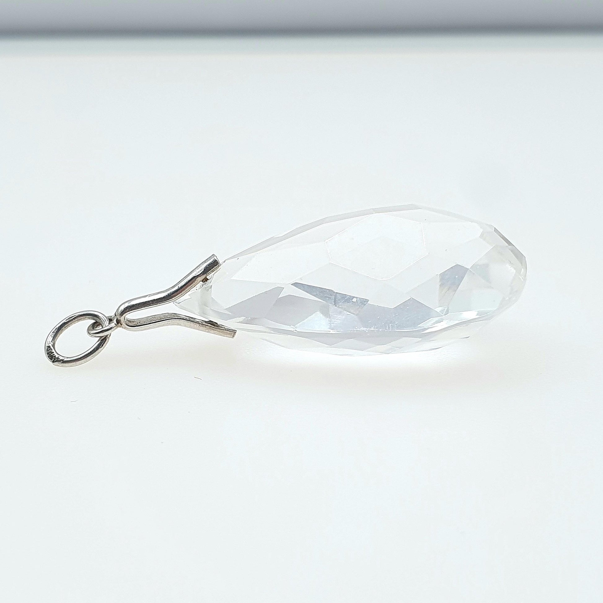 Antique Solid Silver Rock Crystal Pendant Faceted Pear Gemstone Quartz Womens Necklace Jewelry Jewellery