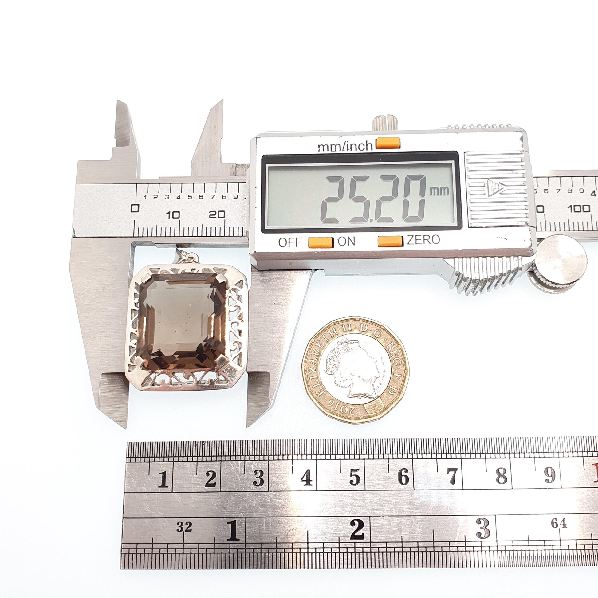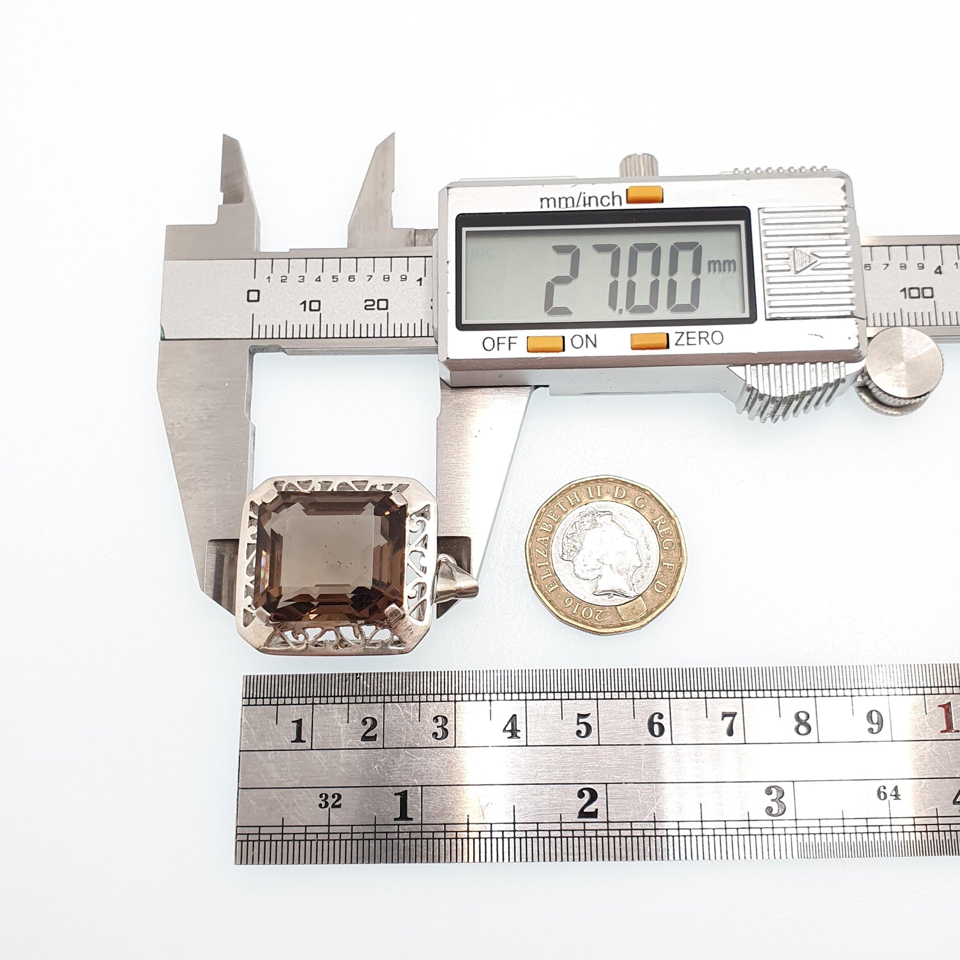 Antique Solid Silver Smoky Quartz Pendant Necklace Large Big Natural Gemstone Art Deco 1920s Rectangular Genuine Womens Jewelry Jewellery