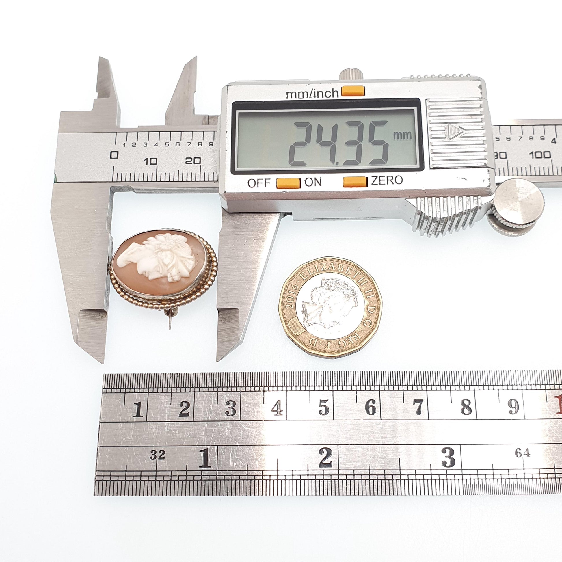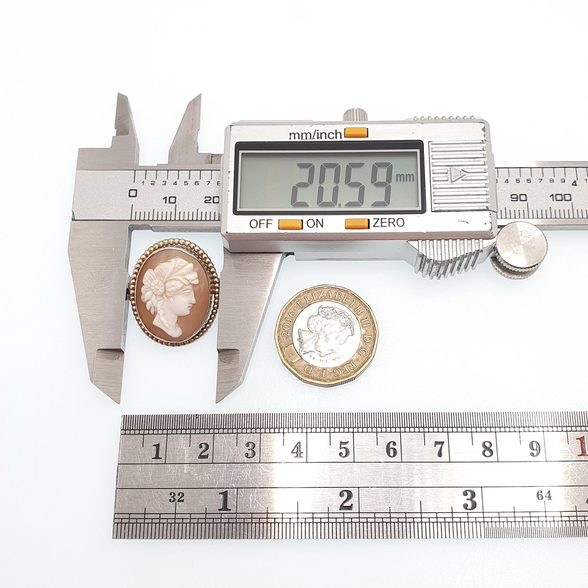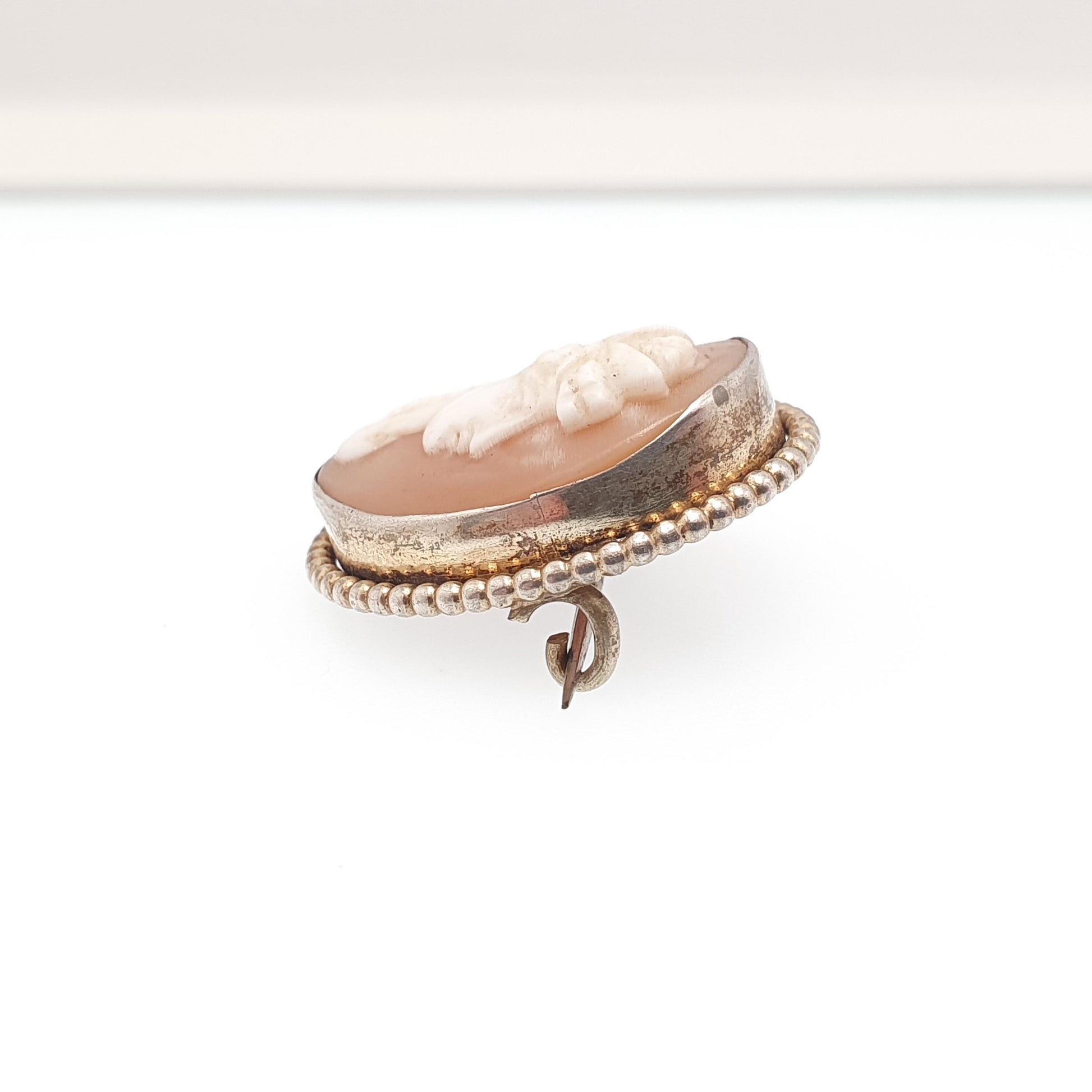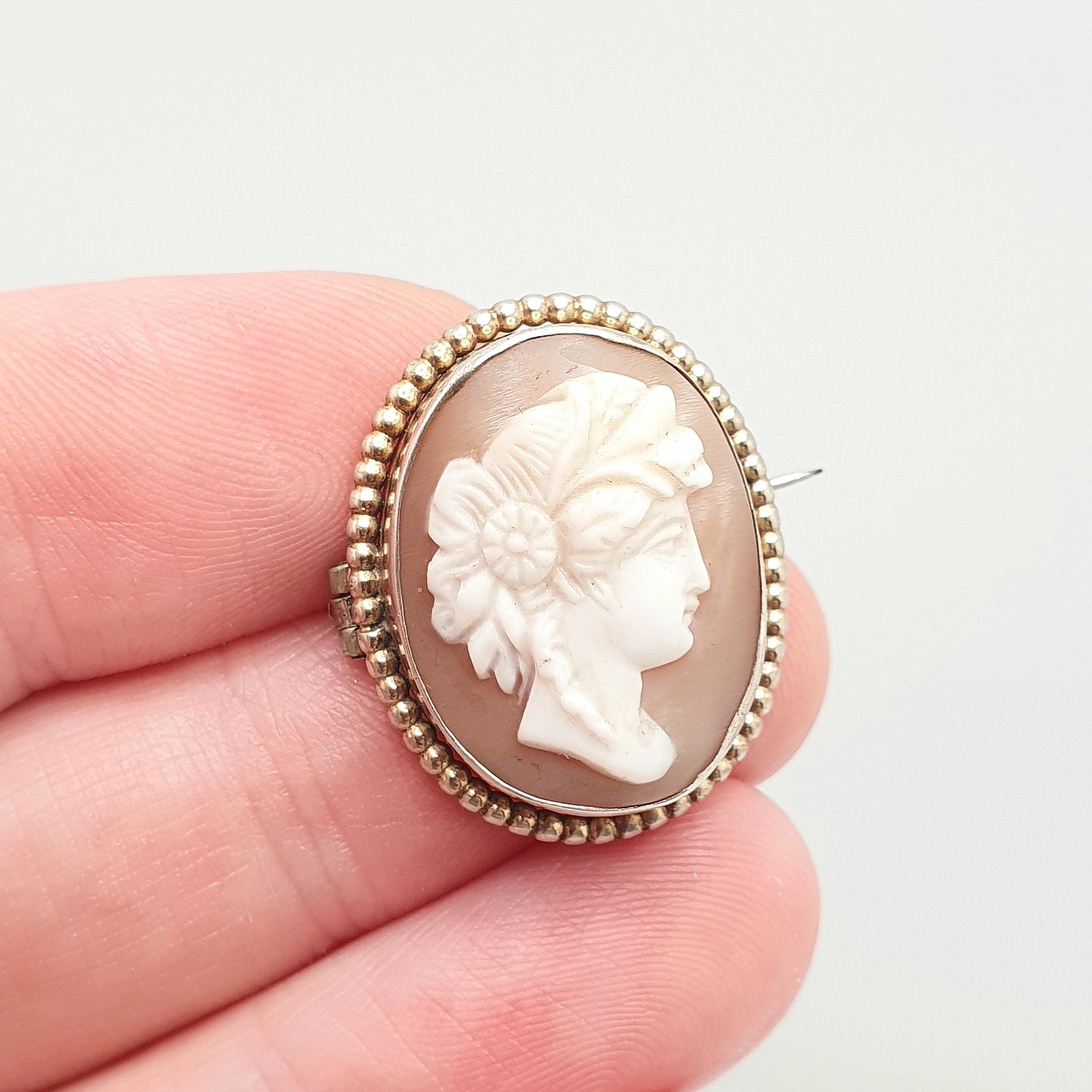 Antique Solid Silver Victorian Cameo Brooch Gold Vermeil Rope Border Oval Hand Carved Shell Italian European Vintage Jewelry Jewellery