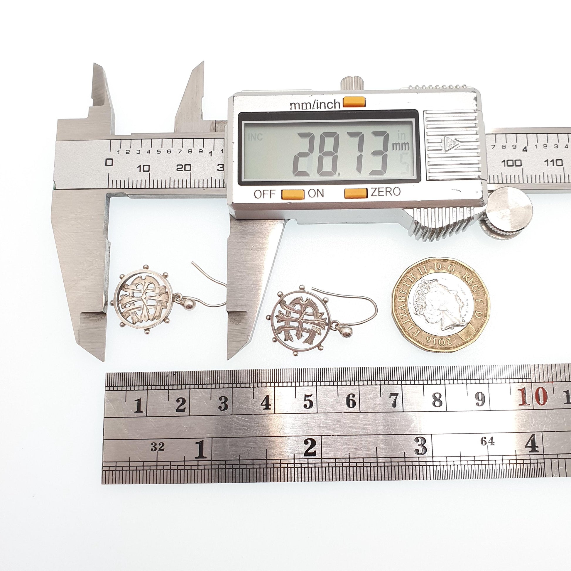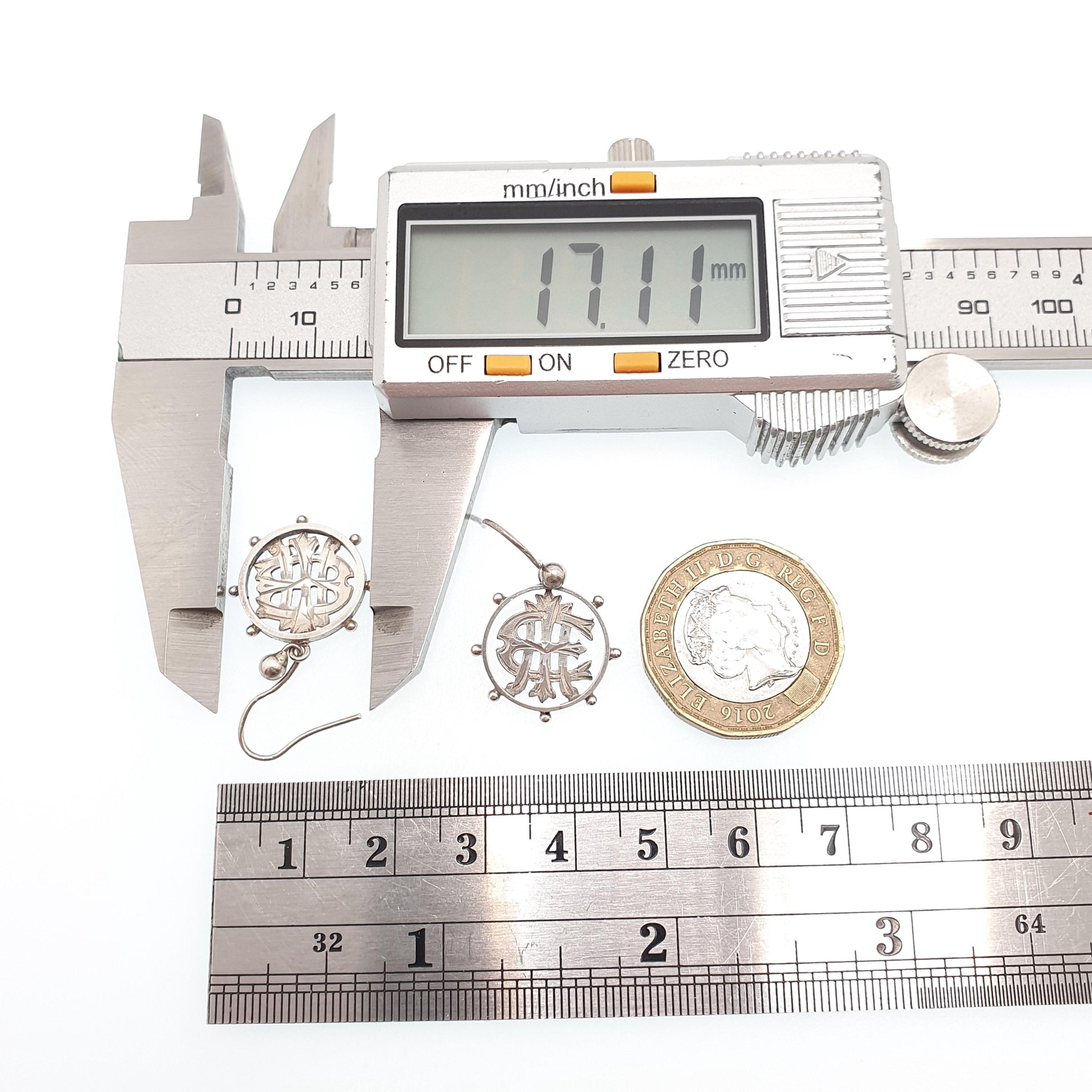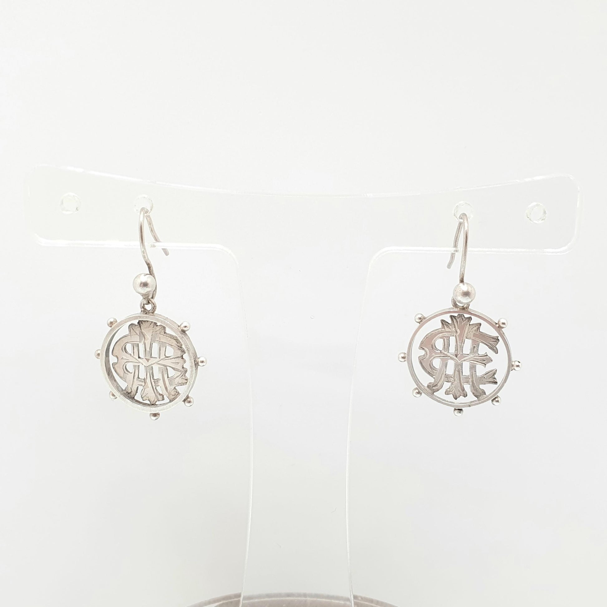 Antique Solid Silver Victorian Earrings Monogram Wheel Etruscan Hook Dangle Aesthetic Drop Vintage Jewelry Jewellery
