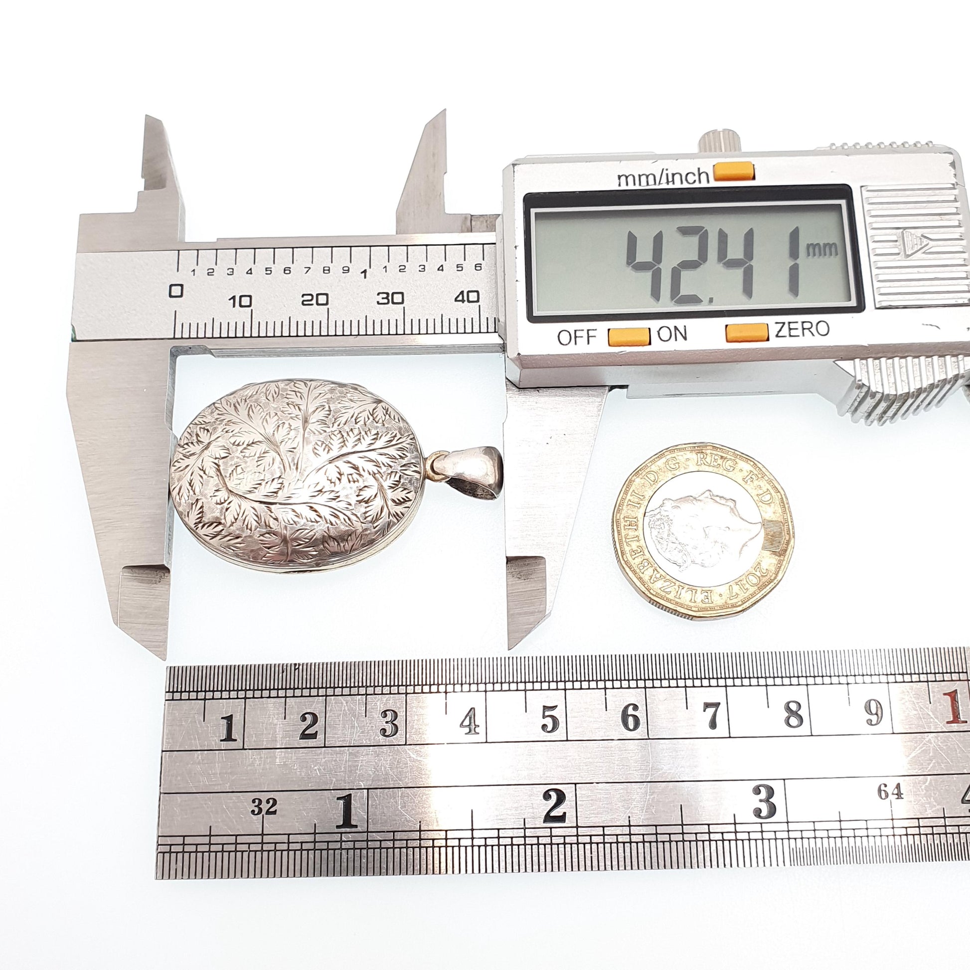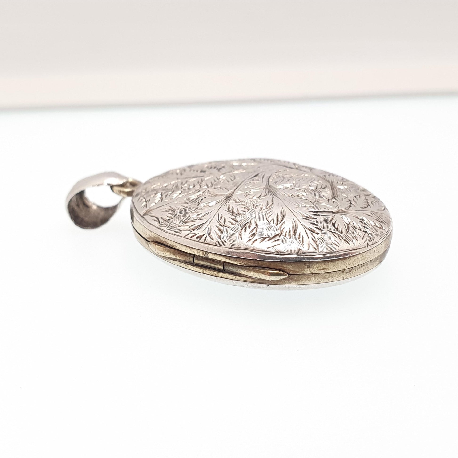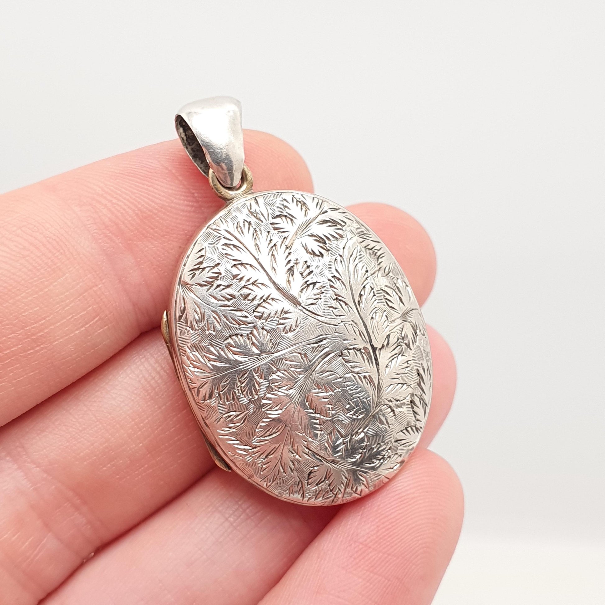 Antique Solid Silver Victorian Locket Oval Engraved Back and Front Necklace Vintage Pendant Womens Jewelry Jewellery