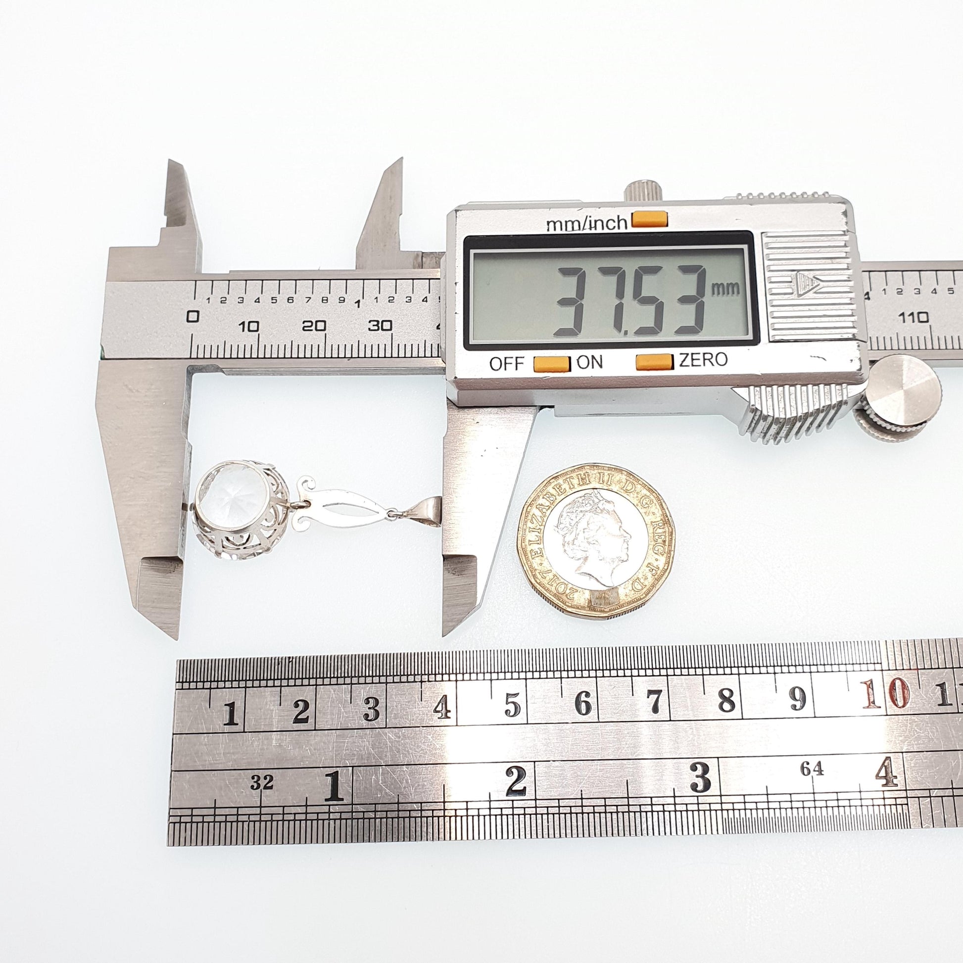 Antique Solid Silver White Sapphire Pendant Necklace White Gemstone Large Big Round Cut Drop Hanging Genuine Vintage