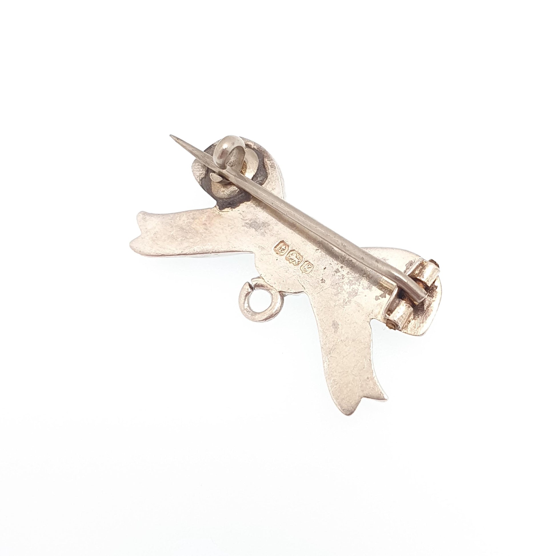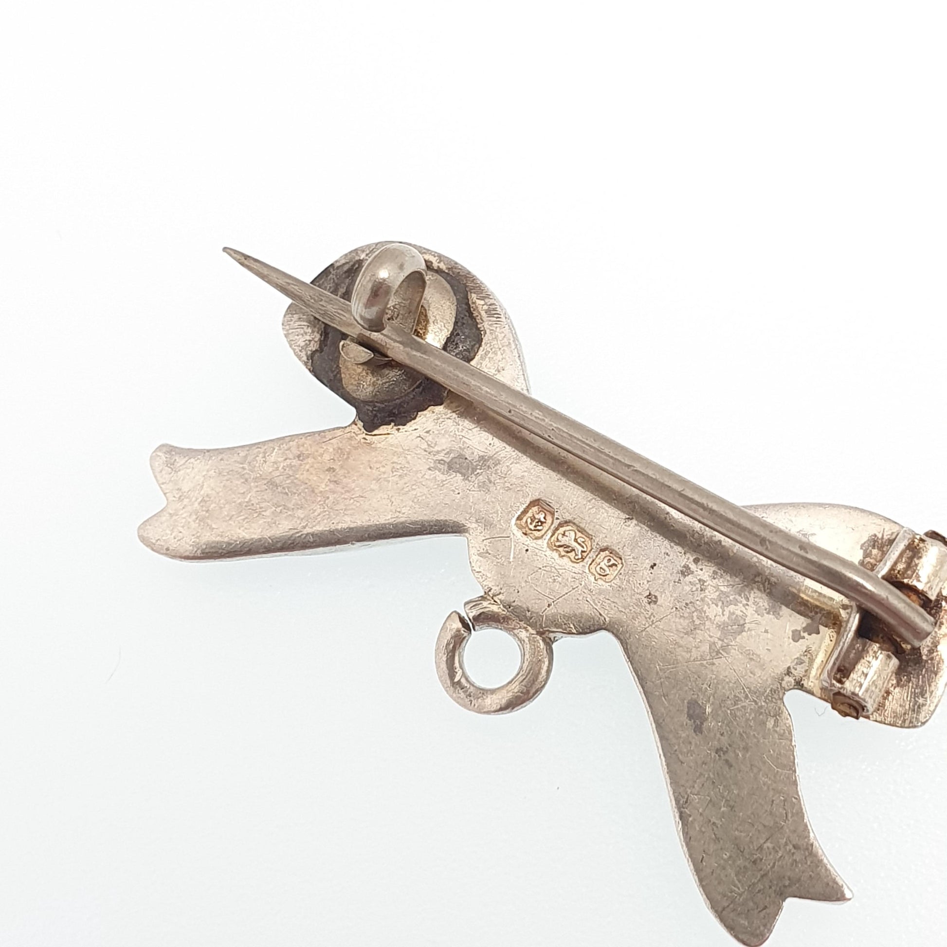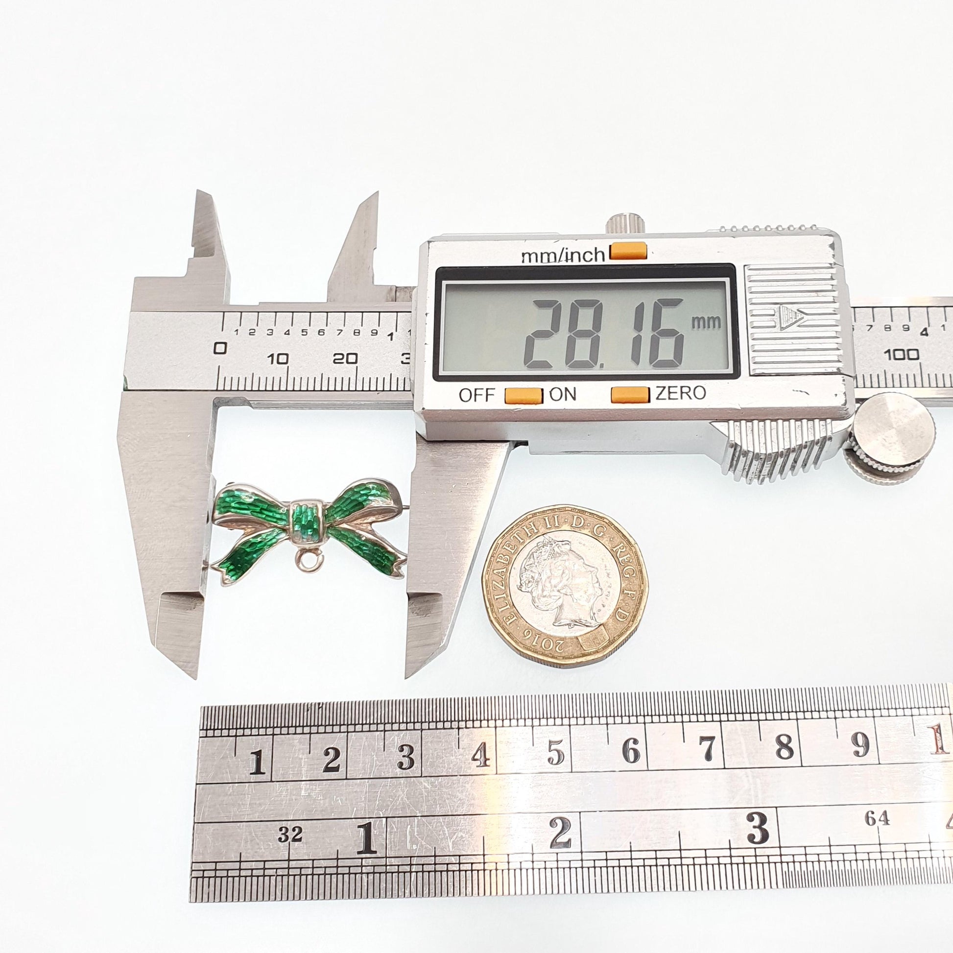 Antique Sterling Silver Enamel Bow Brooch Pin Green Champleve 1906 Hallmarked Nurse Fob Edwardian Vintage Womens Ladies Jewelry Jewellery
