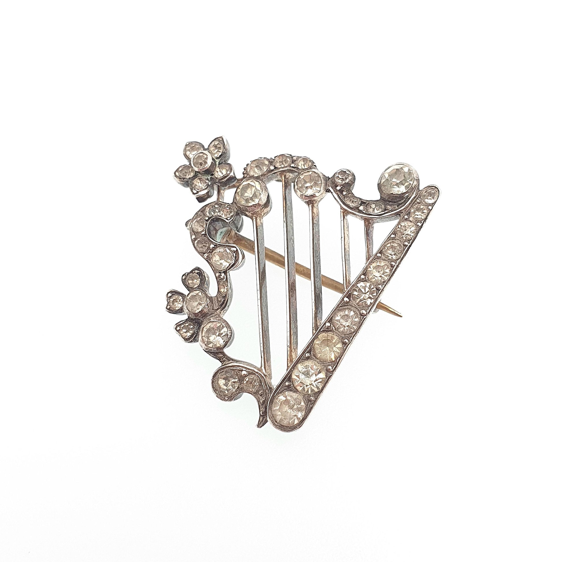 Antique Sterling Silver Harp Brooch Diamond Paste PARISIAN DIAMOND COMPANY Victorian Sweetheart Vintage Womens Jewelry Jewellery