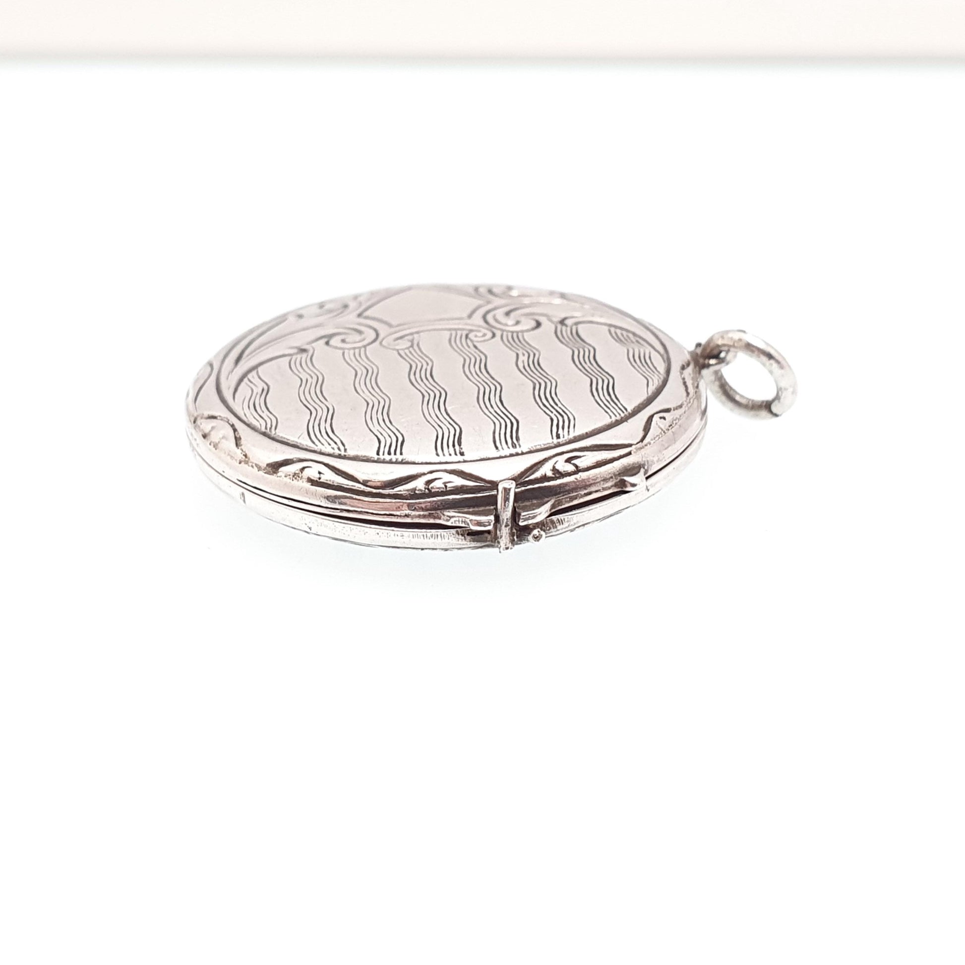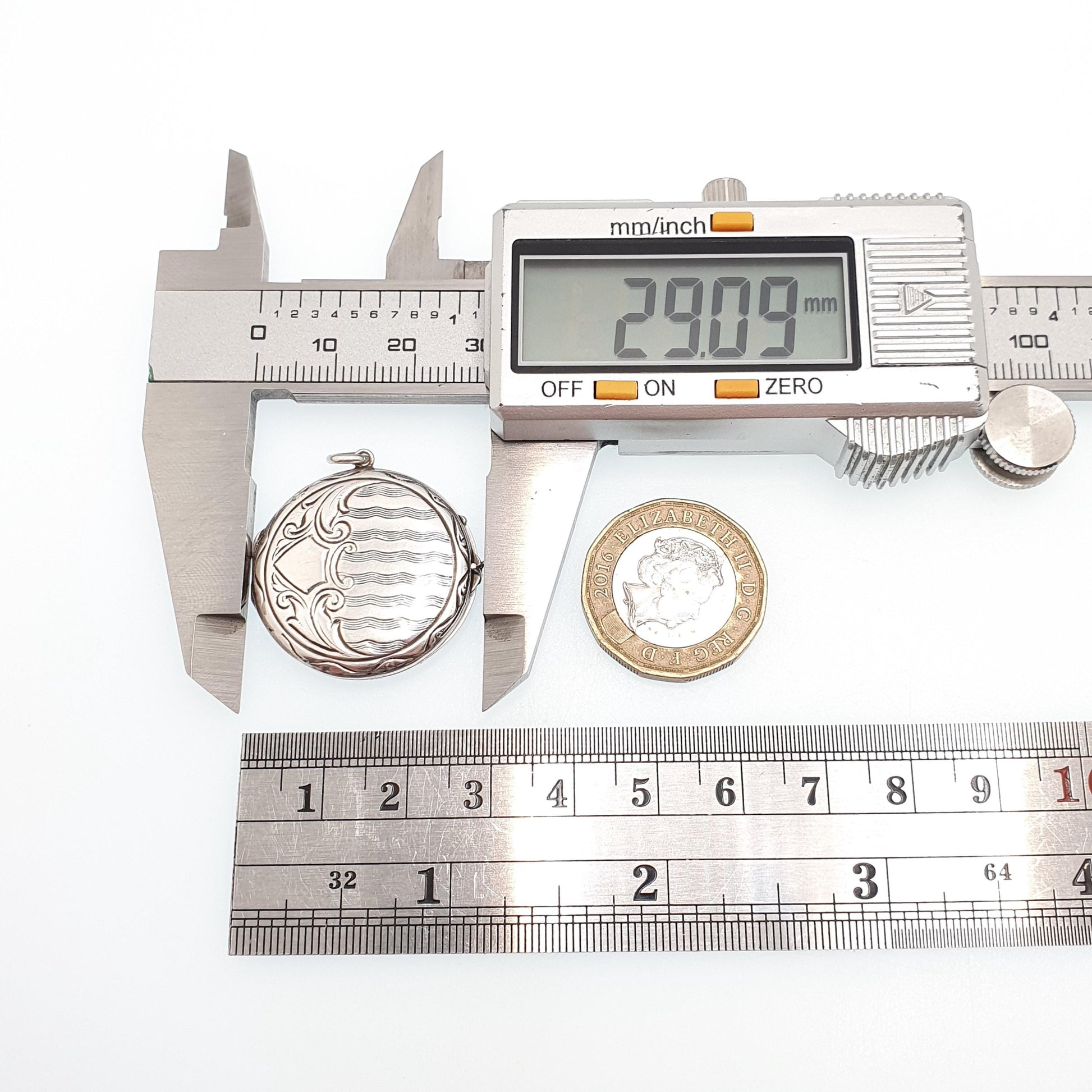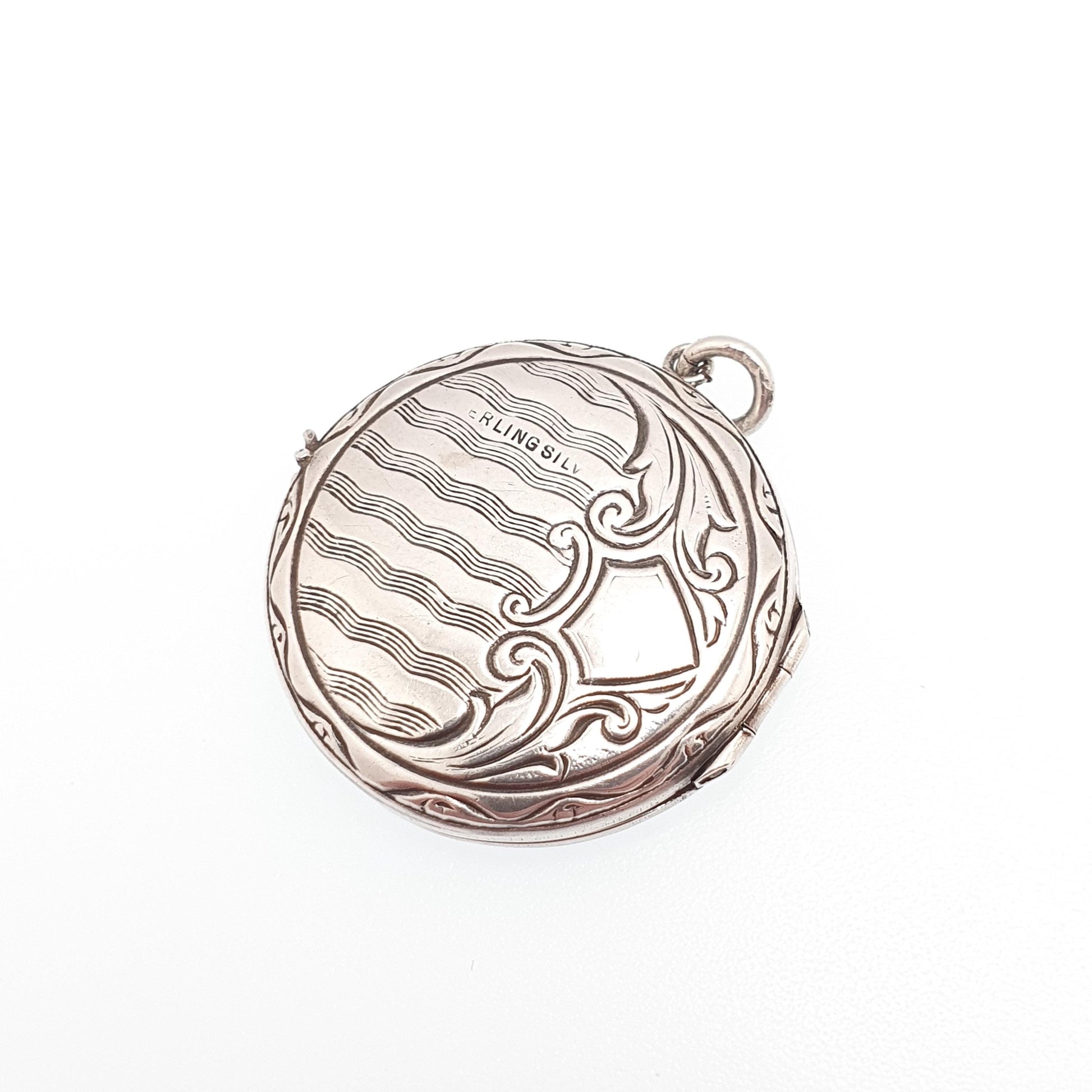 Antique Sterling Silver Round Locket Pendant Necklace 1910s Circle Engraved Solid 925 Vintage Picture Photo Womens Jewelry Jewellery