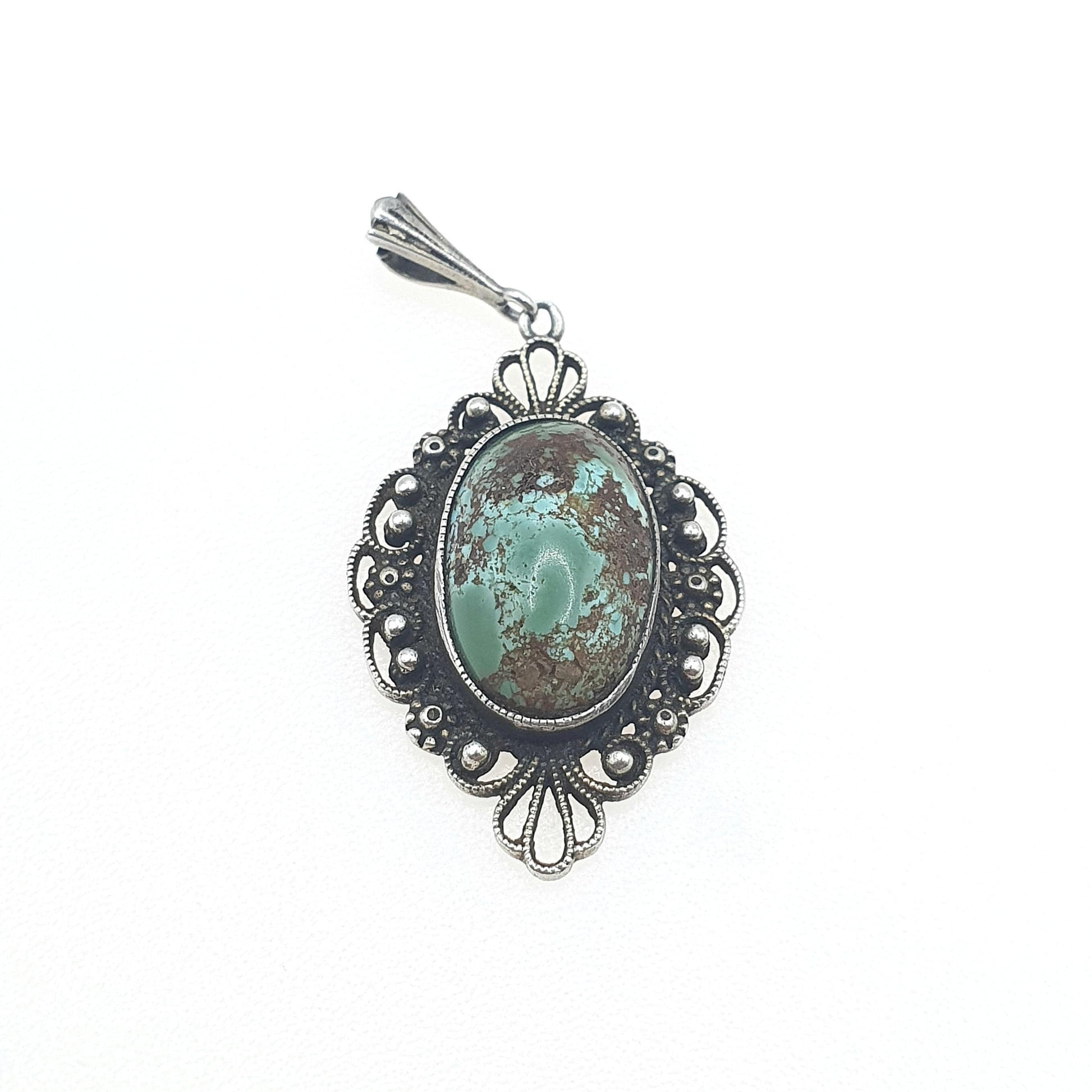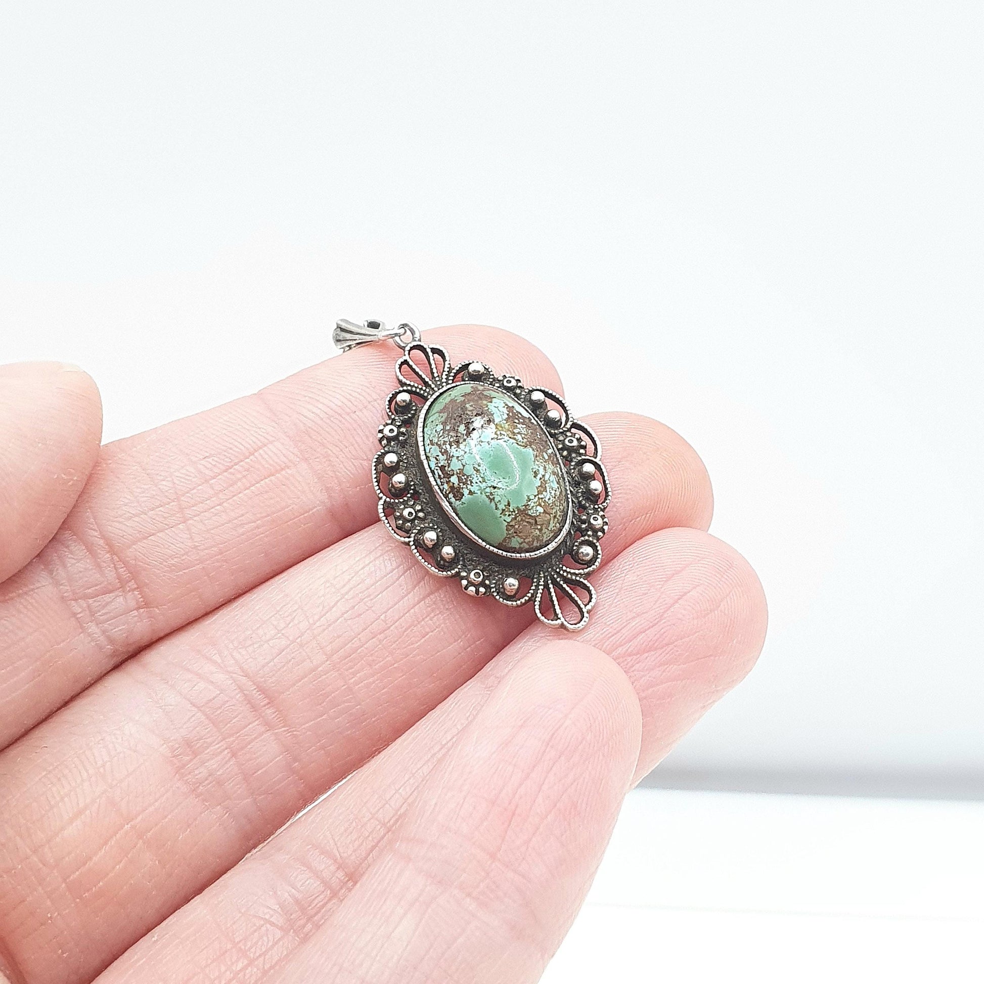 Antique Sterling Silver Turquoise Pendant Filigree Handmade Natural Gemstone Necklace Womens Jewelry Jewellery