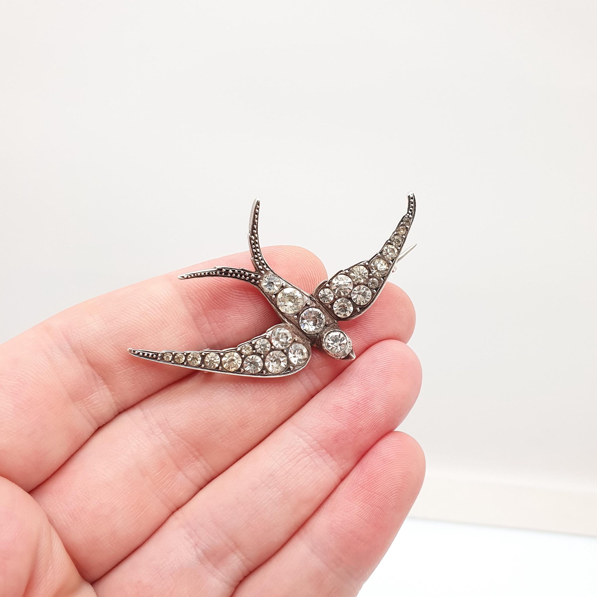 Antique Sterling Silver Victorian Paste Bird Brooch Diamond Foiled Pastes Swallow Large Big Birds Vintage 1800s Parisian Diamond Company