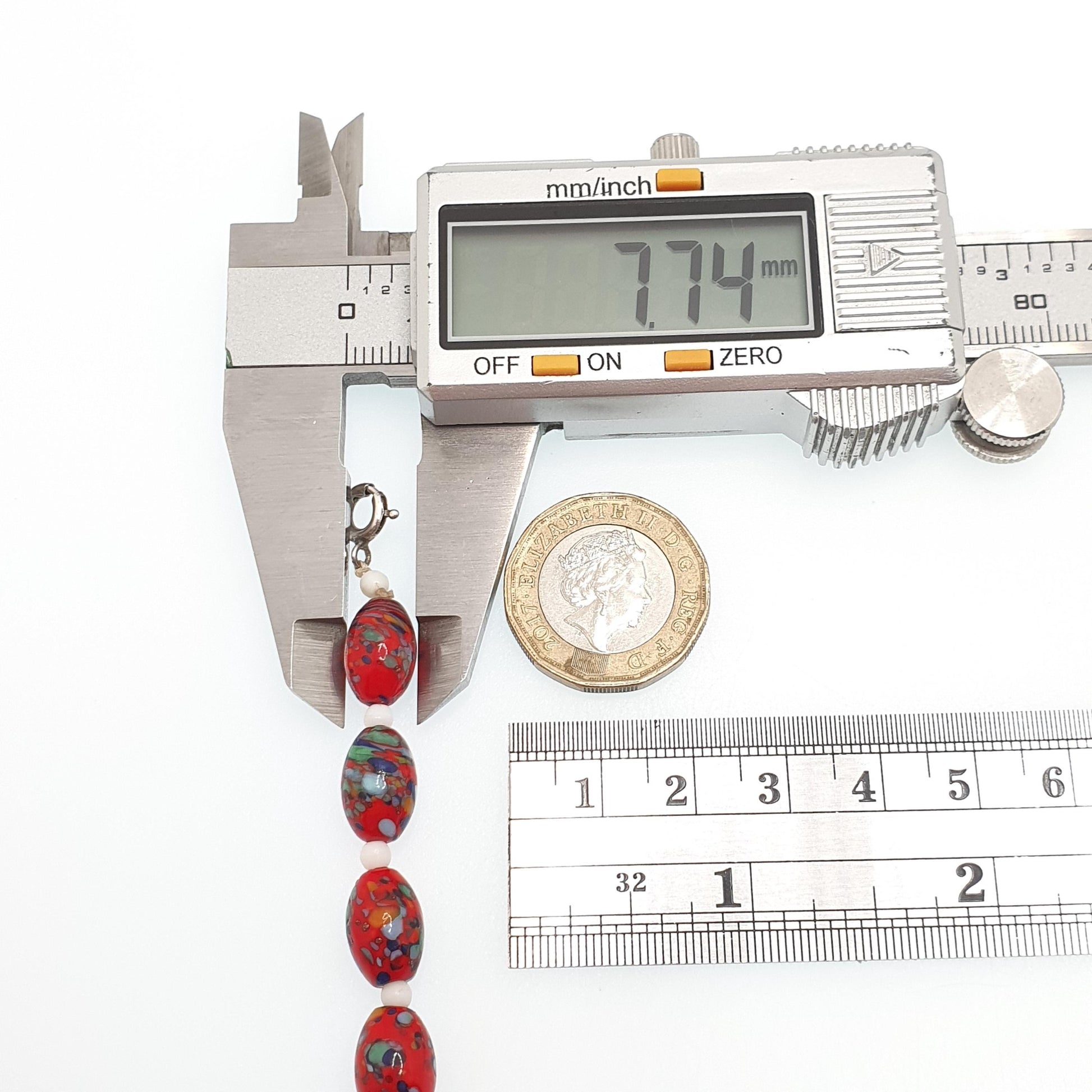 DESCRIPTION: A beautifully crafted genuine antique hand blown Murano glass necklace. The necklace is genuine Murano Venetian glass, boasting stunning colourful tones and has been hand made. I love the way it's mainly red, as most of theses types of necklace are blue. It measures approx. 42cm or 16.5" in unfastened length and weighs approx. 48.49g. The largest bead measures 15.6mm in diameter and the smallest beads 7.7mm.